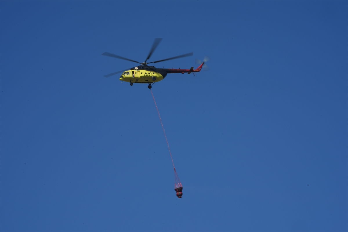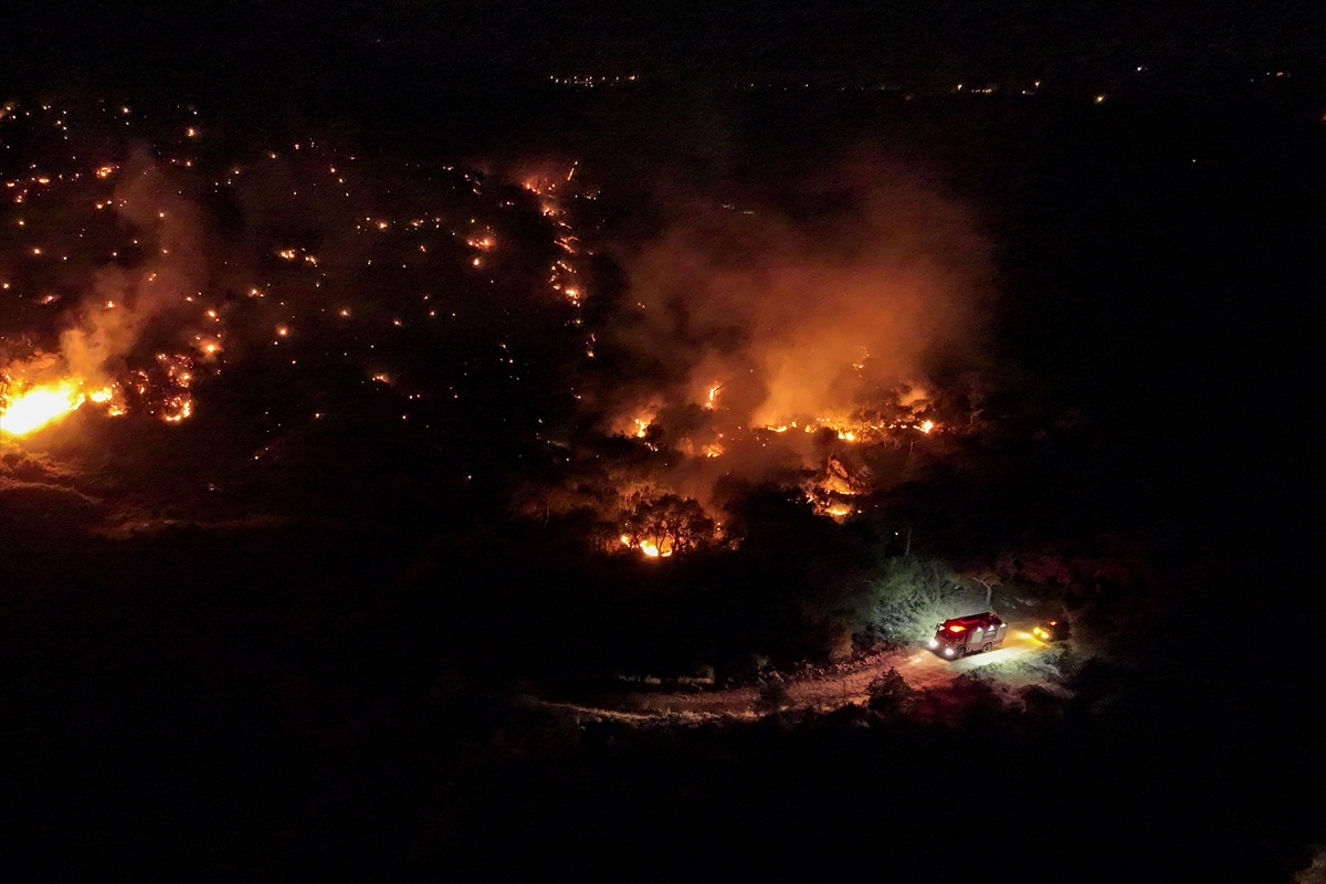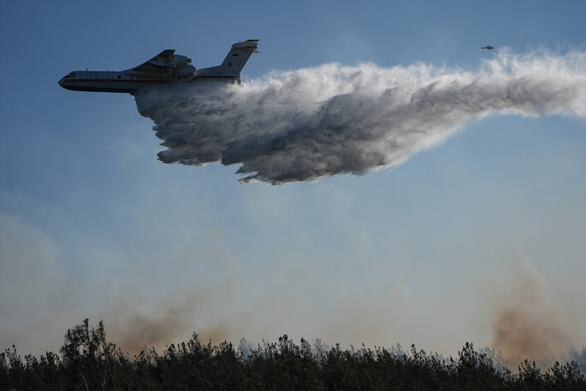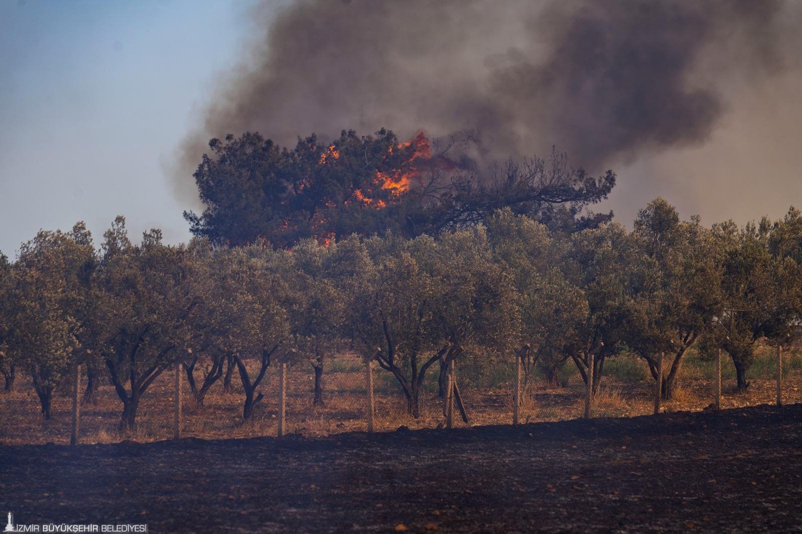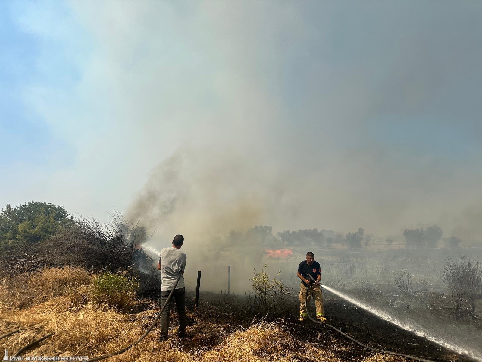 İzmir'in Aliağa ilçesinde ormanlık alanda başlayan yangına, orman bölge müdürlüğü ve itfaiye ekiplerinin havadan ve karadan müdahalesi devam ediyor.