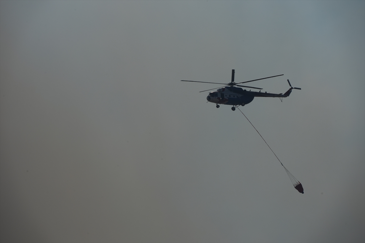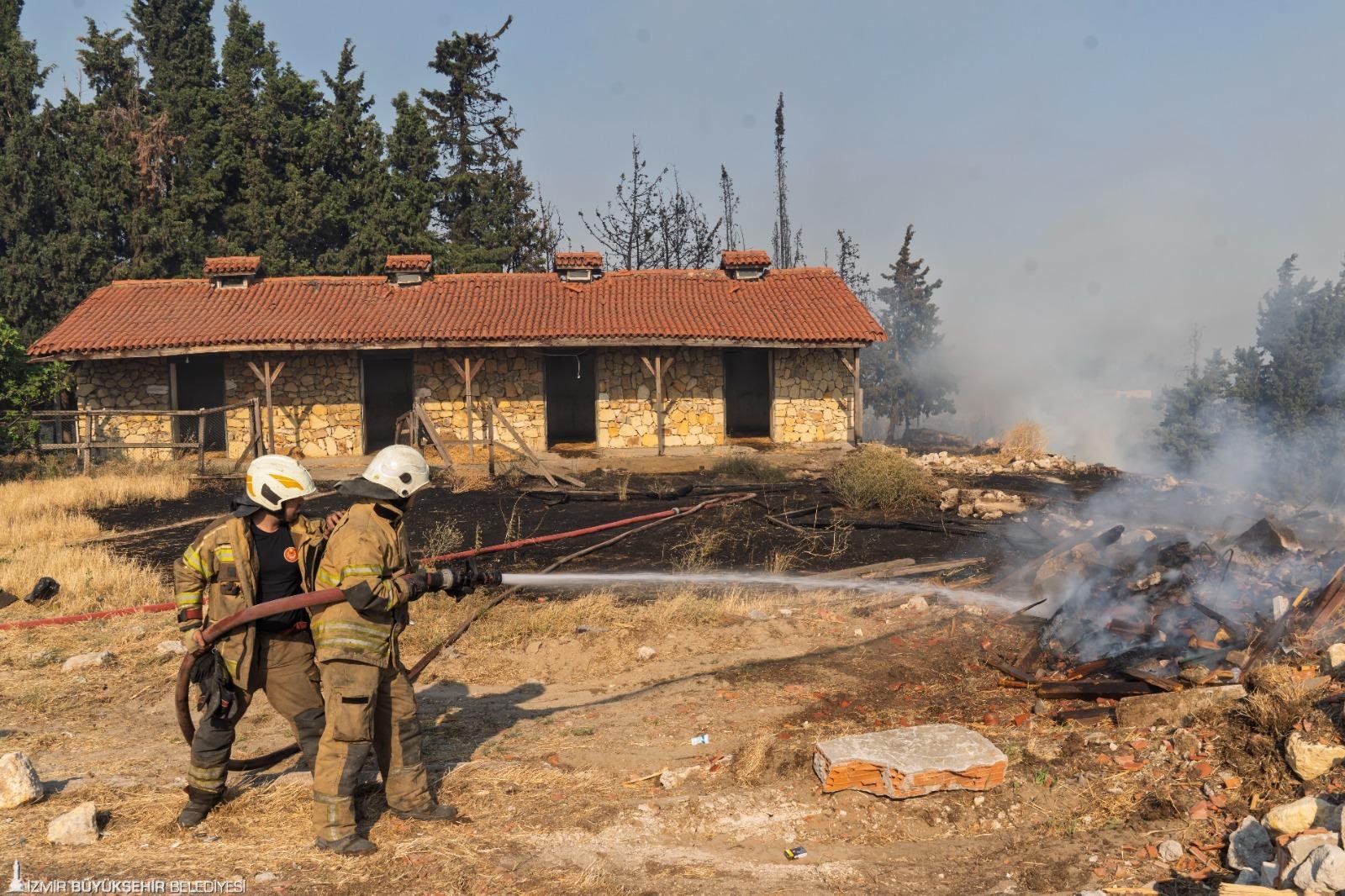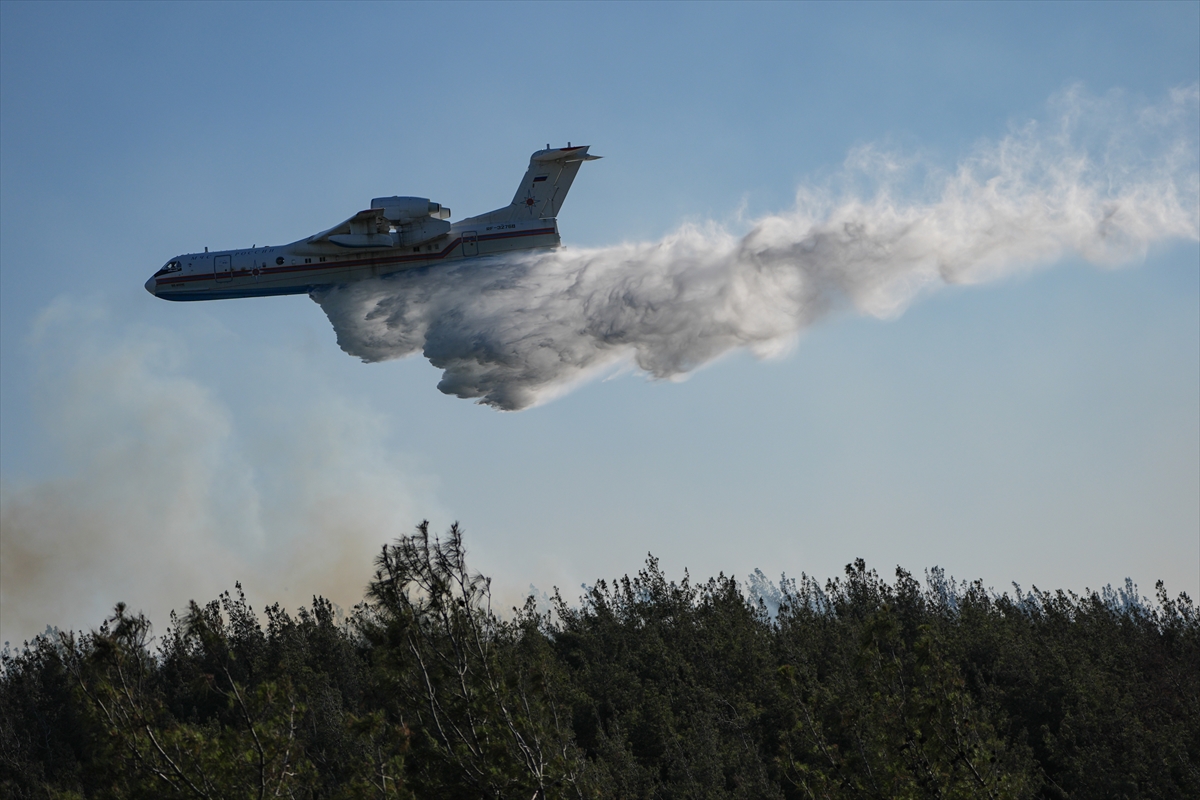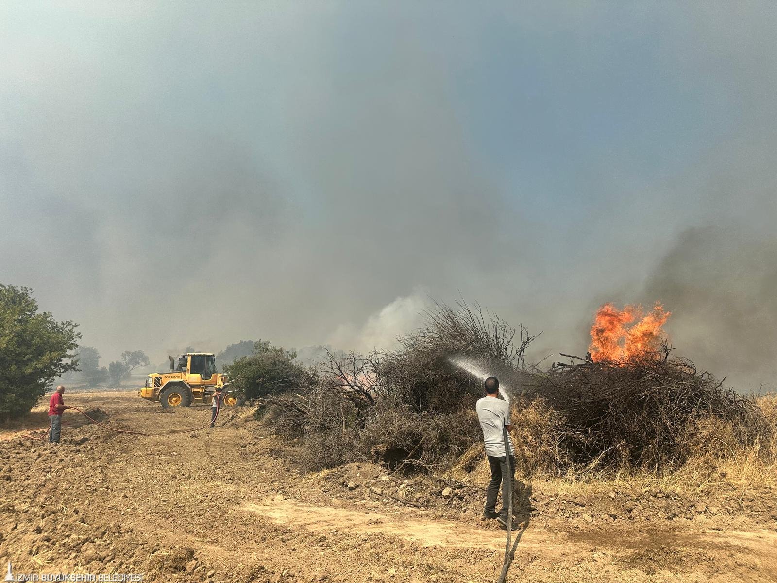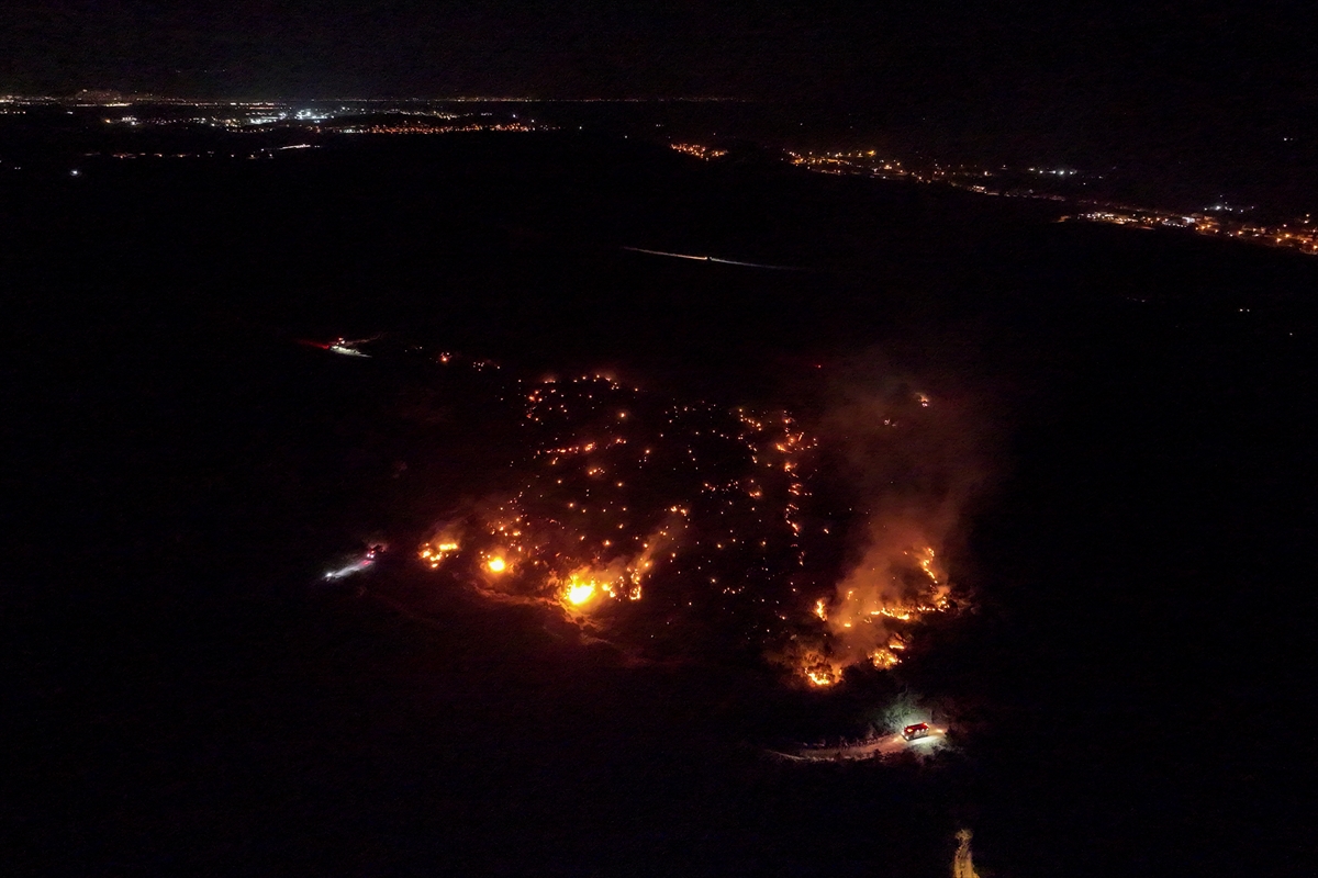 İzmir'in Aliağa ilçesinde ormanlık alanda başlayan yangına, orman bölge müdürlüğü ve itfaiye ekiplerinin havadan ve karadan müdahalesi devam ediyor.