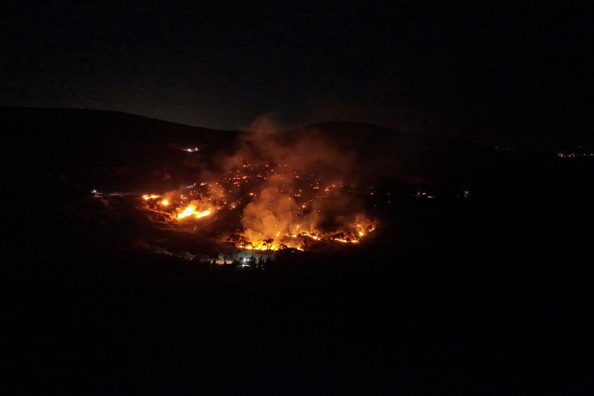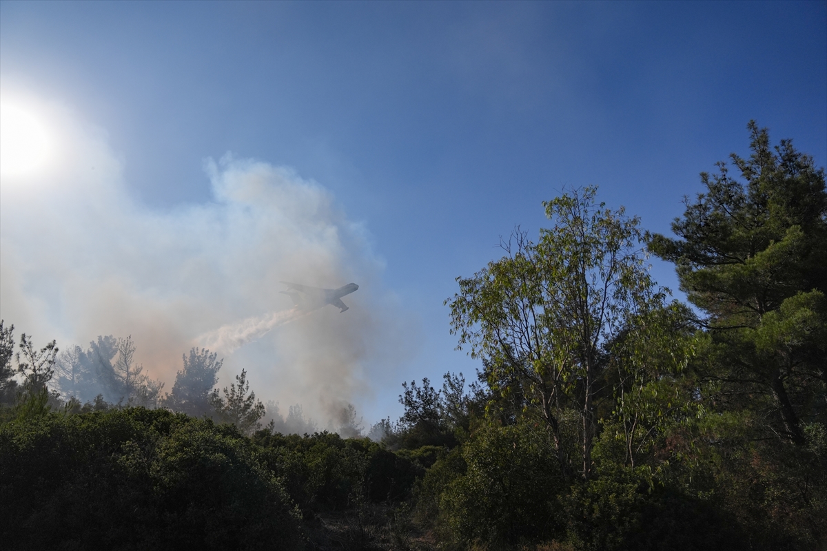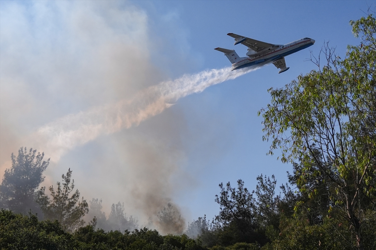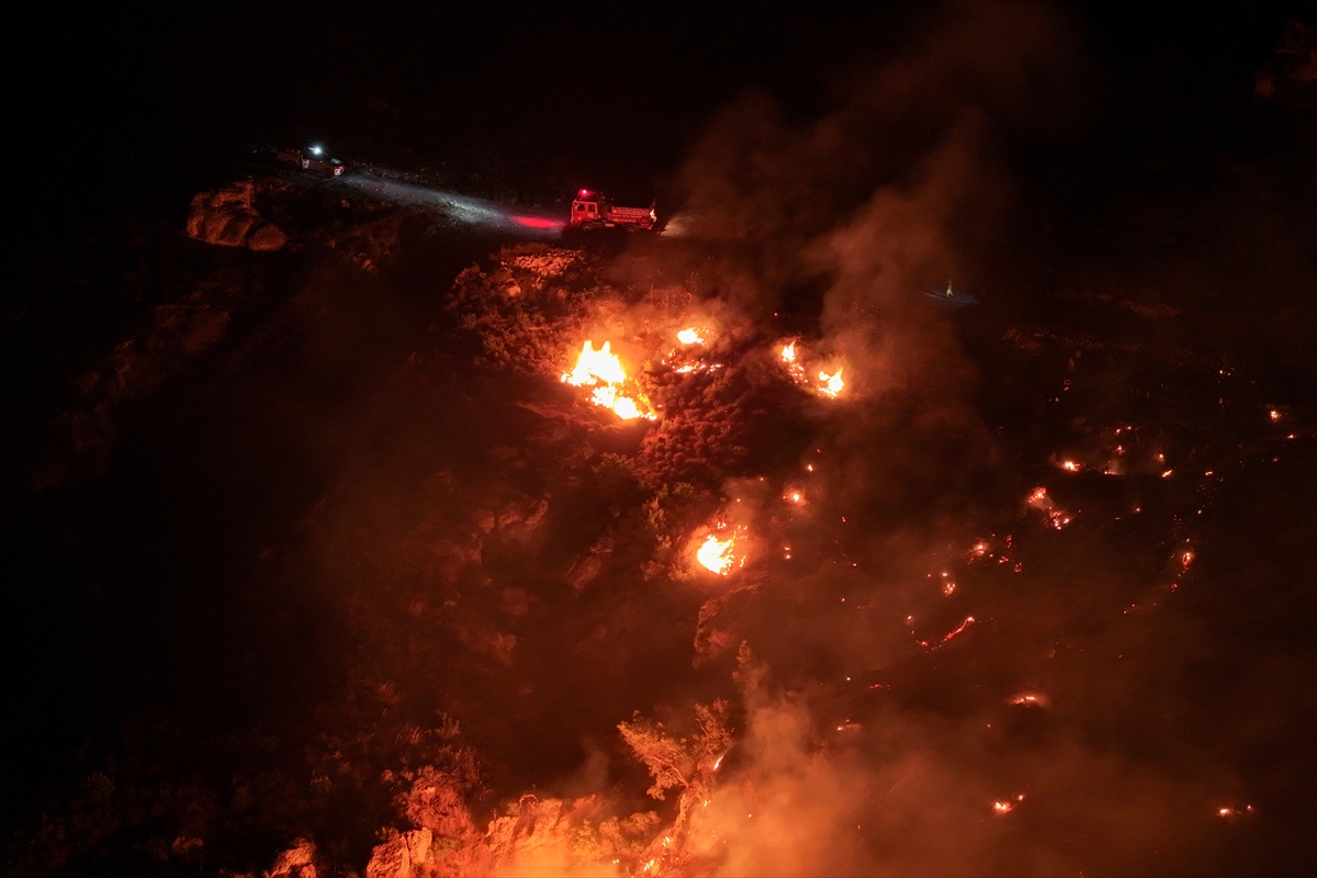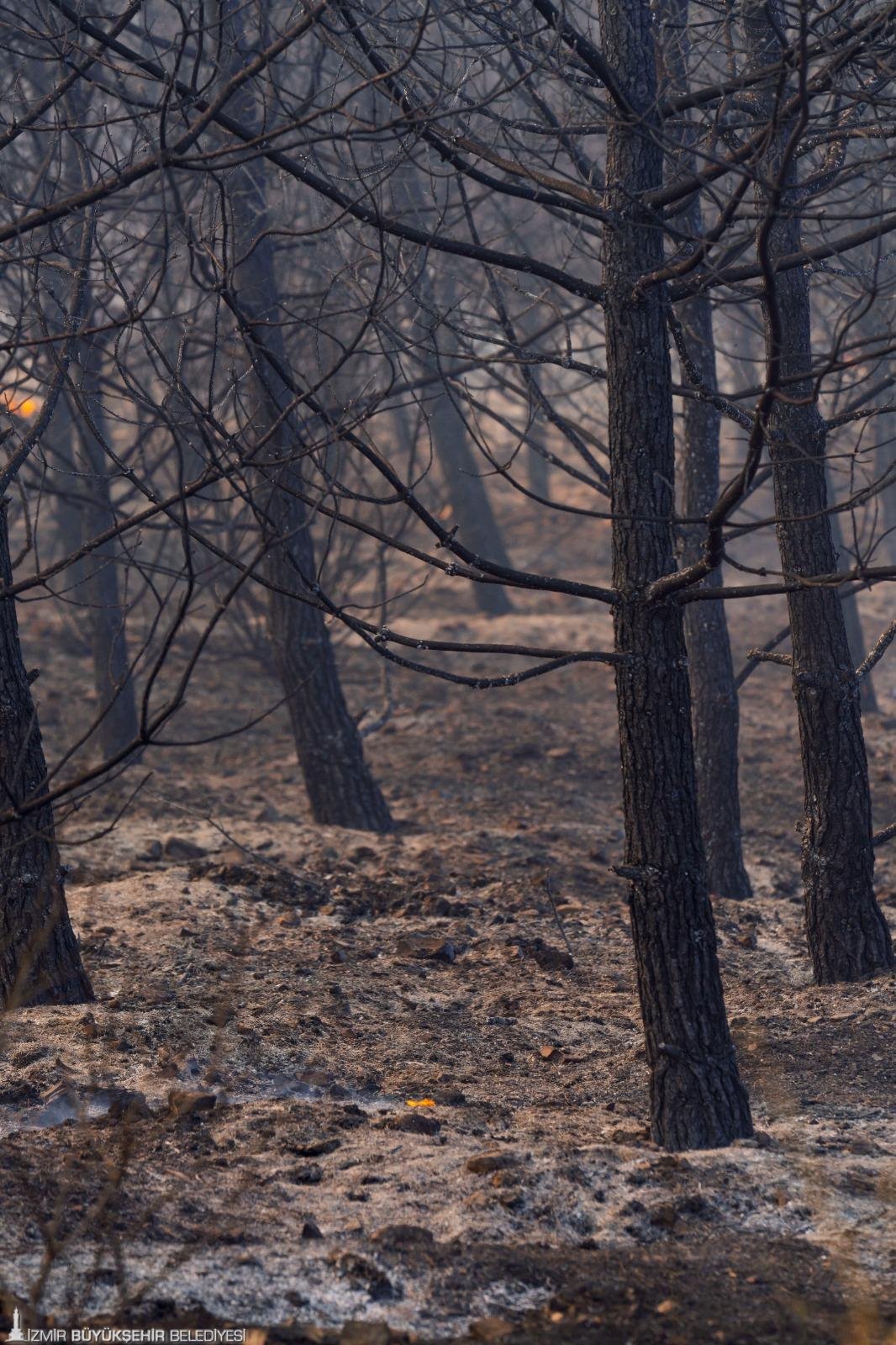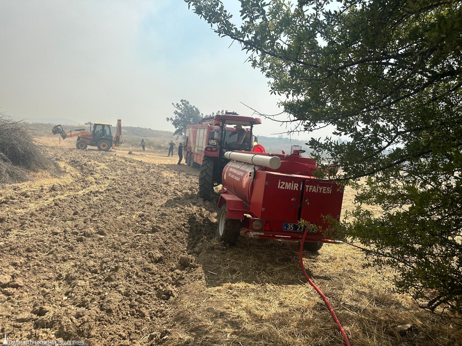 İzmir'in Aliağa ilçesinde ormanlık alanda başlayan yangına, orman bölge müdürlüğü ve itfaiye ekiplerinin havadan ve karadan müdahalesi devam ediyor.