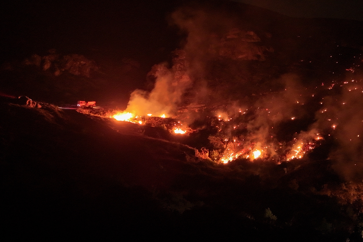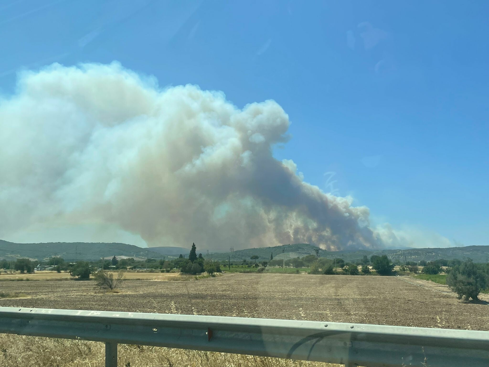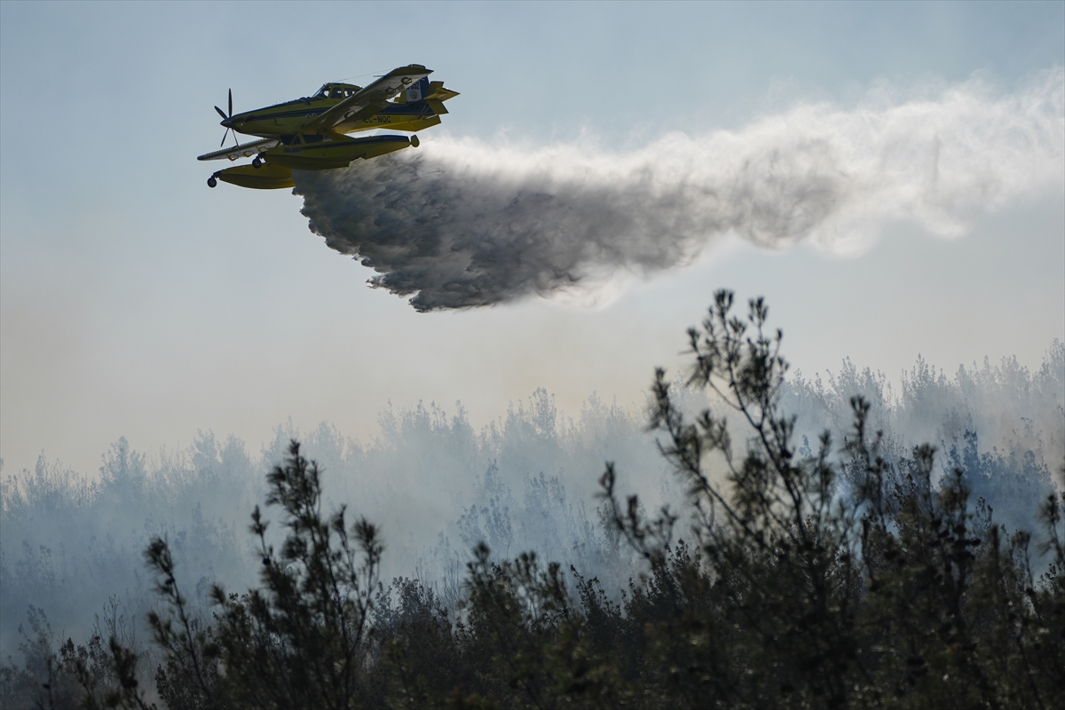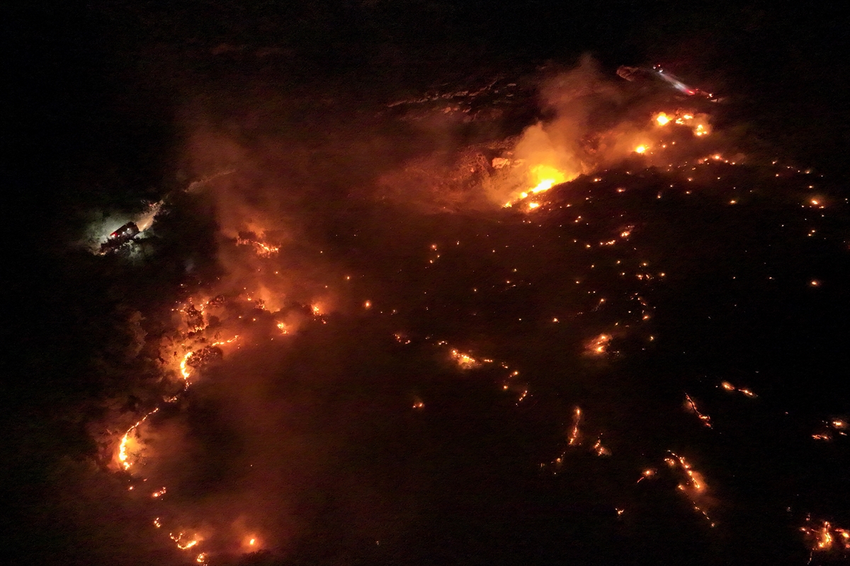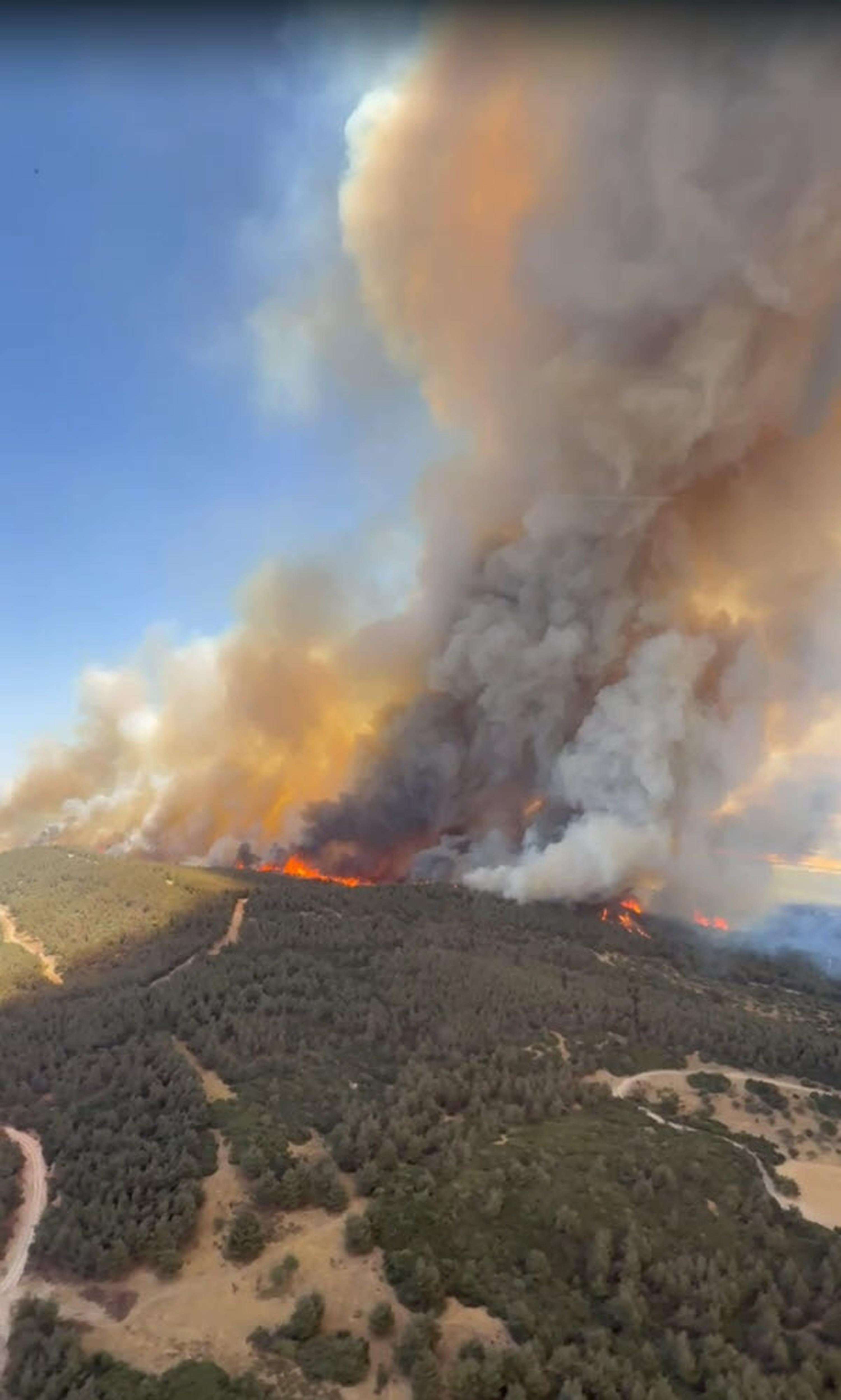 İzmir'in Aliağa ilçesinde ormanlık alanda başlayan yangına, orman bölge müdürlüğü ve itfaiye ekiplerinin havadan ve karadan müdahalesi devam ediyor.