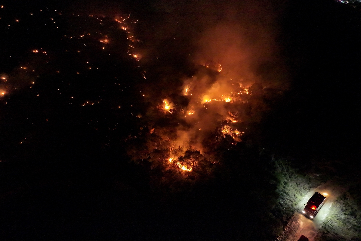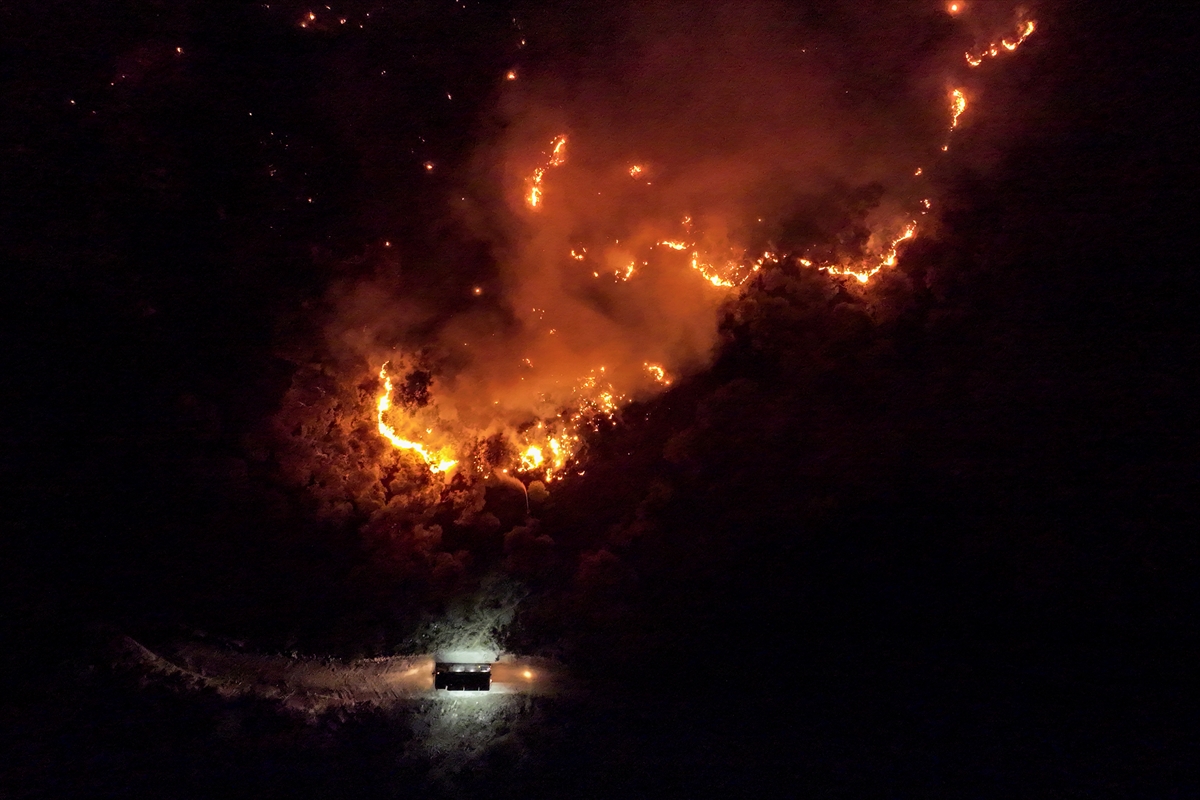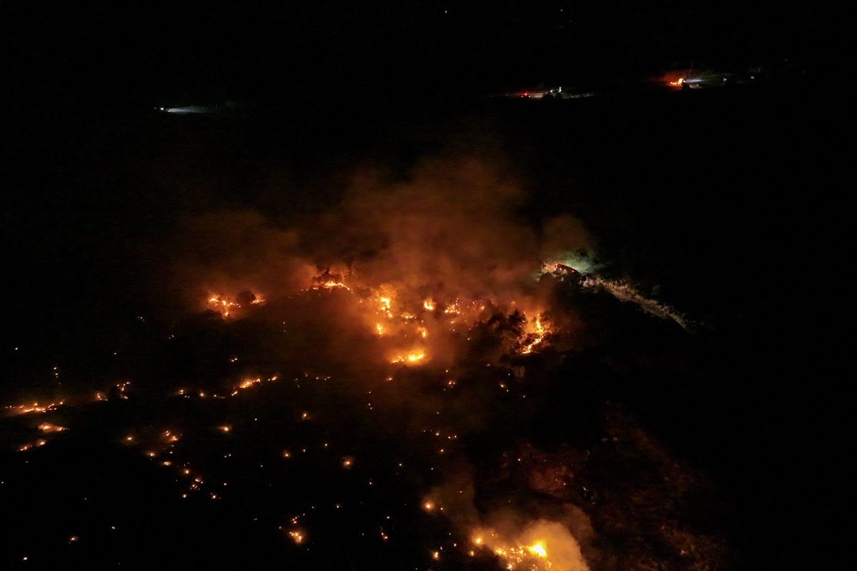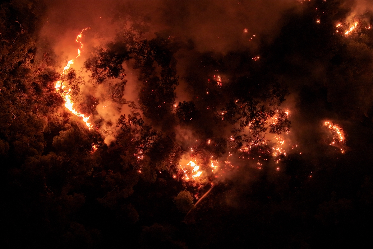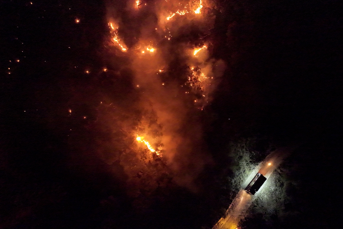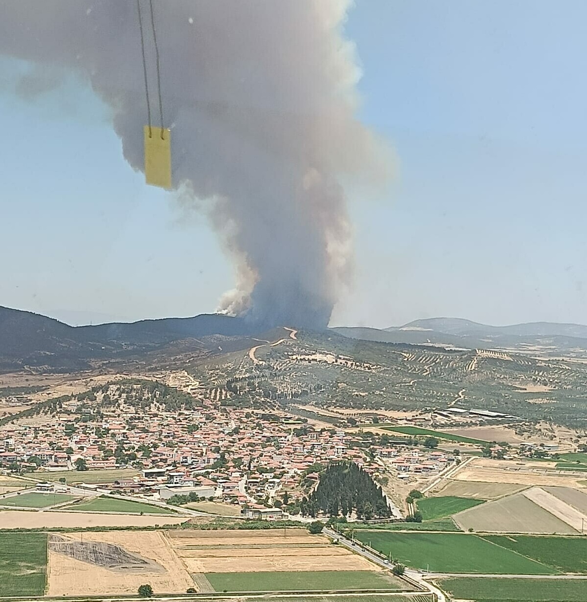 İzmir'in Aliağa ilçesinde ormanlık alanda başlayan yangına, orman bölge müdürlüğü ve itfaiye ekiplerinin havadan ve karadan müdahalesi devam ediyor.
