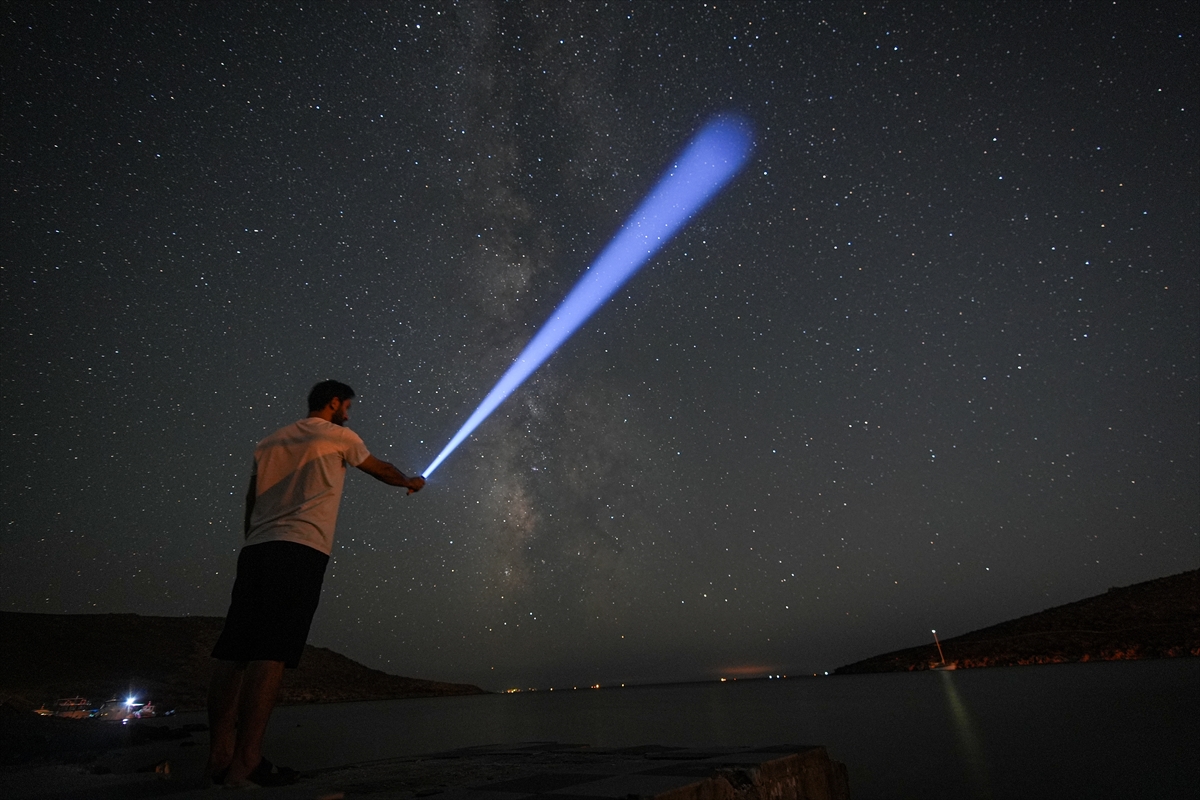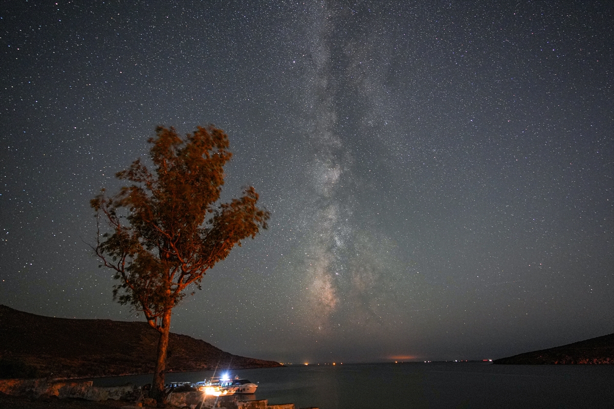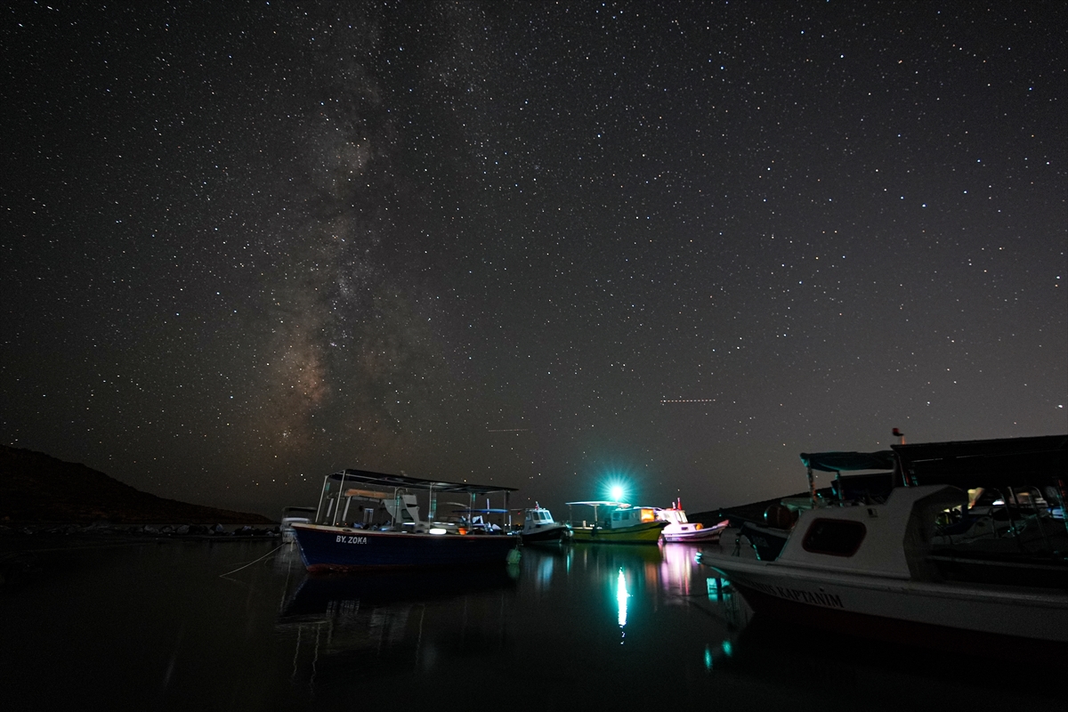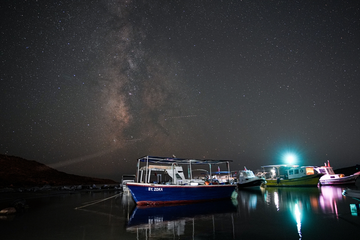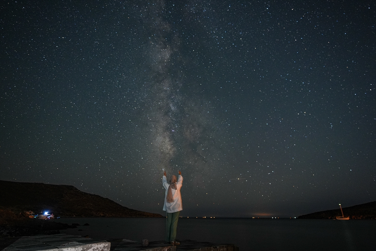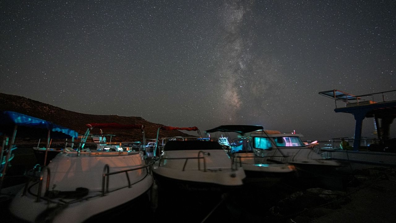 İzmir'in Urla ilçesindeki Zeytineli Plajı'nda gece saatlerinde gökyüzünde beliren yıldızlar uzun pozlama tekniğiyle fotoğraflandı. Gökyüzünde Samanyolu Galaksisi de görüldü.