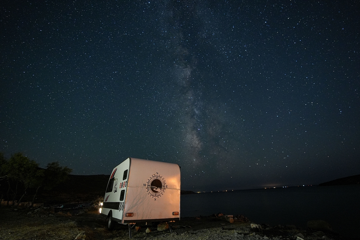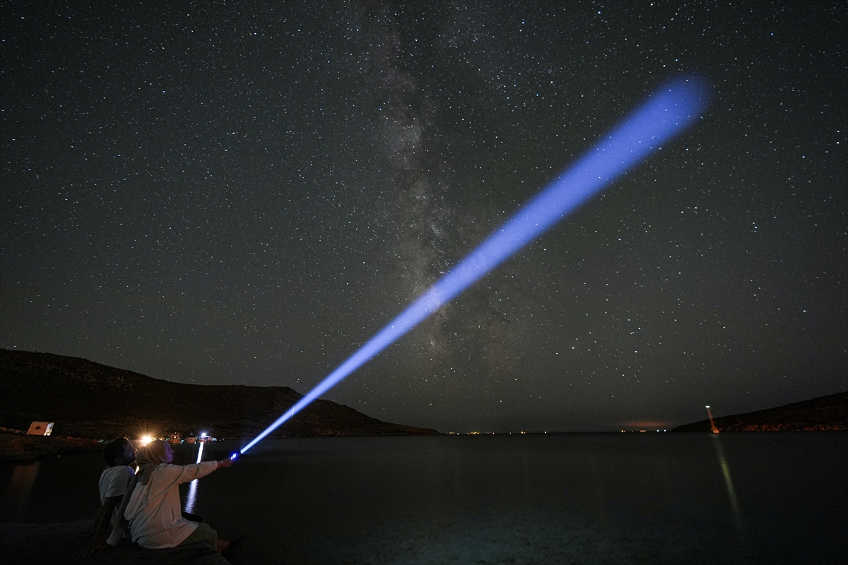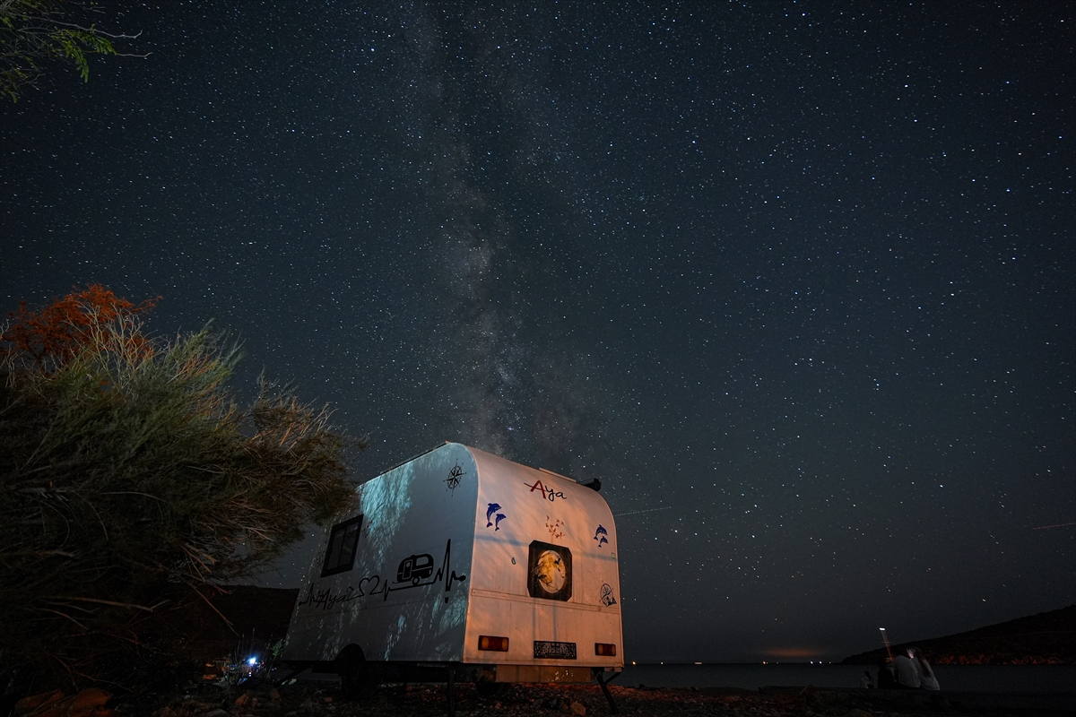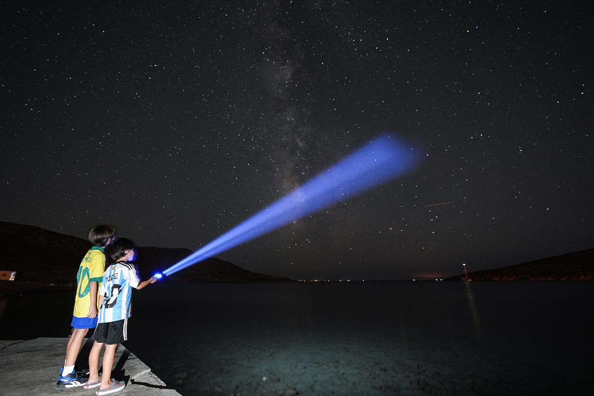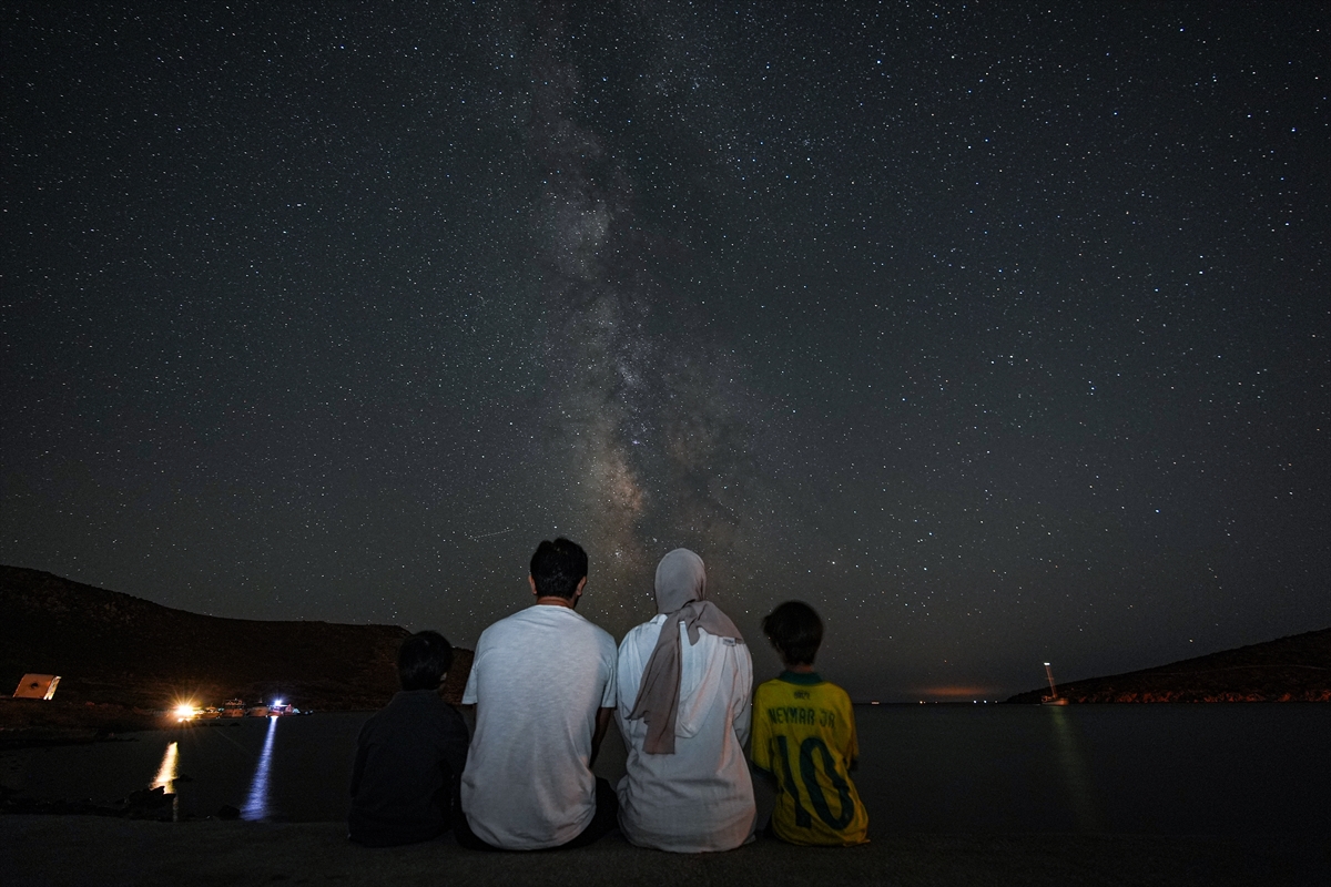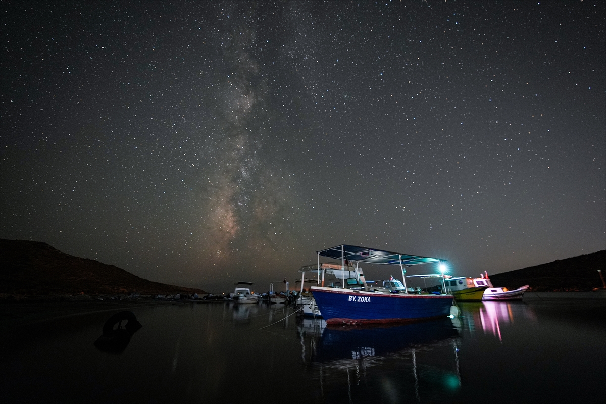 İzmir'in Urla ilçesindeki Zeytineli Plajı'nda gece saatlerinde gökyüzünde beliren yıldızlar uzun pozlama tekniğiyle fotoğraflandı. Gökyüzünde Samanyolu Galaksisi de görüldü.