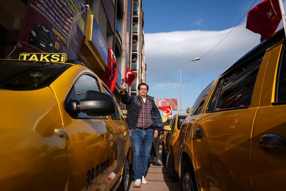 Açıklamaların ardından konvoy oluşturan taksiciler korna çalıp ellerindeki Türk bayraklarını salladı.