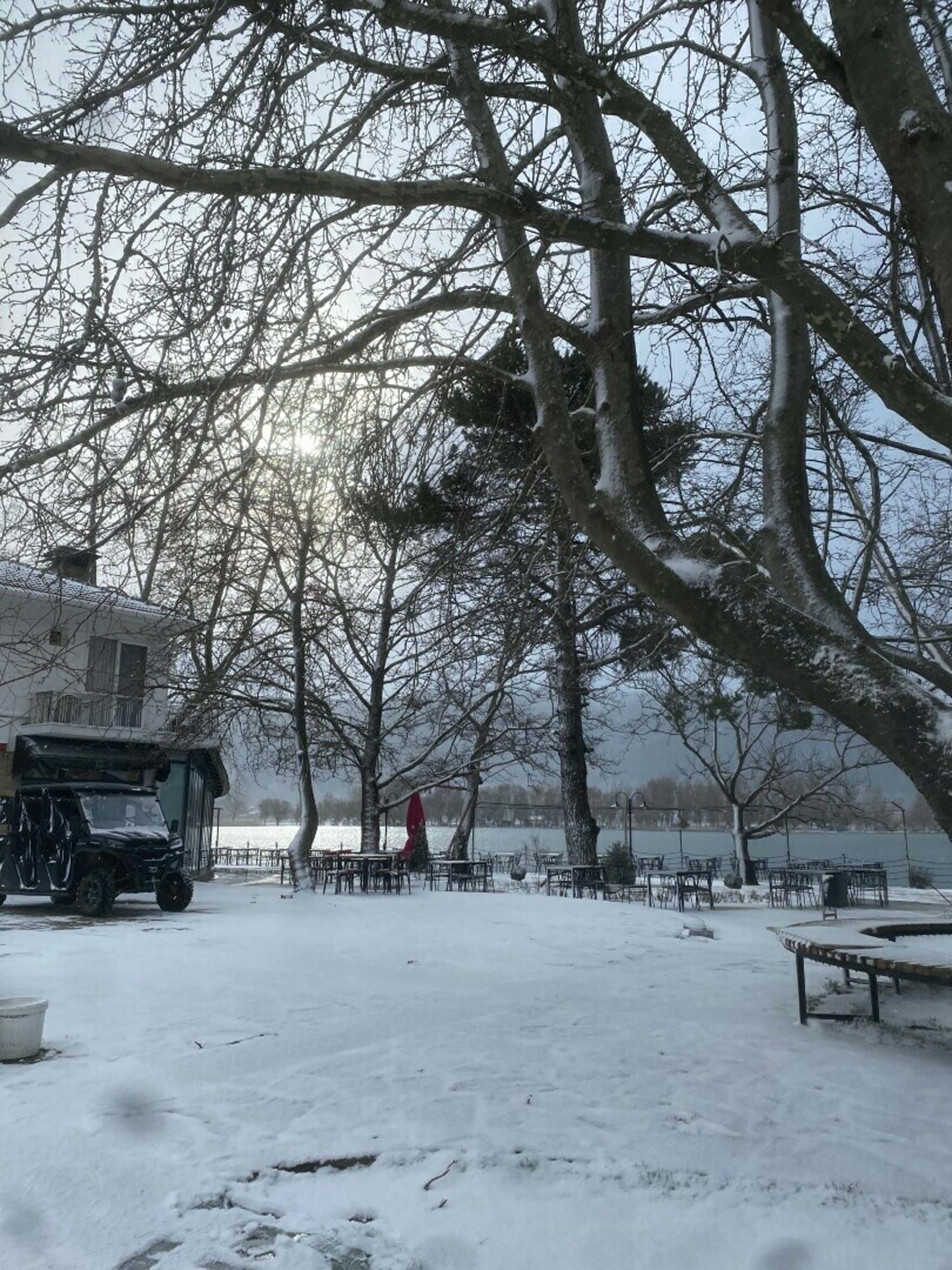 Beyaz örtüyle kaplanan bölgeler güzel manzaralar oluştururken, vatandaşlar kar yağışını cep telefonları ile kaydetti. (DHA)