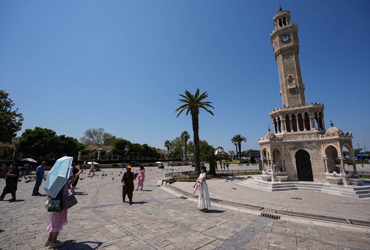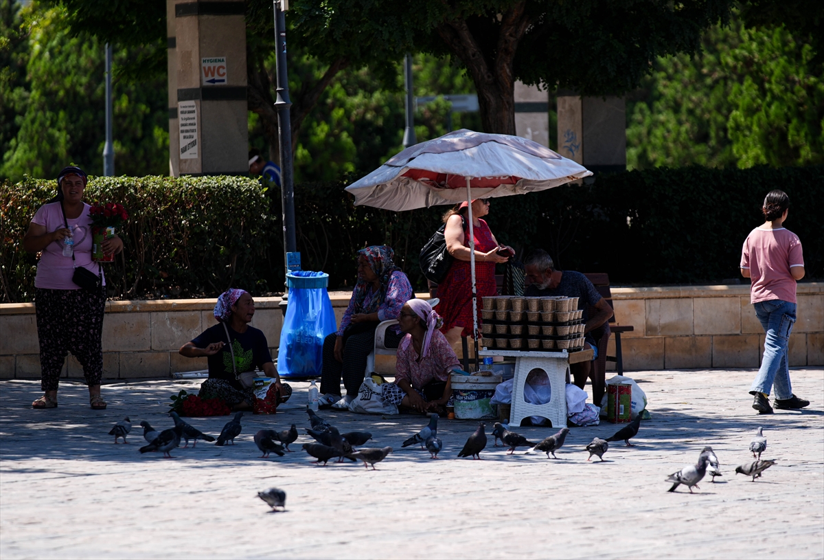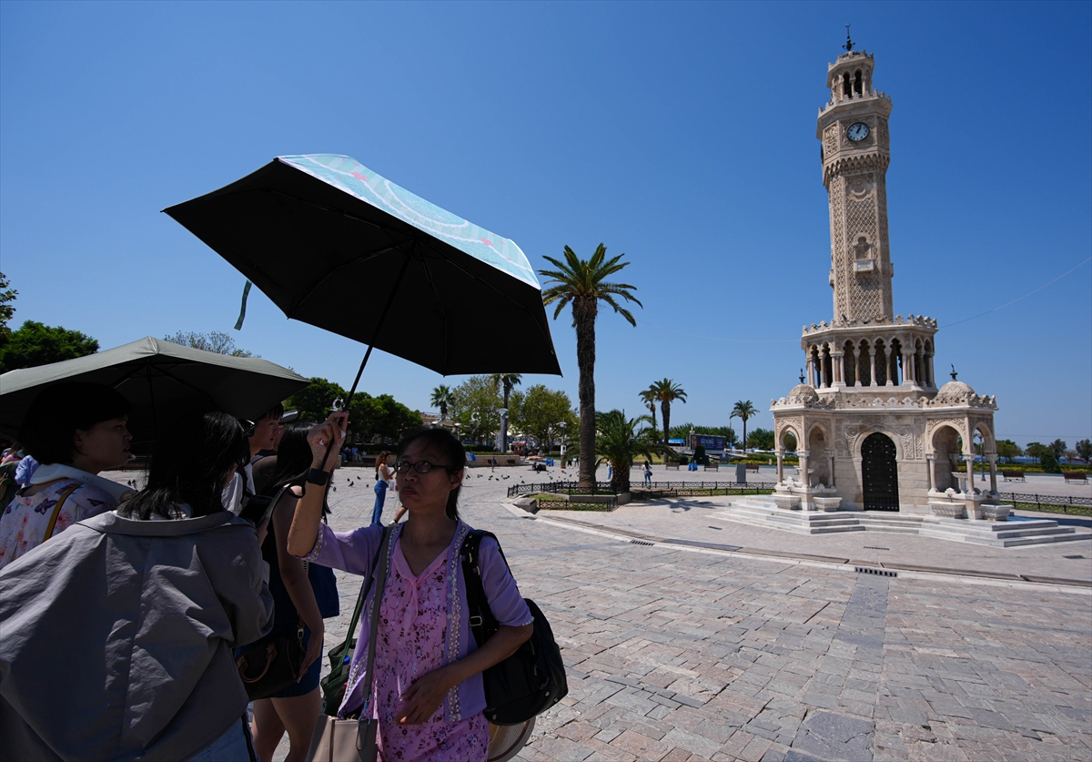 Konak'ta güneşten korunmak isteyenler, şemsiye, yelpaze ve el vantilatörü kullanarak serinlemeye çalıştı. Dışarı çıkanlar, bunaltıcı sıcaktan dolayı parklardaki gölgelik alanlarda vakit geçirmeyi tercih etti.