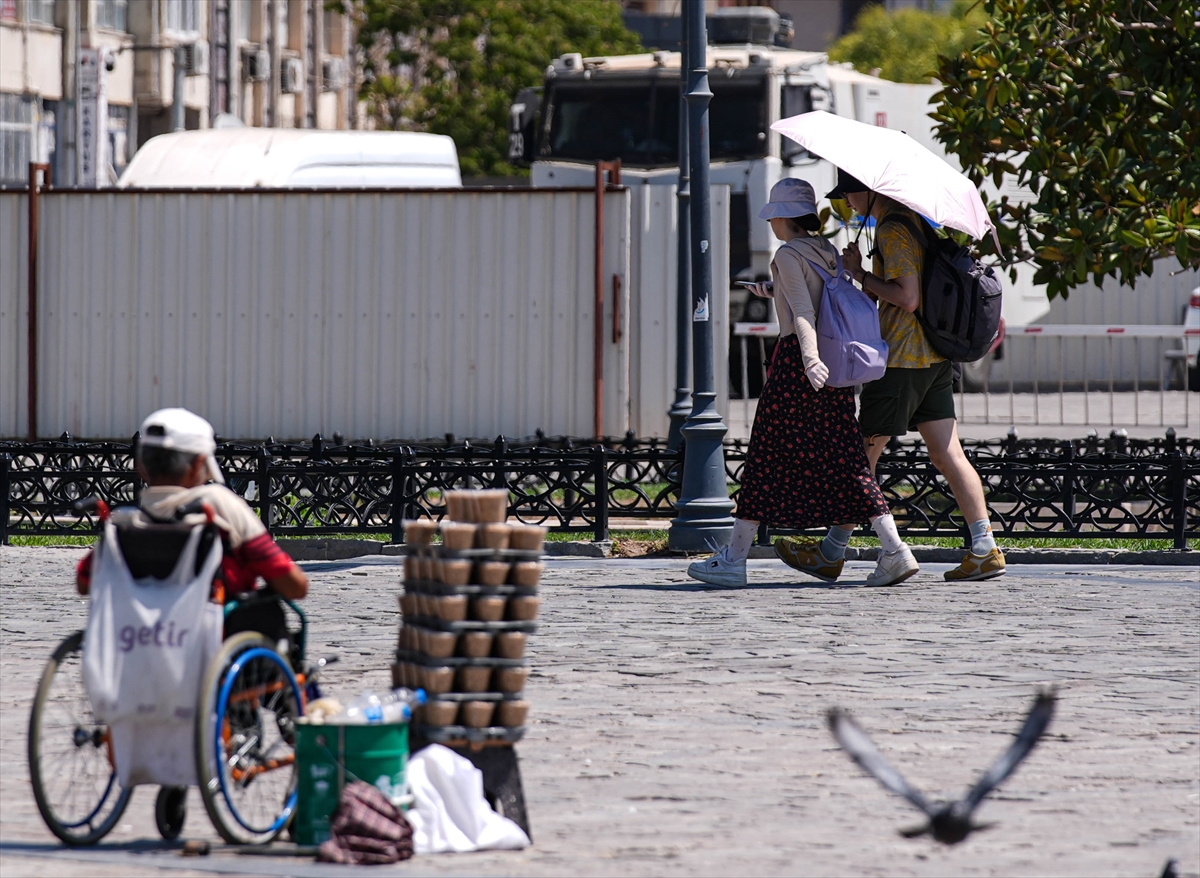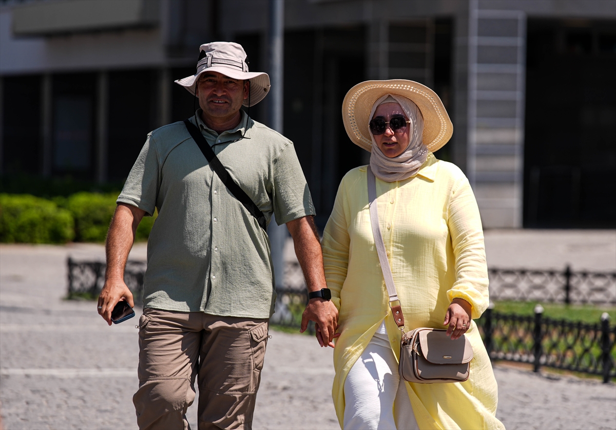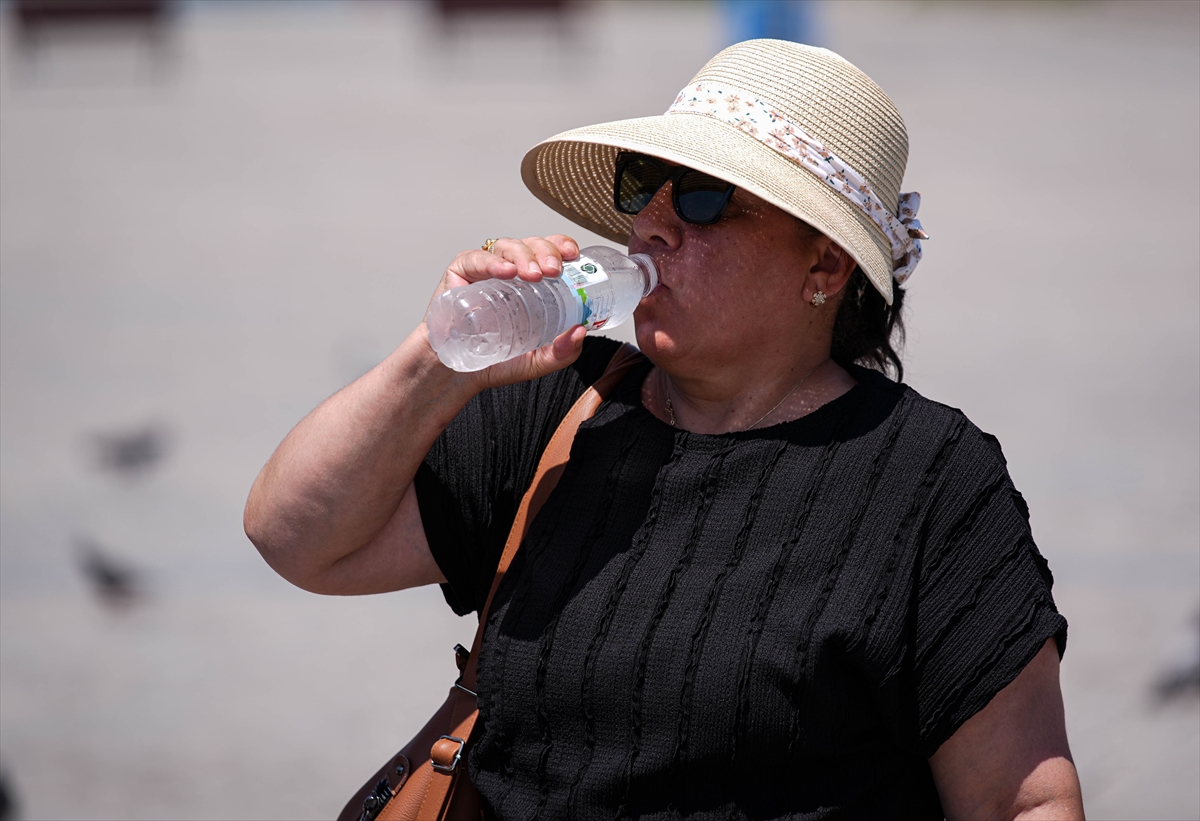 Yelpaze ile serinlemeye çalışan Mehtap Doğan ise bol bol su içtiğini, krem sürdüğünü, gözlük ve şapka takarak önlem aldığını söyledi.