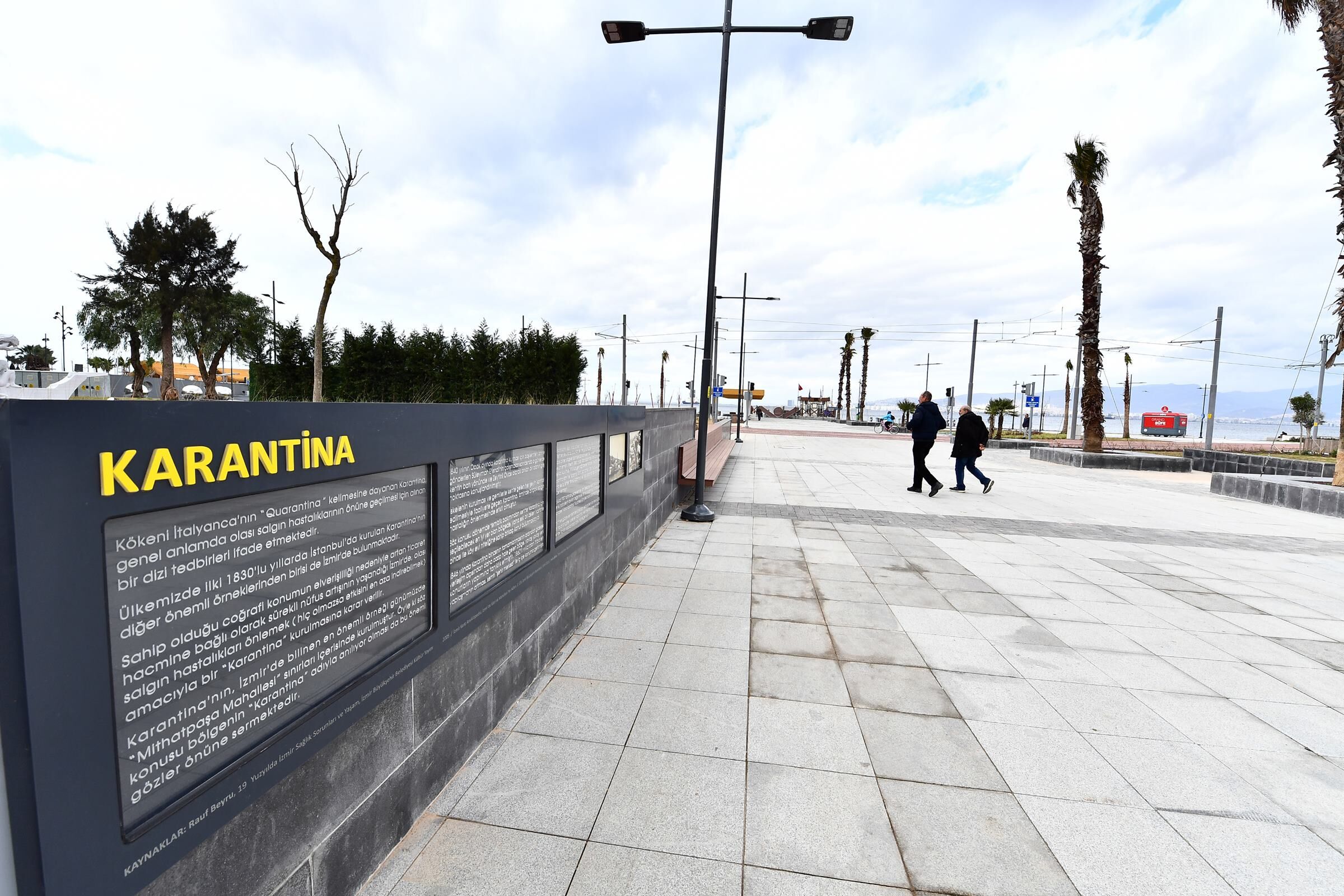 Mithatpaşa Parkı önünde düzenlenen 71 bin 500 metrekarelik meydan, çocuk oyun alanı, sahne olarak kullanılabilecek gösteri alanı, su oyun alanı, dinlenme alanları, bisiklet ve yaya yolları, özel tasarlanmış kentsel donatılar, otomatik tuvaletler ve etkinlik alanlarından oluşuyor. Karantina Vapur İskelesi'nin yer aldığı ve Konak Tramvayı’nın geçtiği meydana, sanatçı Günnur Özsoy'un anıt heykel çalışması ayrı bir hava veriyor.