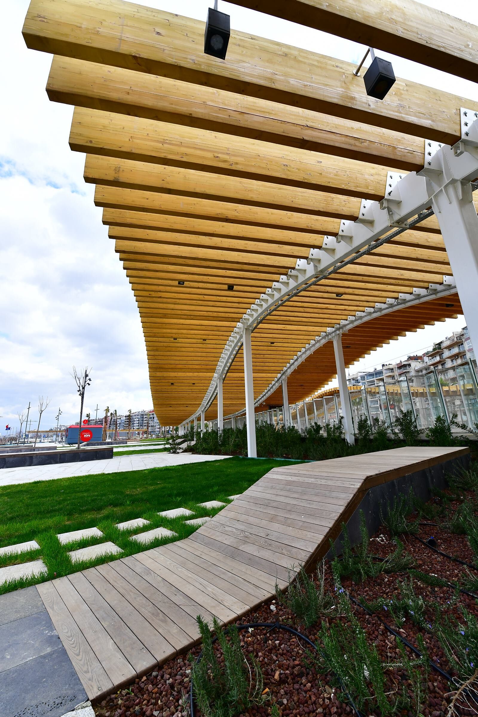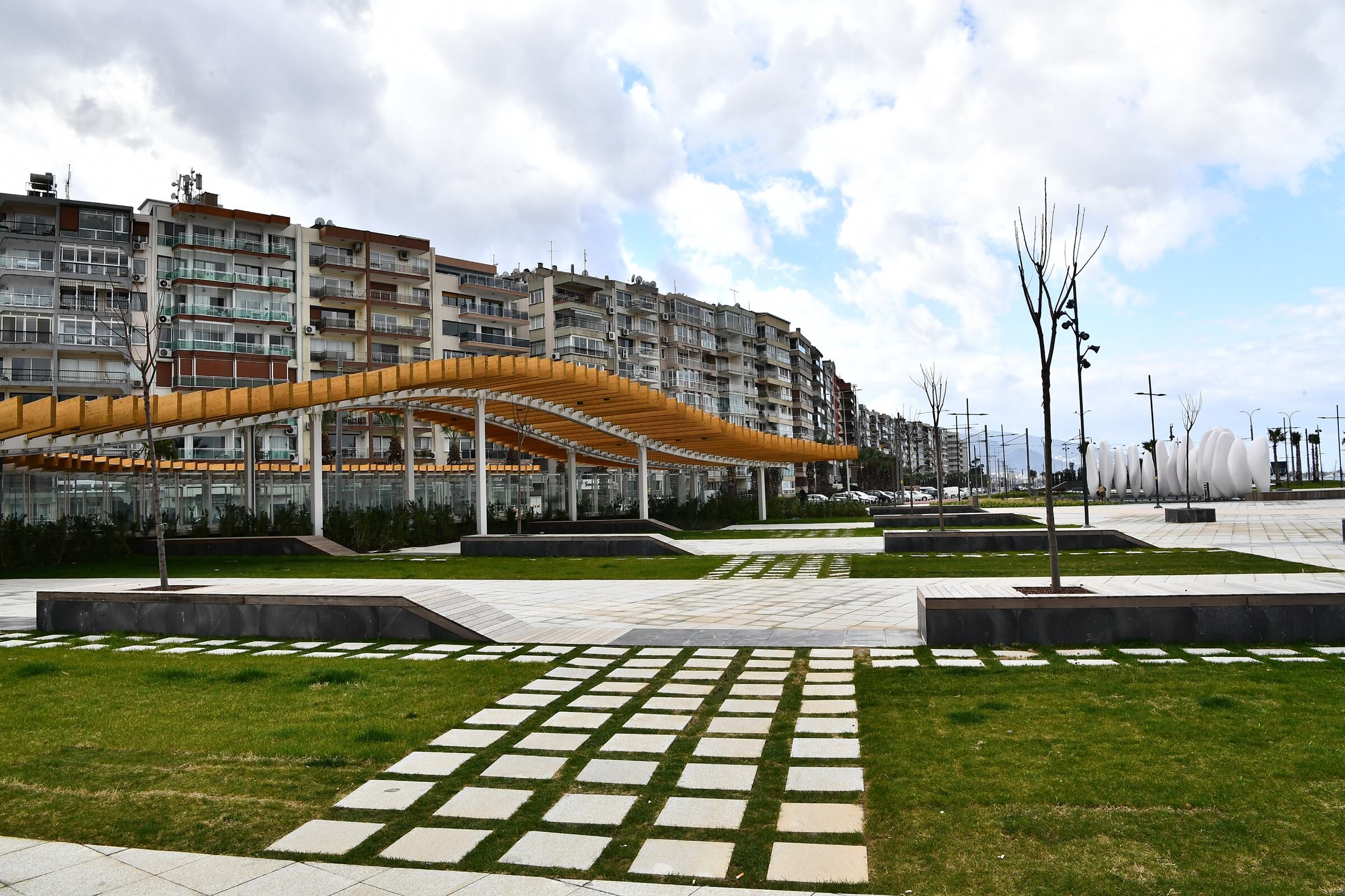 Yeşil dokusu, farklı peyzaj uygulamaları ve oyun gruplarıyla bölgeye estetik açıdan önemli bir değer katacak olan bu yeni meydan, İzmirlileri 1200 metrekarelik sahil şeridi ile buluşturuyor. Ayrıca yeni düzenleme sayesinde, Mithatpaşa Parkı’nın kara tarafında kalan tarihi doku da daha görünür ve algılanır hale geldi. Meydanda 16 bin 500 metrekarelik yeşil alan yaratıldı. 8 bin metrekarelik bölüm çim alan olarak düzenlenirken, geri kalan alana 378 adet ağaç ve 62 bin adet çalı grubu bitki dikildi.
