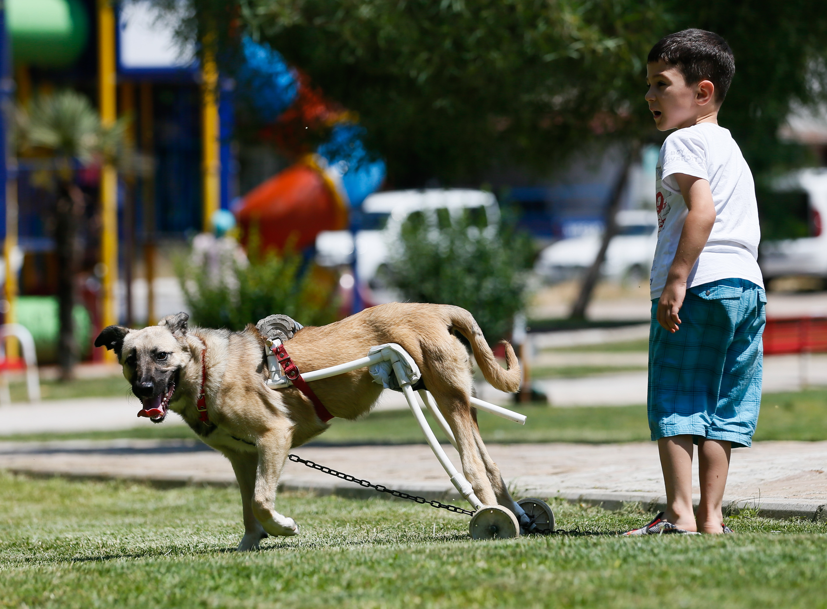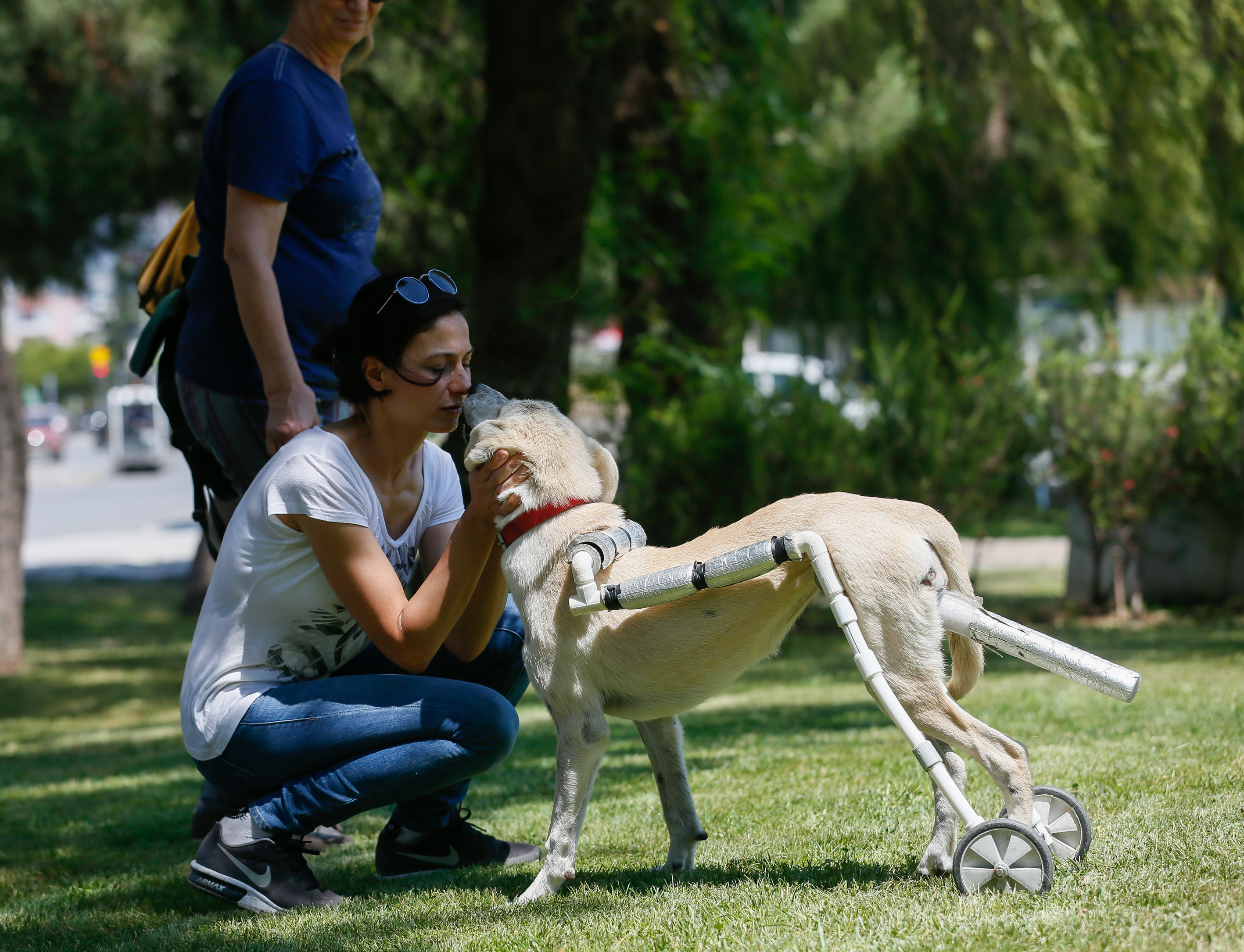İnternette görüp esinlendiği yürüteci, sahiplendiği "Tosun" için yapan hayvansever, saçma ile vurulan "Yağmur" isimli köpek için de yürüteç tasarladı. Hayırseverin çabası takdir topladı.