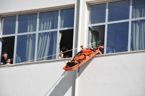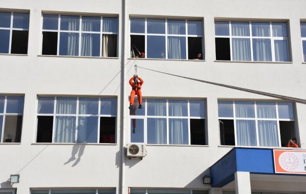 İzmir'de, 2 yıl önce 117 kişinin hayatını kaybettiği 6.6 büyüklüğündeki depremin yıl dönümüne sayılı günler kala İzmir Esnaf ve Sanatkarlar Odaları Birliği Mesleki ve Teknik Anadolu Lisesi İtfaiyecilik ve Yangın Güvenliği Bölümü öğrencileri tatbikat yaptı. Profesyonel giysiler giyen öğrenciler, ekipmanları ve itfaiye araçlarıyla, senaryo gereği okulda mahsur kalan kişileri kurtardı.