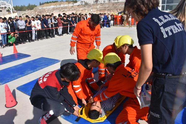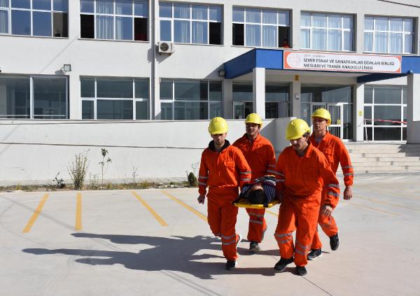 İzmir Esnaf ve Sanatkarlar Odaları Birliği Mesleki ve Teknik Anadolu Lisesi İtfaiyecilik ve Yangın Güvenliği Bölümü öğrencileri, edindikleri teorik bilgilerin yanı sıra pek çok saha çalışmasında aktif görev alıyor. İzmir Büyükşehir Belediyesi'nin destekleriyle olay yerlerinde itfaiye erlerinden eğitim alan öğrenciler, 30 Ekim 2020'deki 6.6 büyüklüğündeki depremin yaklaşan 2'nci yıl dönümü nedeniyle okulda tatbikat yaptı. Profesyonel giysileri ve ekipmanlarıyla dikkat çeken öğrenciler, itfaiye araçlarını da kullanıp temsili olarak okulda mahsur kalan kişileri kurtardı.