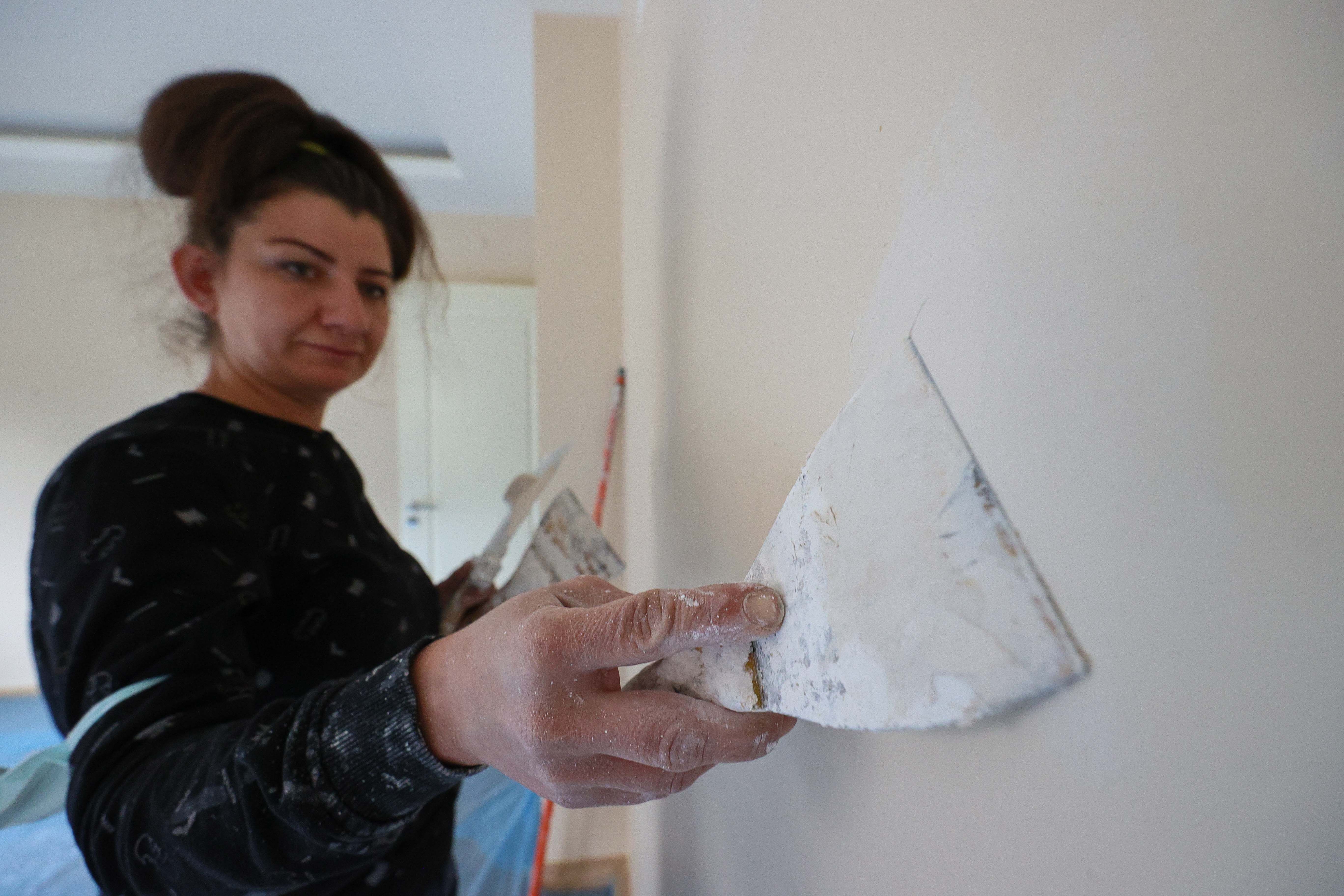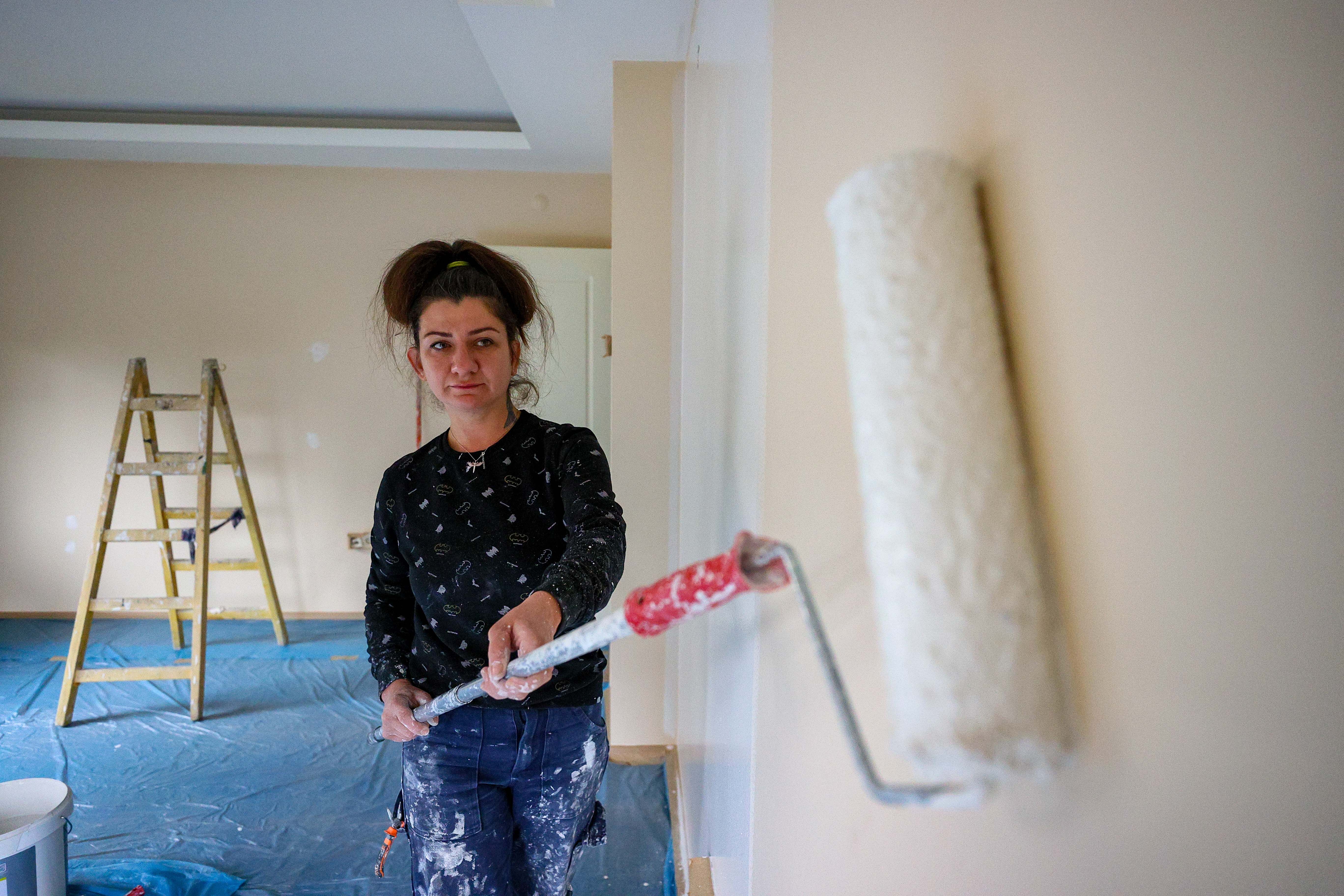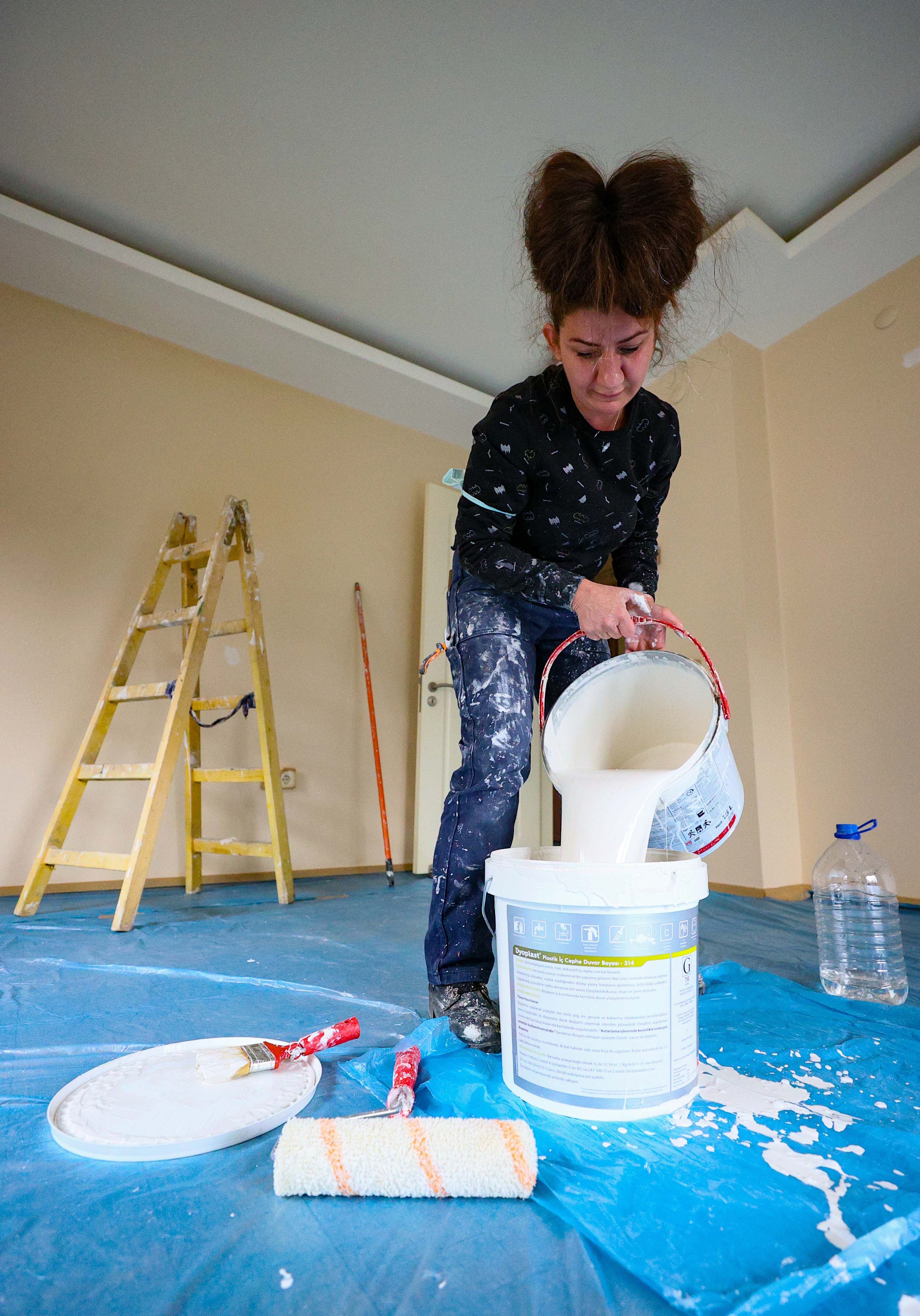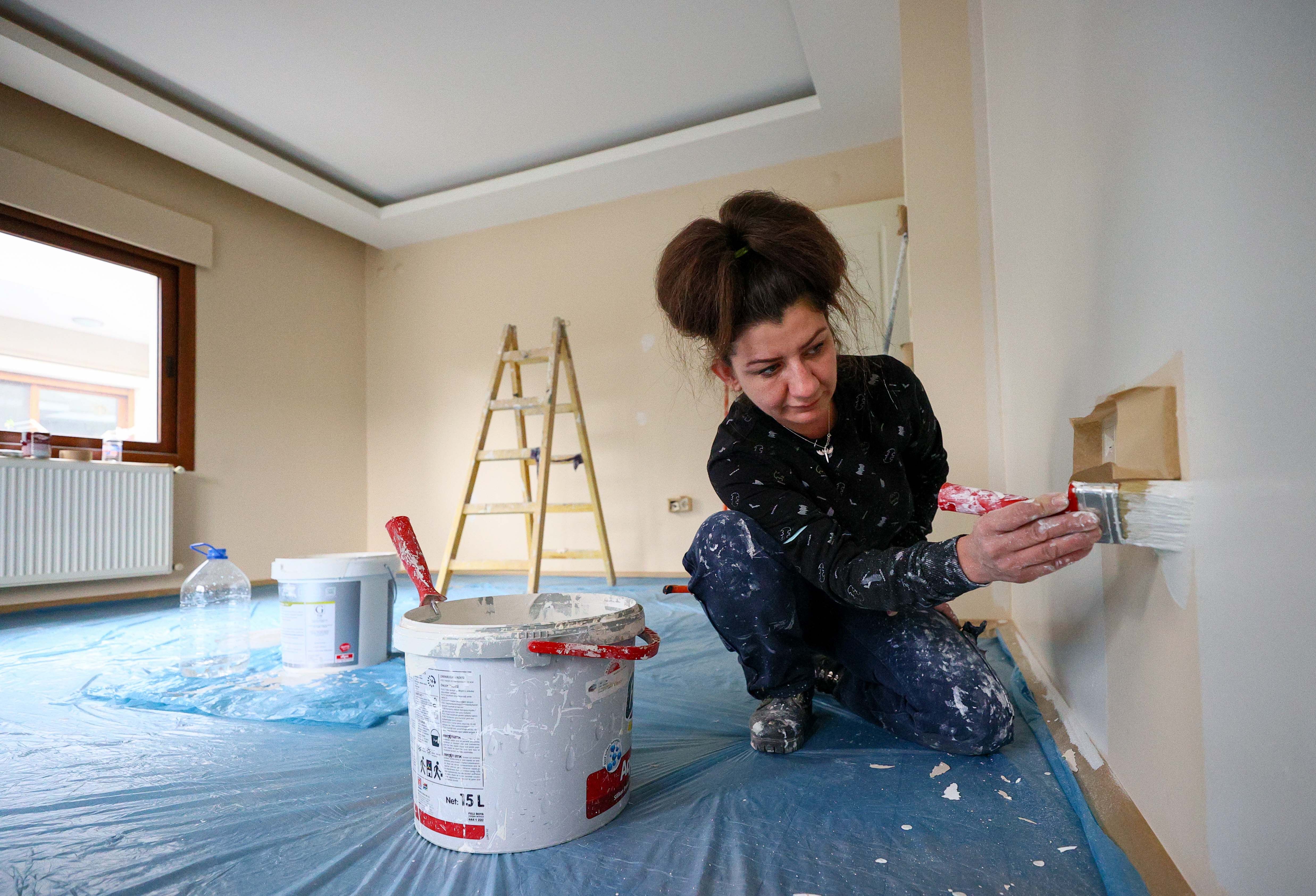 İzmir'de yıllarca farklı iş kollarında çalışan 44 yaşındaki Seda Korkmaz, son 4 yıldır boya badana ustalığıyla geçimini sağlıyor.