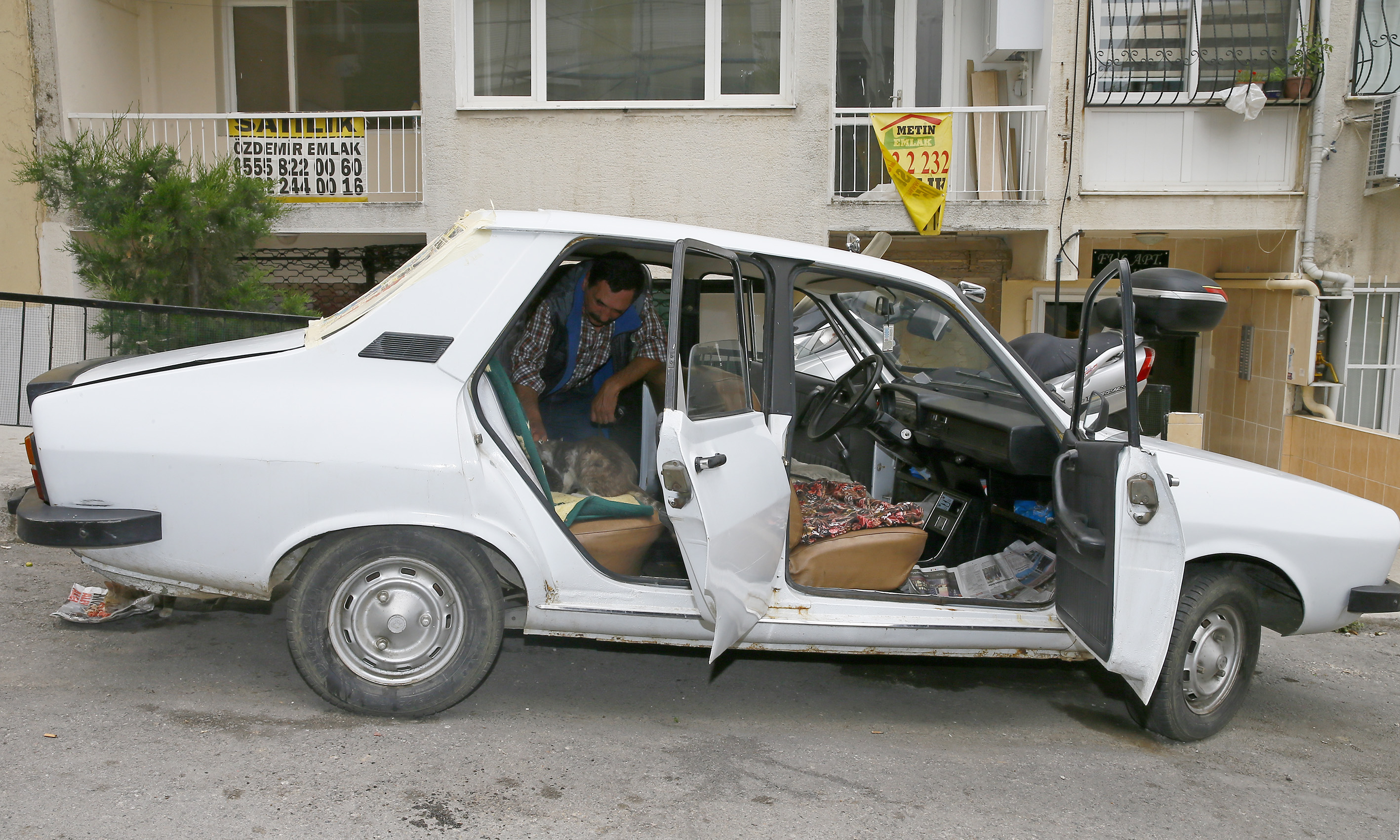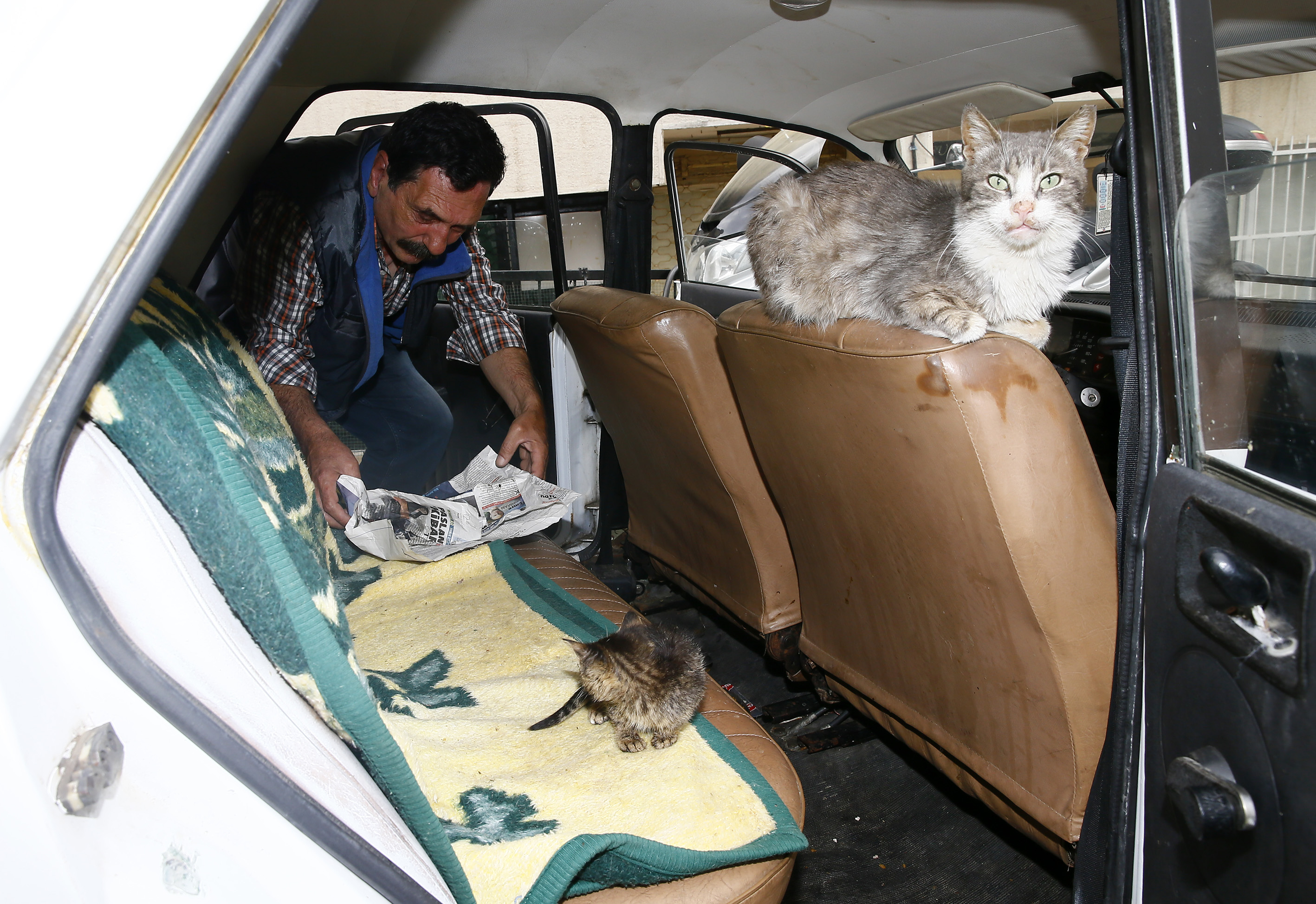 İzmir'in Karabağlar ilçesinde yaklaşık 15 yıldır sokak kedilerine yemek hazırlayan taksi şoförü Tahir Çeven, 1977 model otomobilini yavru ve hasta kedilerin bakımı için yuva yaptı