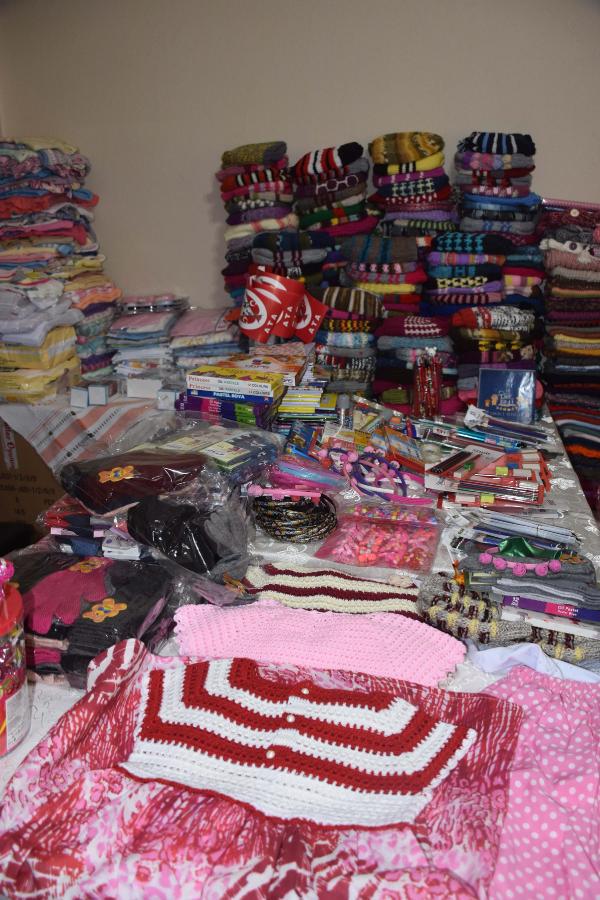 "Rahmetli annemi, oğlumu ve kız kardeşimi kaybettikten sonra 'kefenin cebi yok' dedim. Burayı, bağış işlerini organize etmek için grubuma açtım. Her hafta burada toplanıyoruz. Herkes ördüklerini buraya getiriyor. Malzemeleri kargolayıp kolileri gereken okullara gönderiyoruz. Bunun öncülüğünü ettiğim için çok mutluyum. Çok çocuğa ulaşıyoruz. Benim oğlum odasını, bilgisayarını çok severdi ama her şeyini bırakıp gitti. Bu dünya yalan dünya. Yeni nişanlanmıştı, 4 yıl önce kalp krizinden öldü. Bu arkadaşlarımın sayesinde kendimi buldum. Psikolojik olarak da bana tedavi gibi oldu. Hiçbir ilaca gerek kalmadan ayaklarımın üzerinde duruyorum."