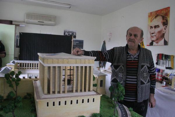 Cam, ahşap, karton, sac, teneke gibi malzemeleri dönüşümde kullanan Denktaş, 5 aydır 2.80x280 metre boyutundaki platform üzerine Anıtkabir maketi yapmaya çalıştığını söyledi.