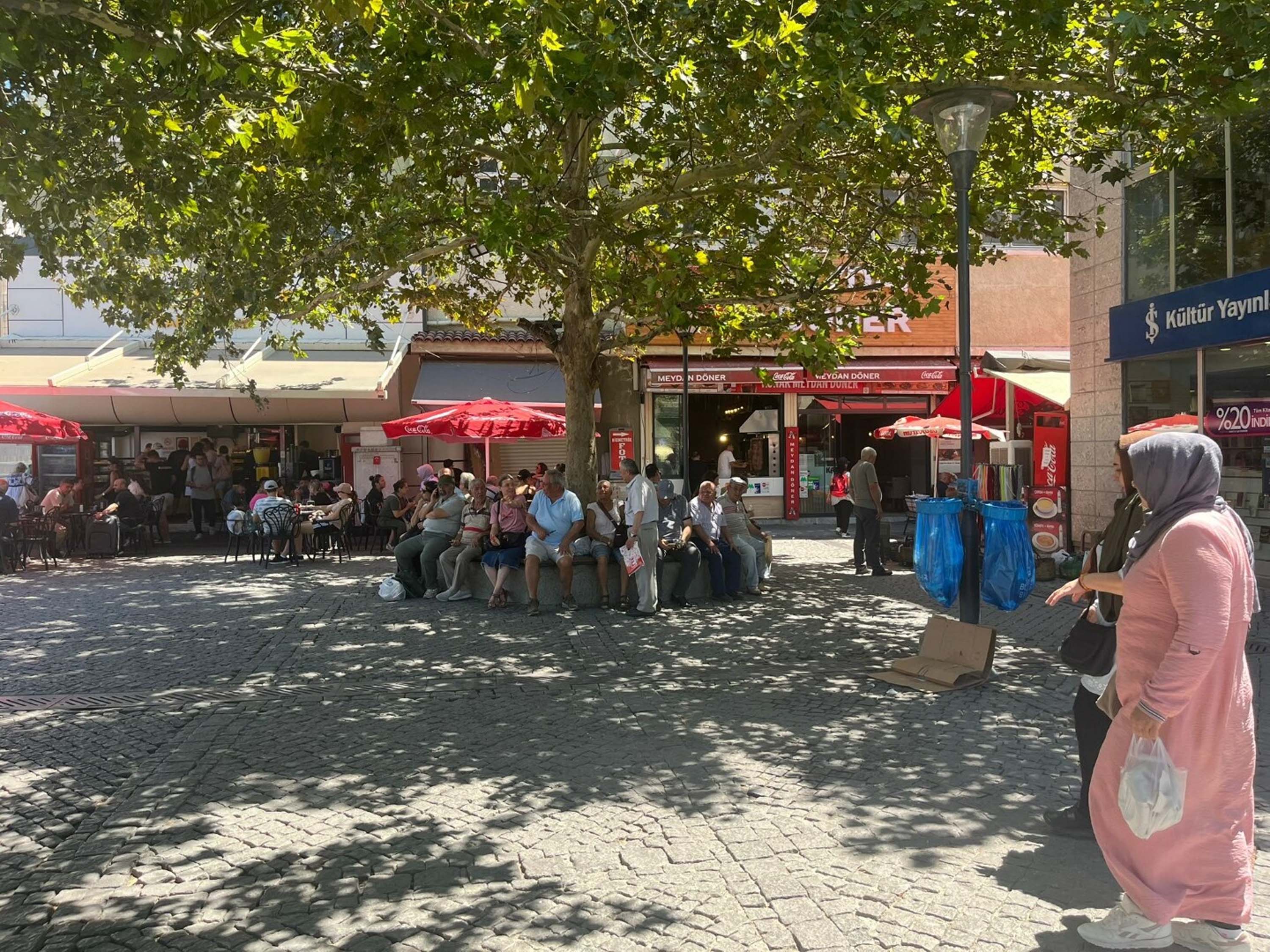 Ersan İlçi (70) de "Hava çok sıcak biz de bu çınar ağaçlarının diplerinde serinlemek için toplanıyoruz. Yaşlılarımızla sohbet ediyoruz. Evler durulmuyor çok sıcak. Sıcaktan korunmak için deniz havası alıyoruz" diye konuştu.