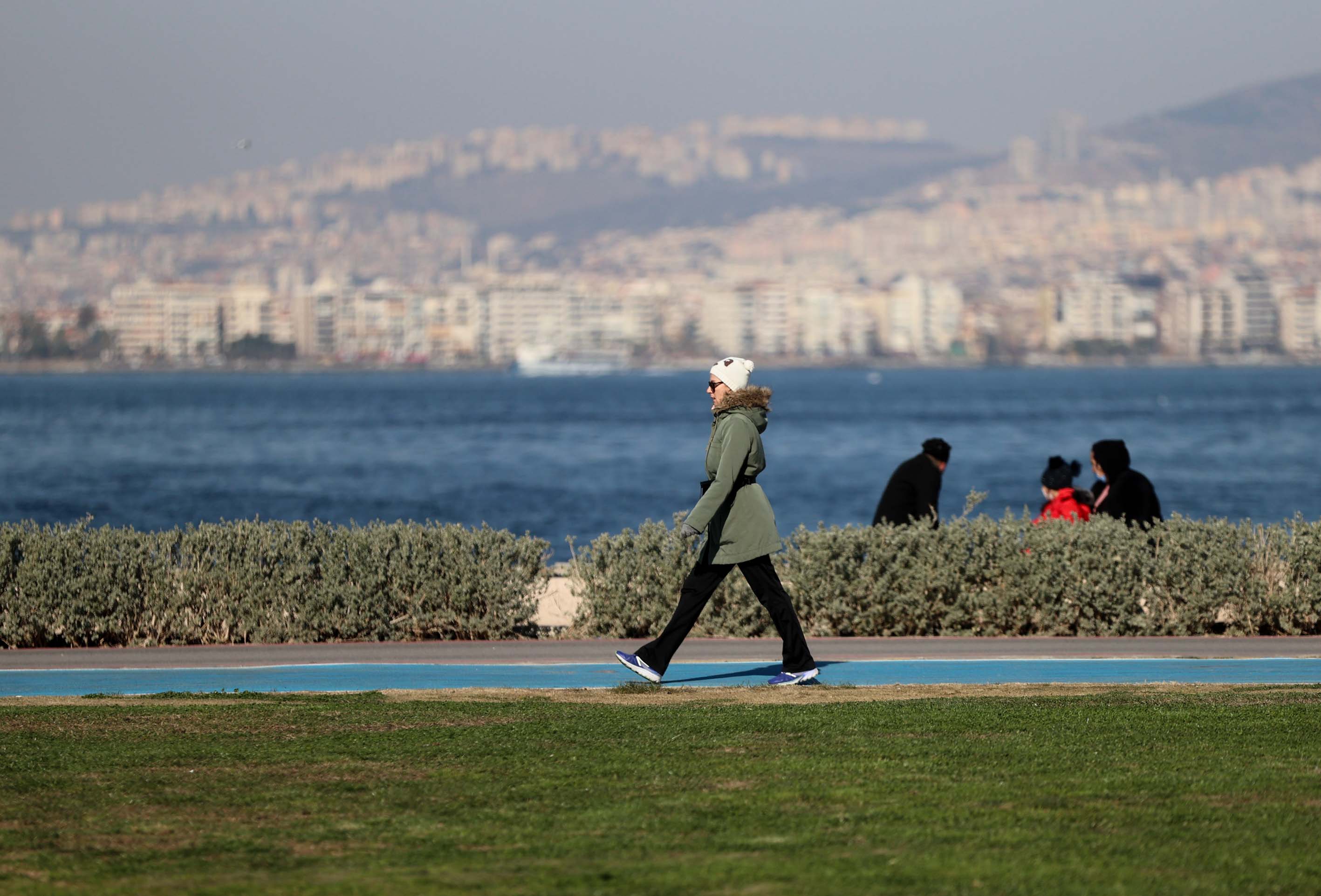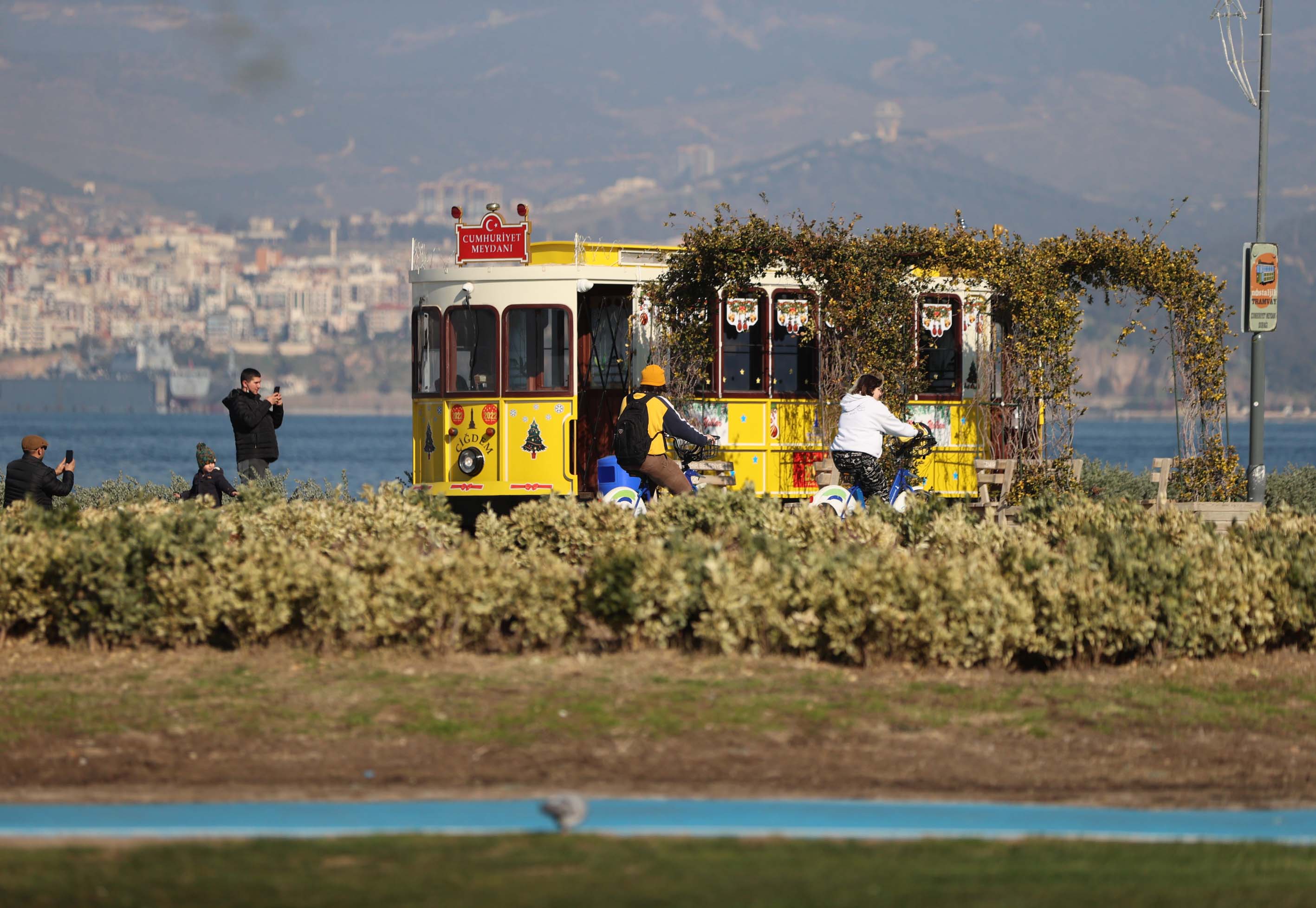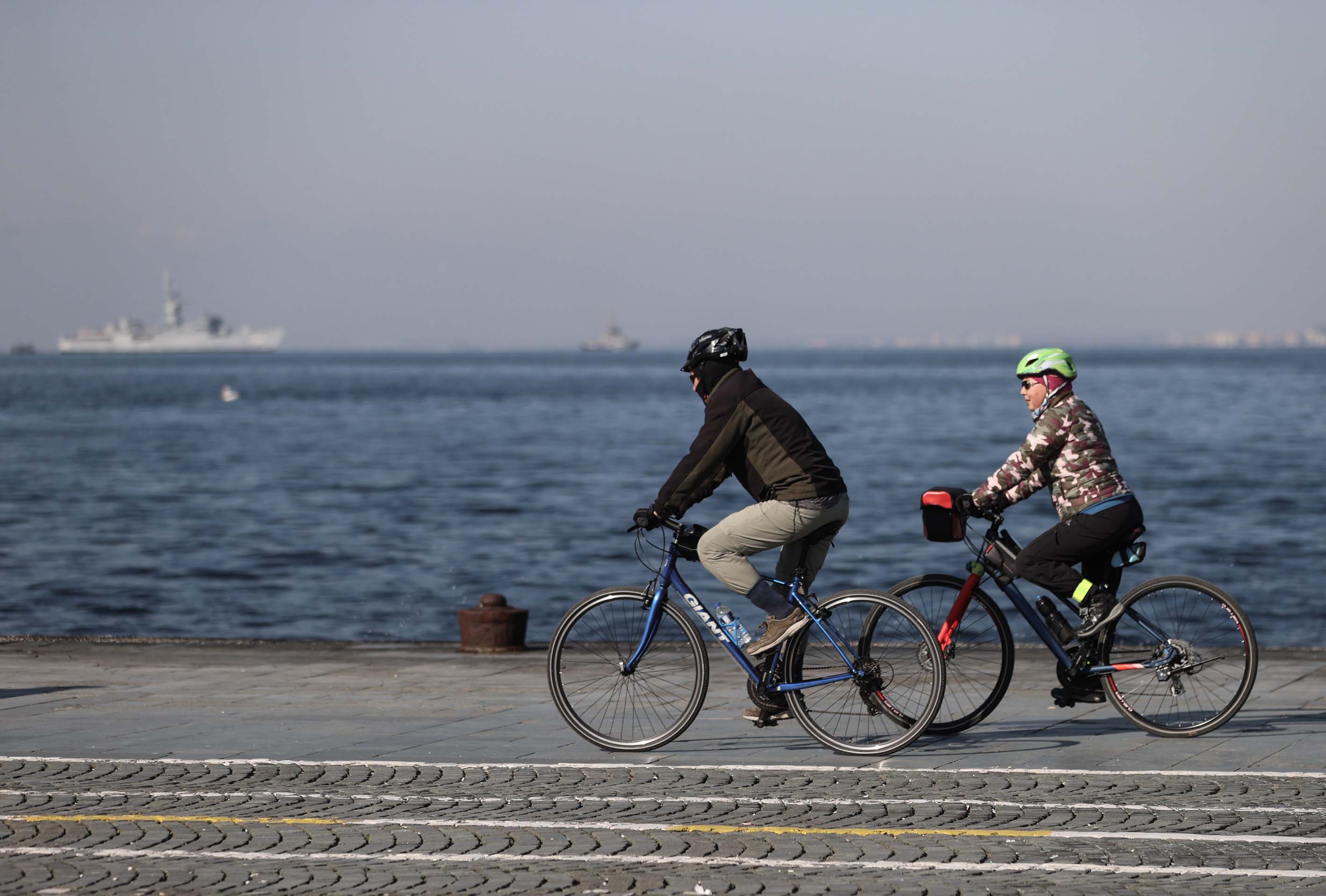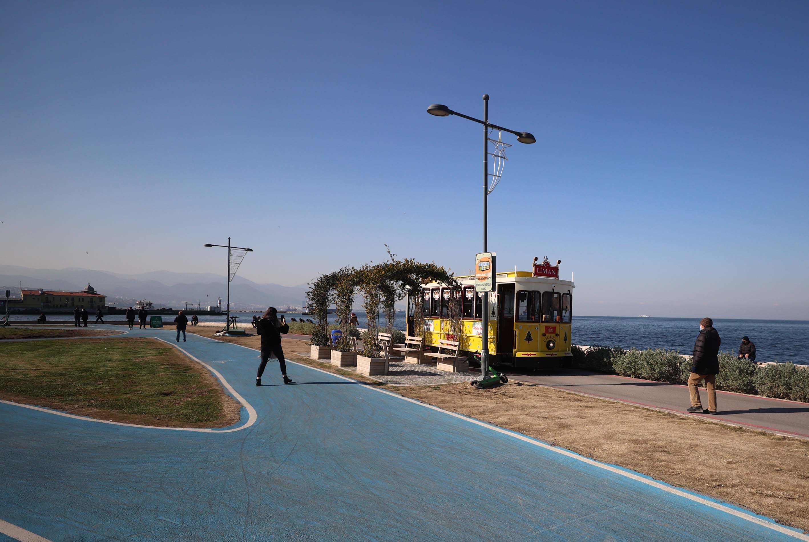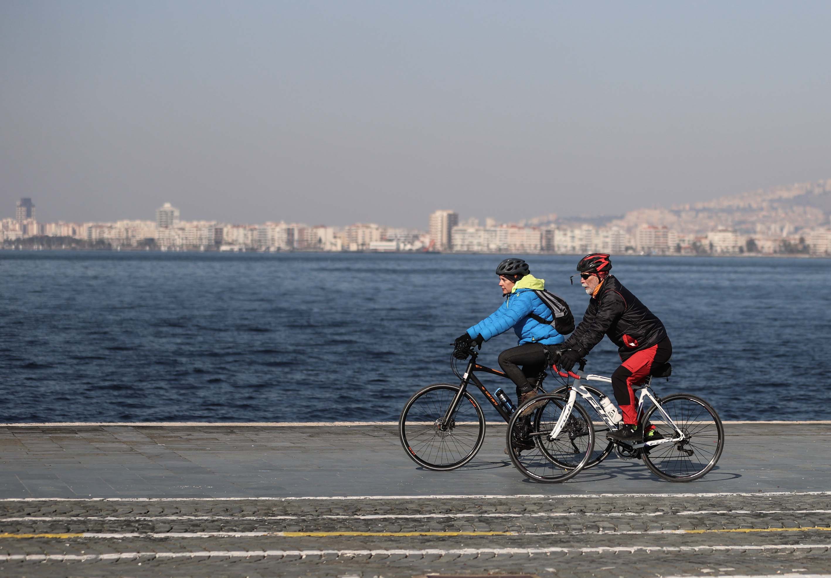 İzmir'de güneşli havayı fırsat bilen vatandaşlar, sahil boyunca yürüyüş yapıp bisiklet ve paten sürdüler.
