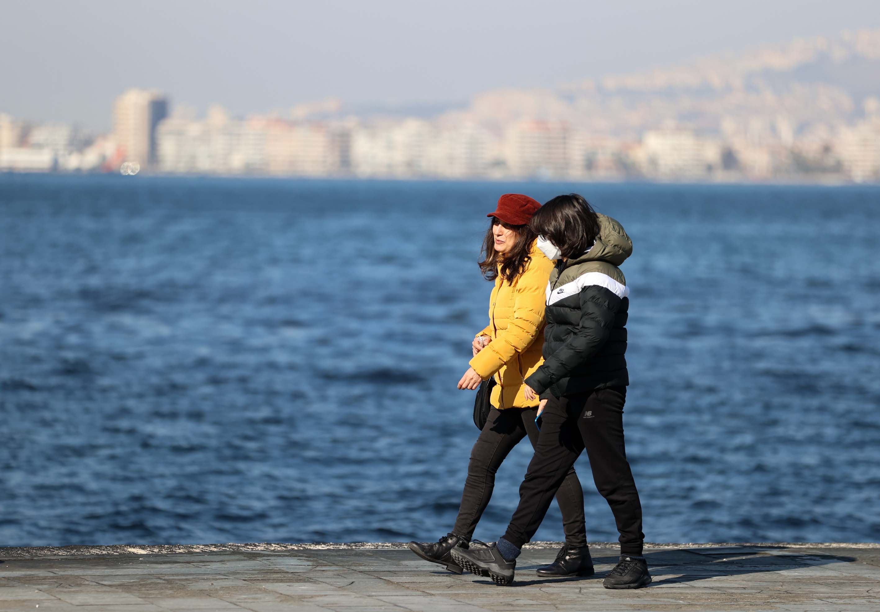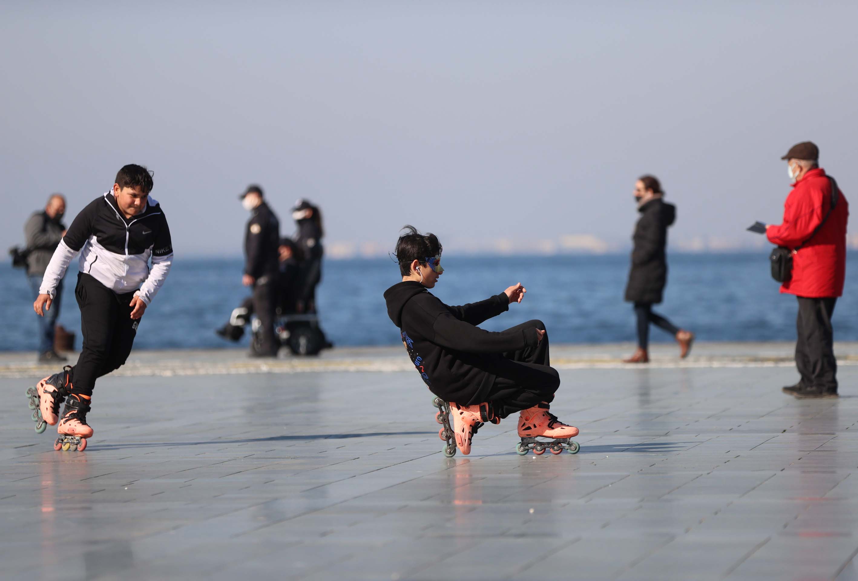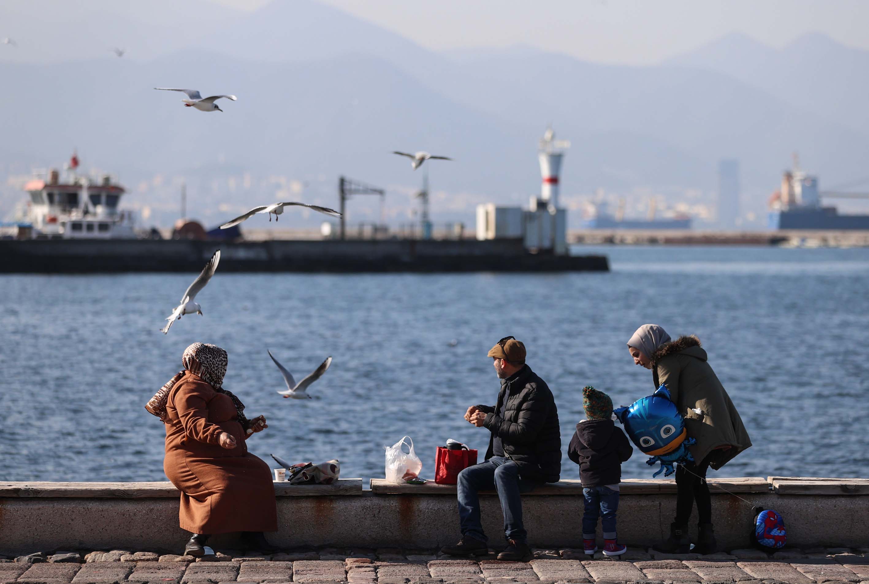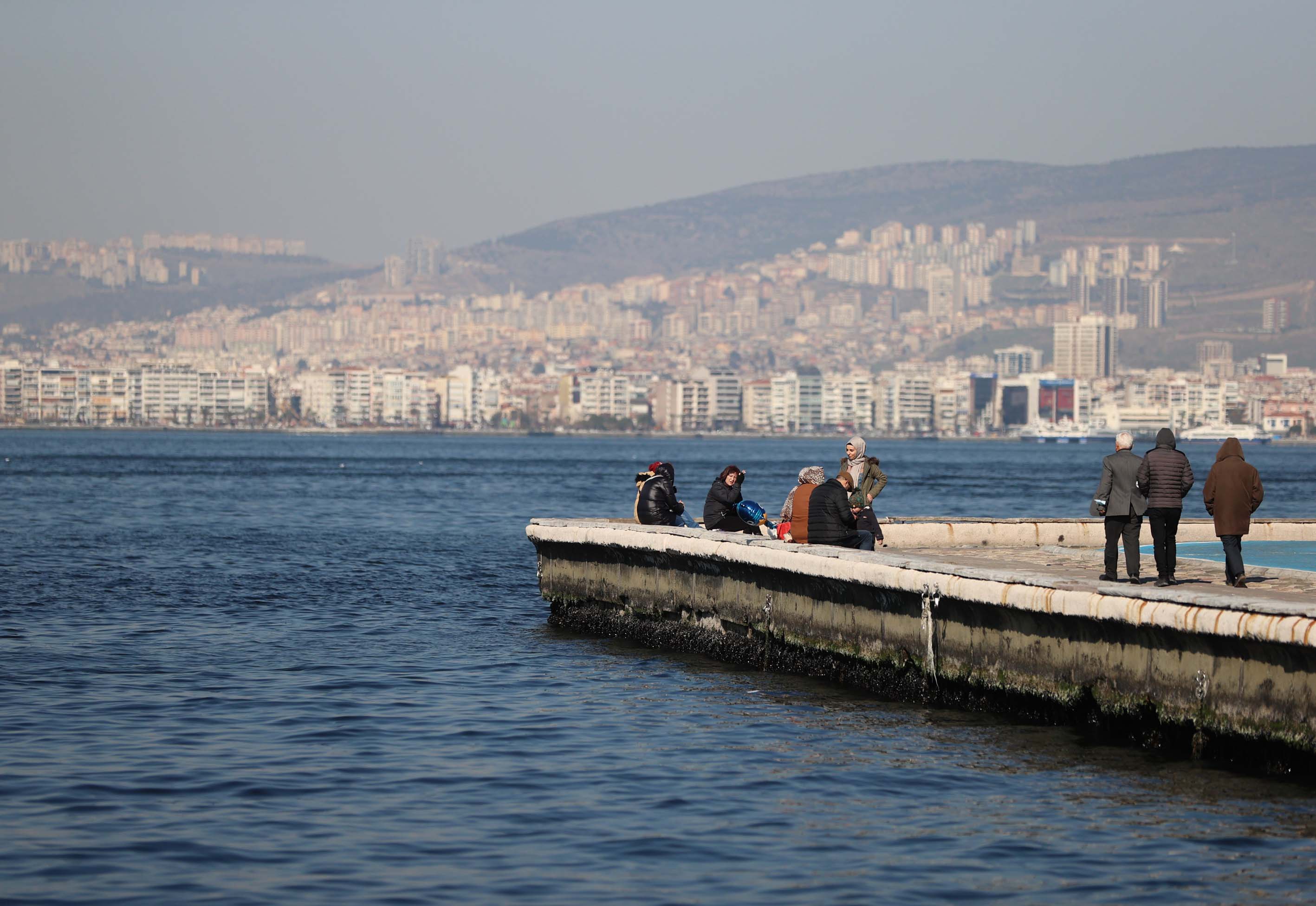 İzmir'de güneşli havayı fırsat bilen vatandaşlar, sahil boyunca yürüyüş yapıp bisiklet ve paten sürdüler.