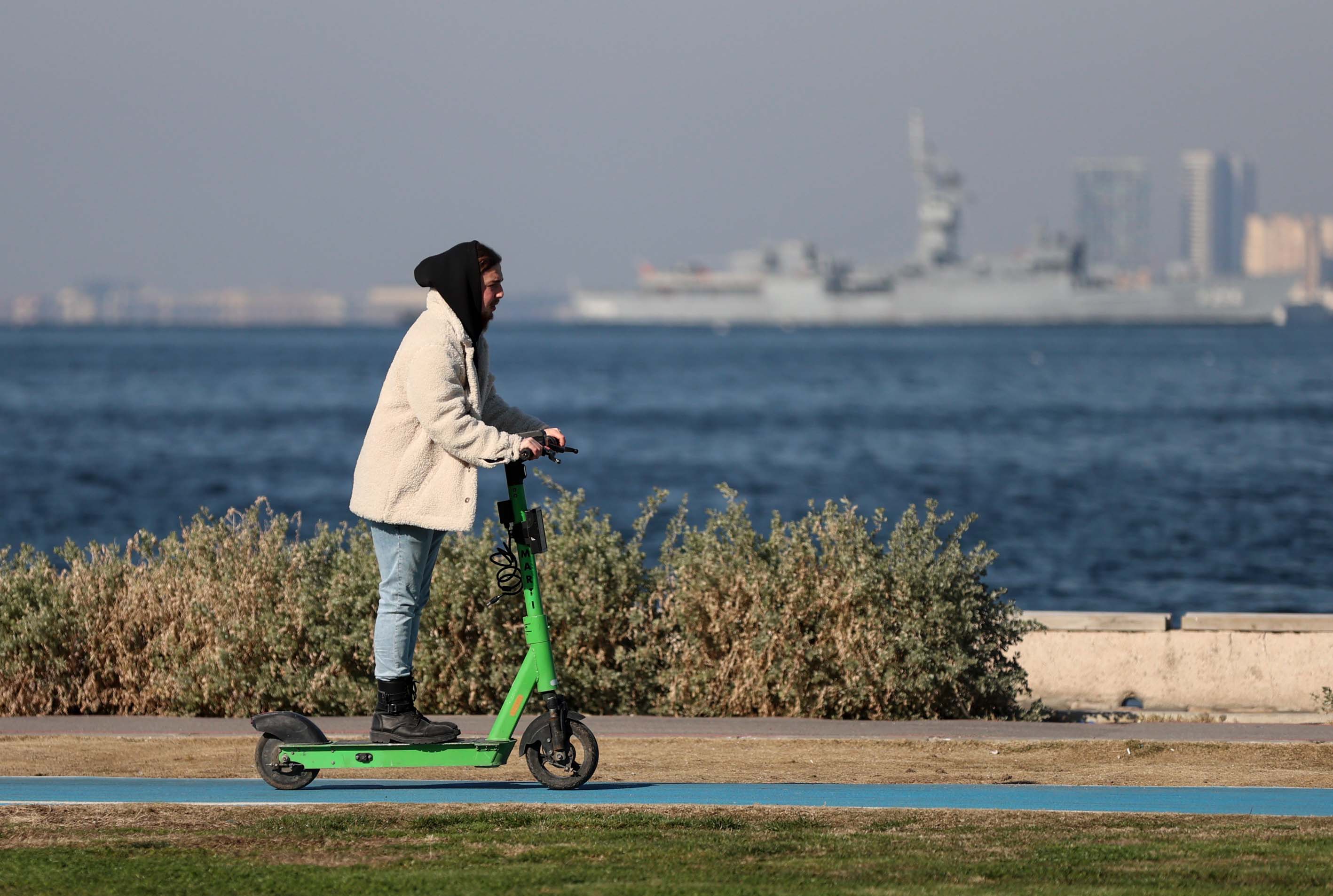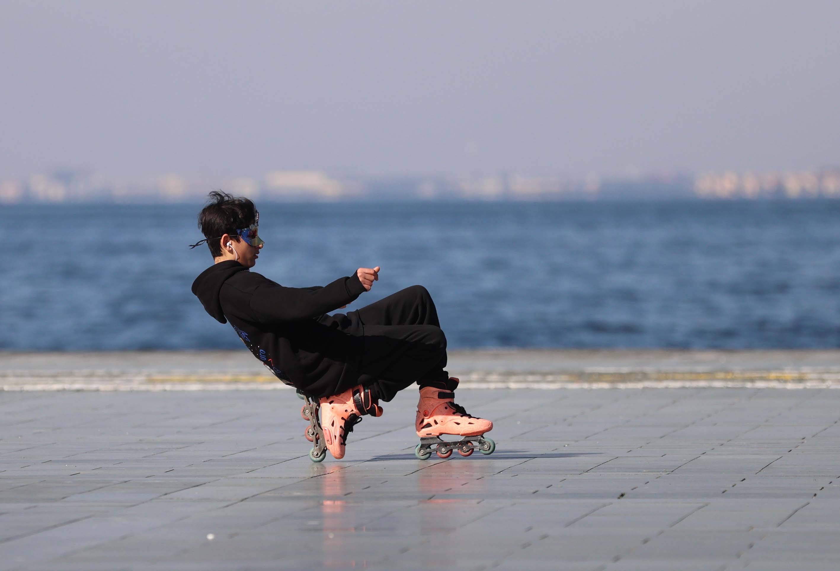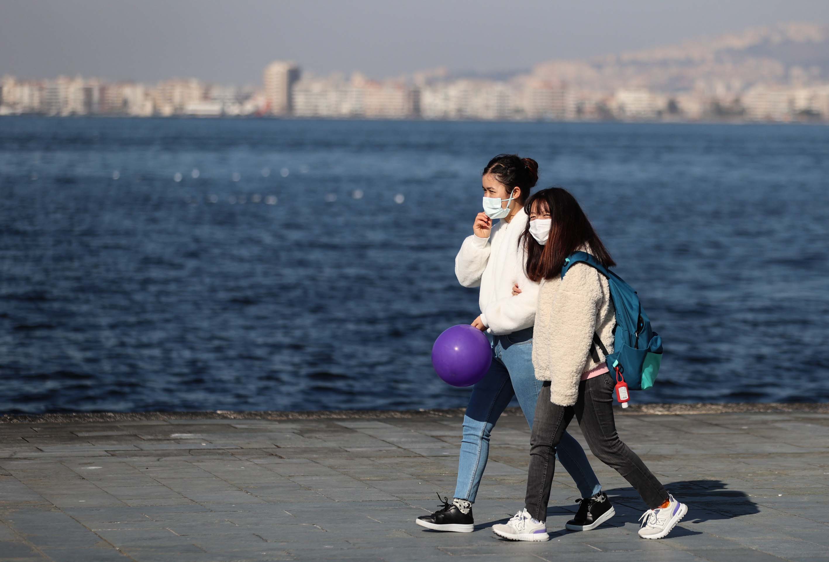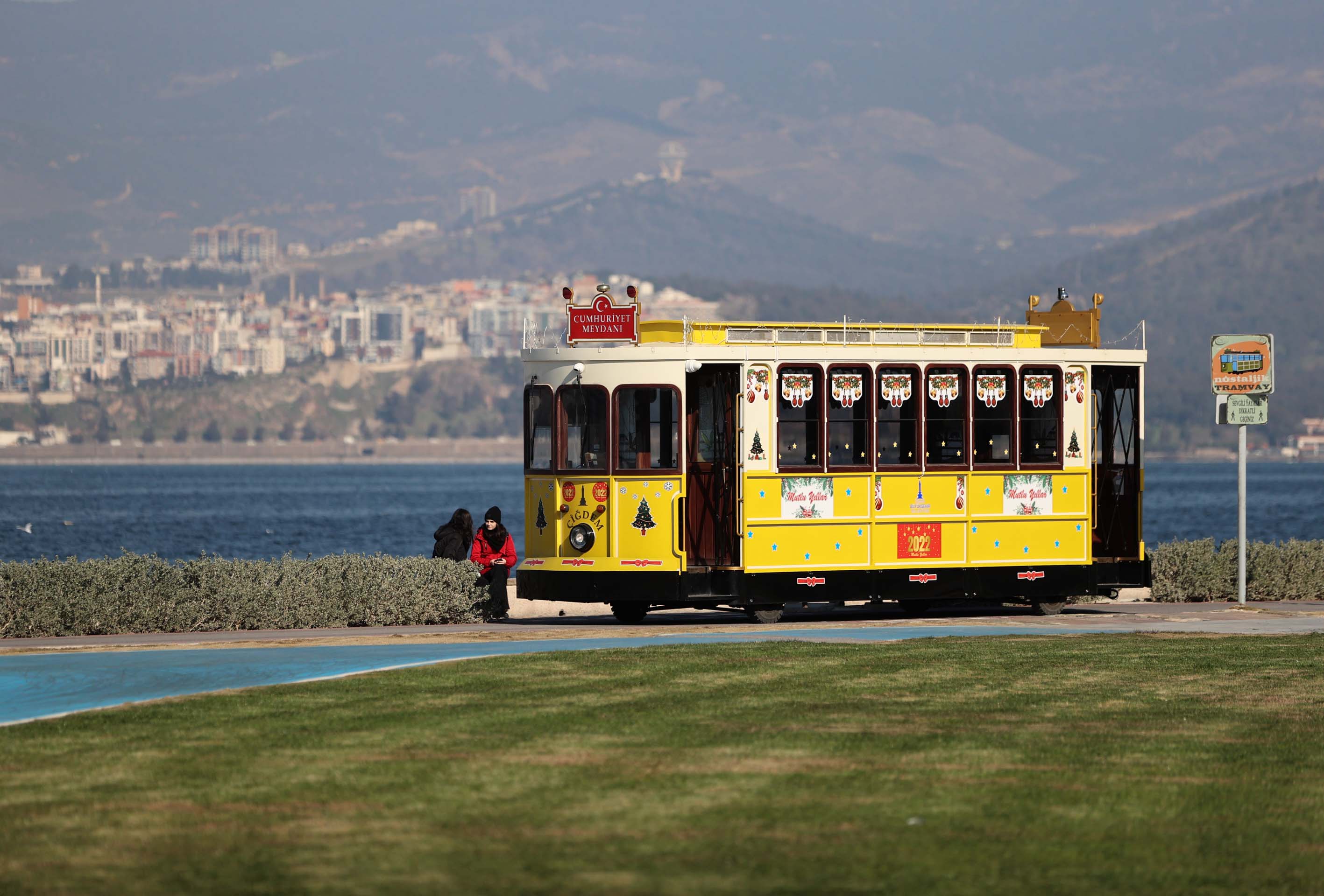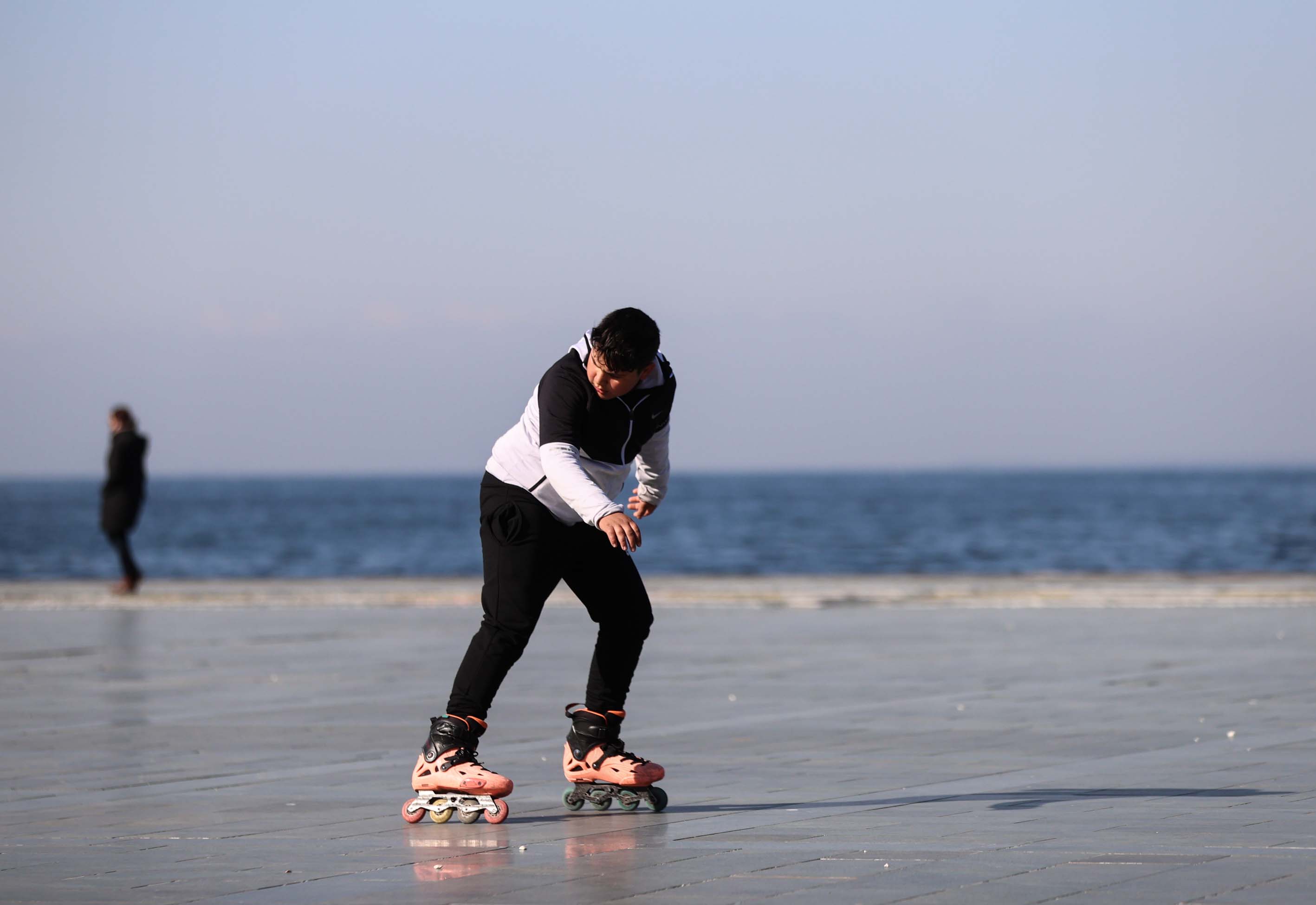 İzmir'de güneşli havayı fırsat bilen vatandaşlar, sahil boyunca yürüyüş yapıp bisiklet ve paten sürdüler.