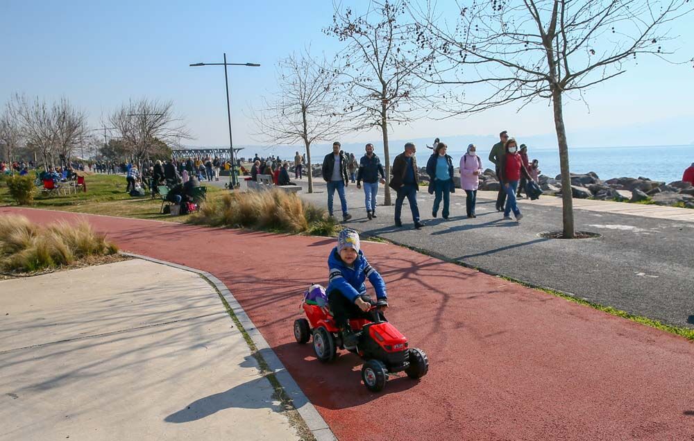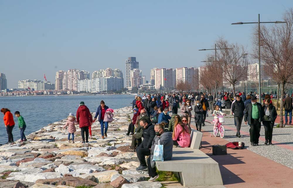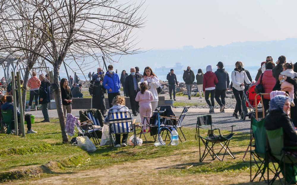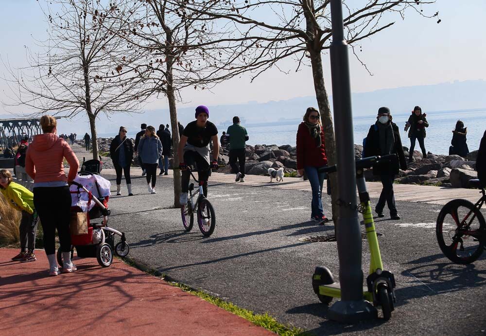 Bazı vatandaşlar deniz kıyısında yürüyüş yaparken, bazıları da bisikletlerle gezdi. Çocuk parkları da çocuklarını eğlendirmek isteyen ailelerle doldu. Denize yakın noktalardaki kafelerde de yoğunluk gözlenirken kamp sandalyesi getirenler çimlerin üzerinde sohbet etti.