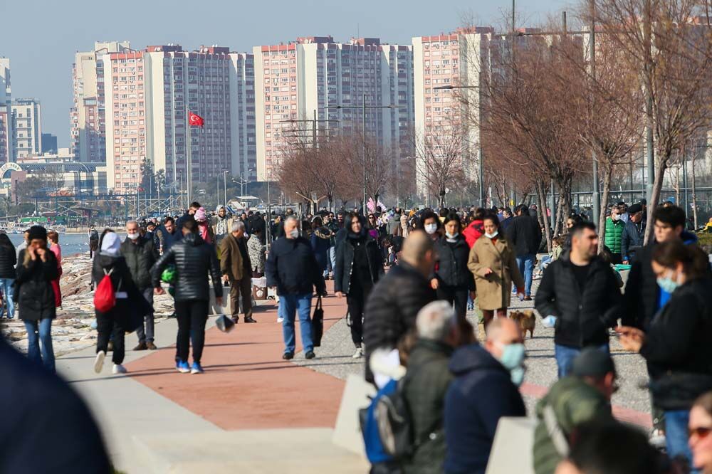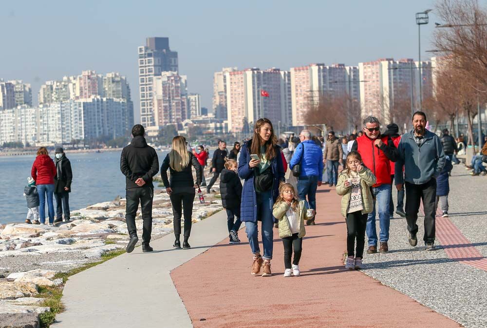 Türkiye'nin birçok noktasında kar ve dondurucu soğuk etkili olurken, hava sıcaklığının 15 dereceye ulaştığı İzmir'de vatandaşlar açık alanlarda yoğunluk oluşturdu.