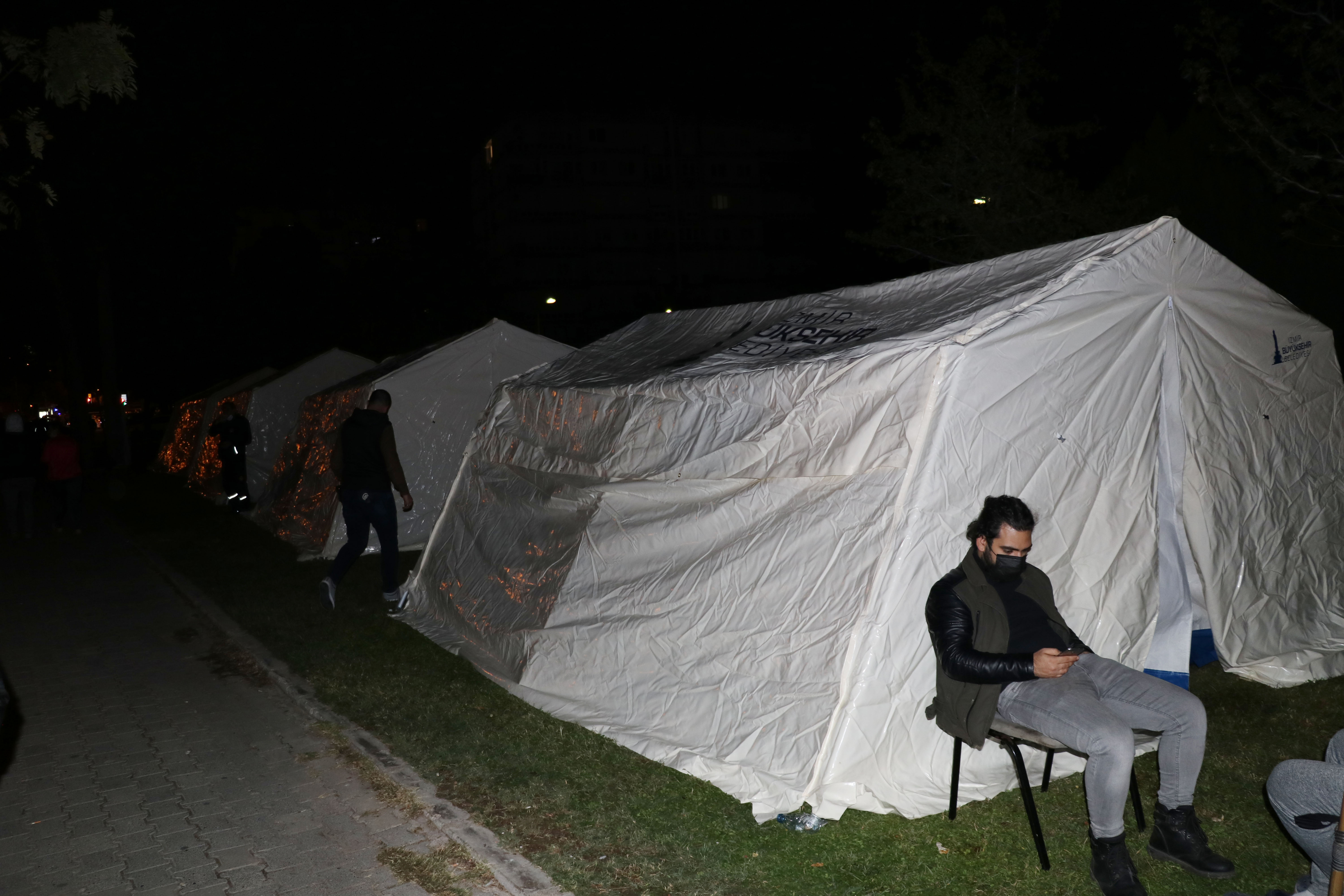 Merkez üssü Ege Denizi'nin Seferihisar açıkları olan 6,6 büyüklüğünde depremi yaşayan İzmirli depremzedelerden bazıları geceyi çadırlarda geçiriyor.