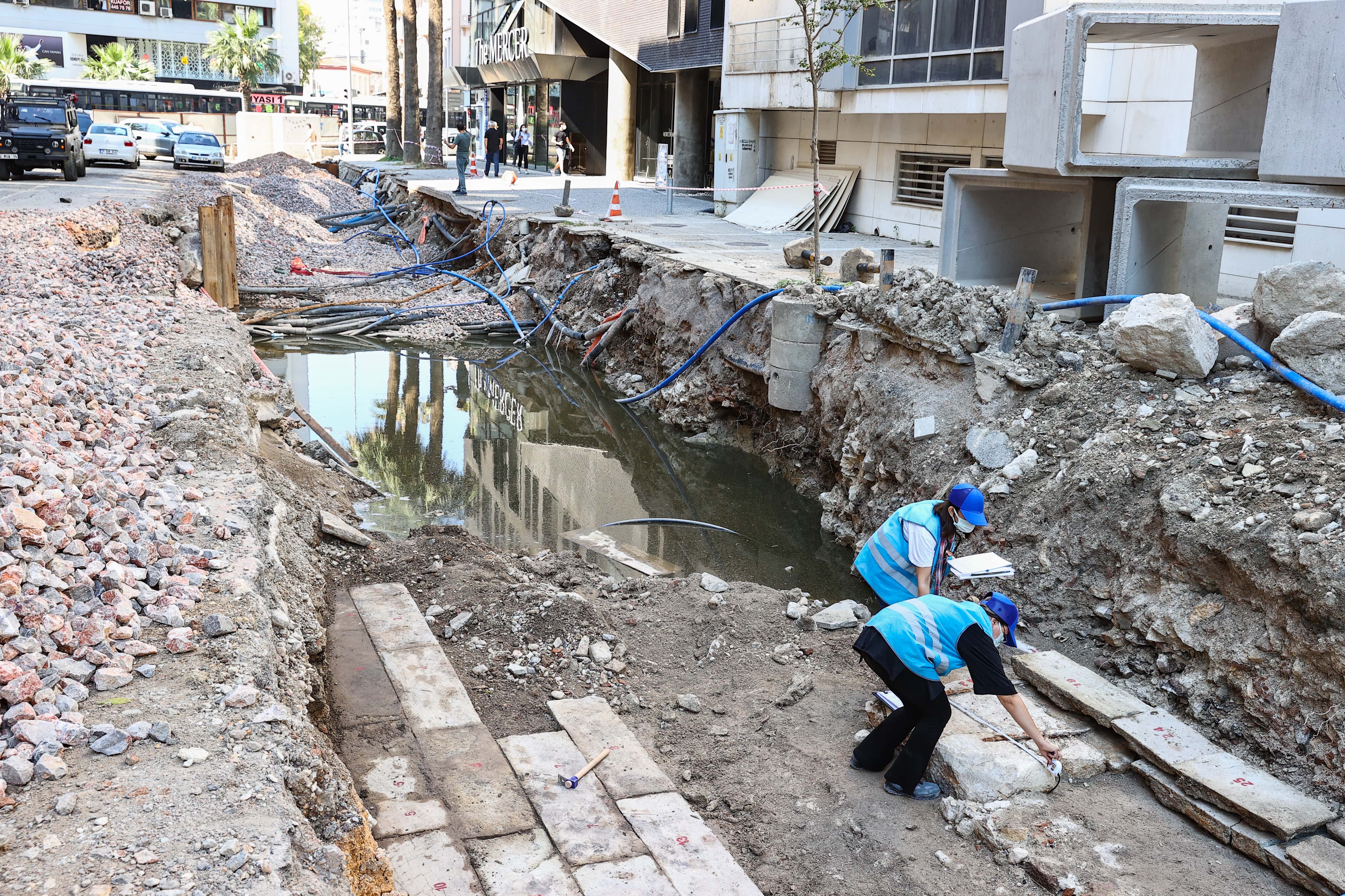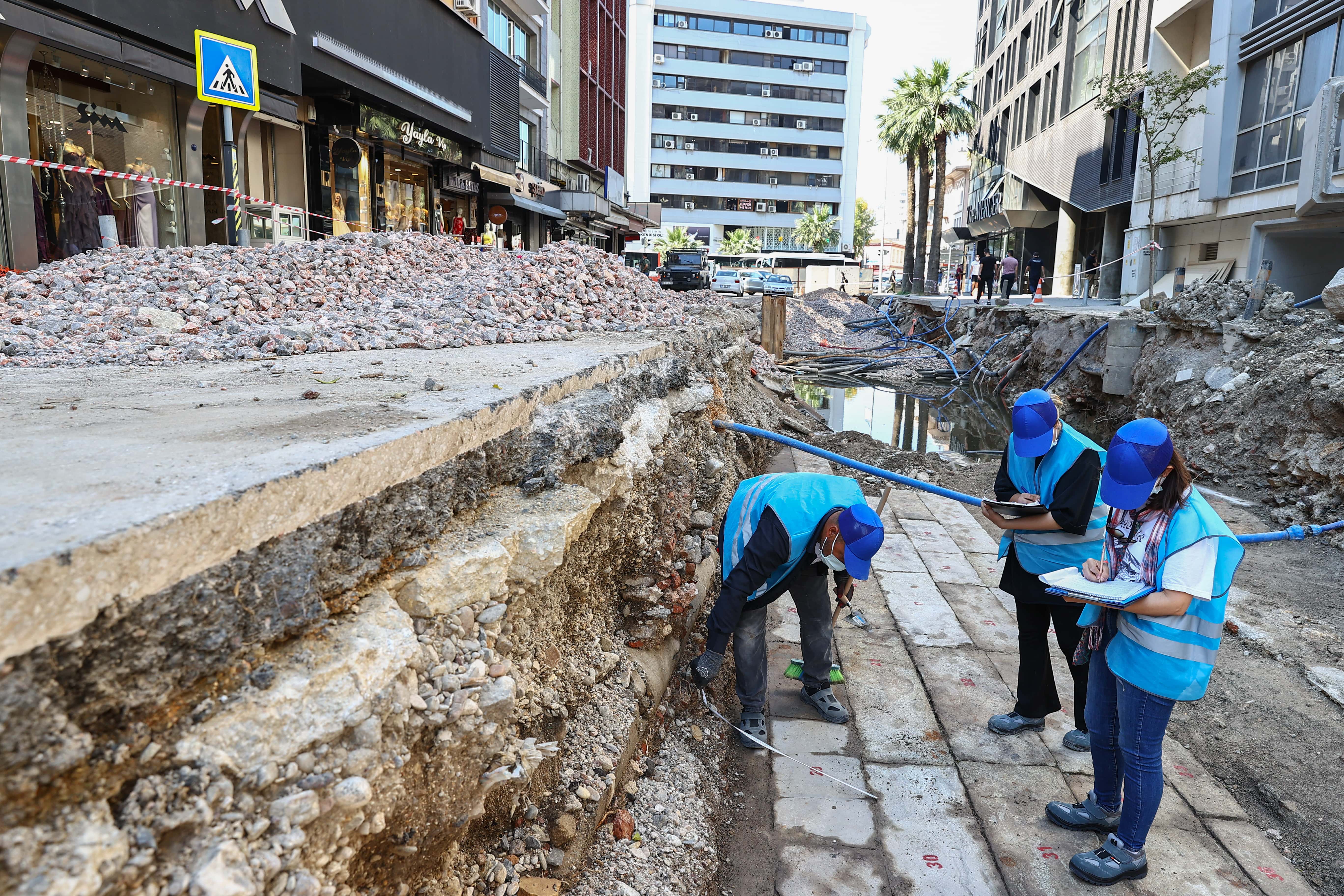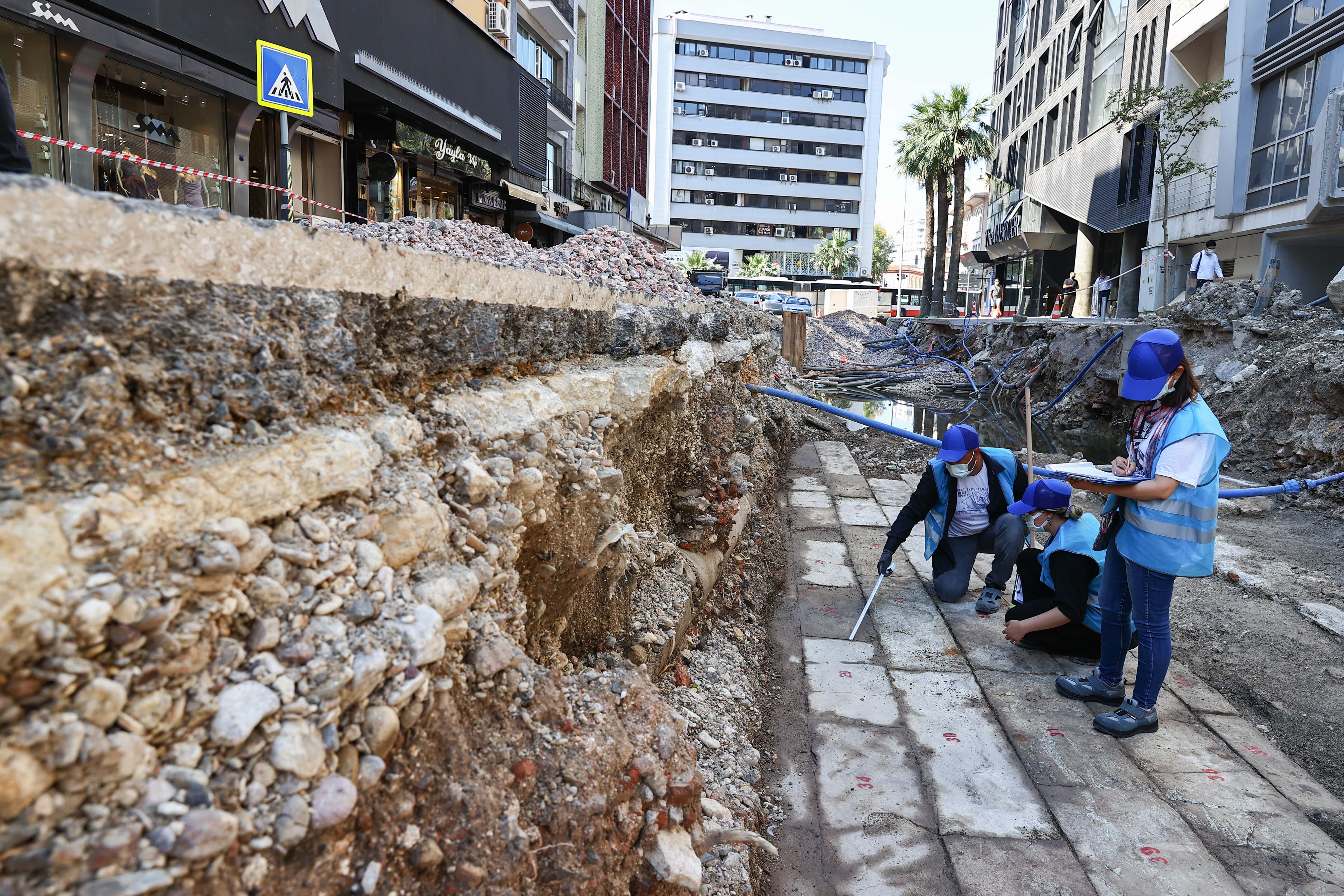 İZSU ekipleri, yaklaşık 1,5 ay önce caddedeki yağmur suyu drenaj ve kanalizasyon hattı döşeme faaliyetleri sırasında tarihi kalıntılara rastlayınca, çalışmaları durdurarak İzmir Arkeoloji Müzesi Müdürlüğüne bilgi verdi.