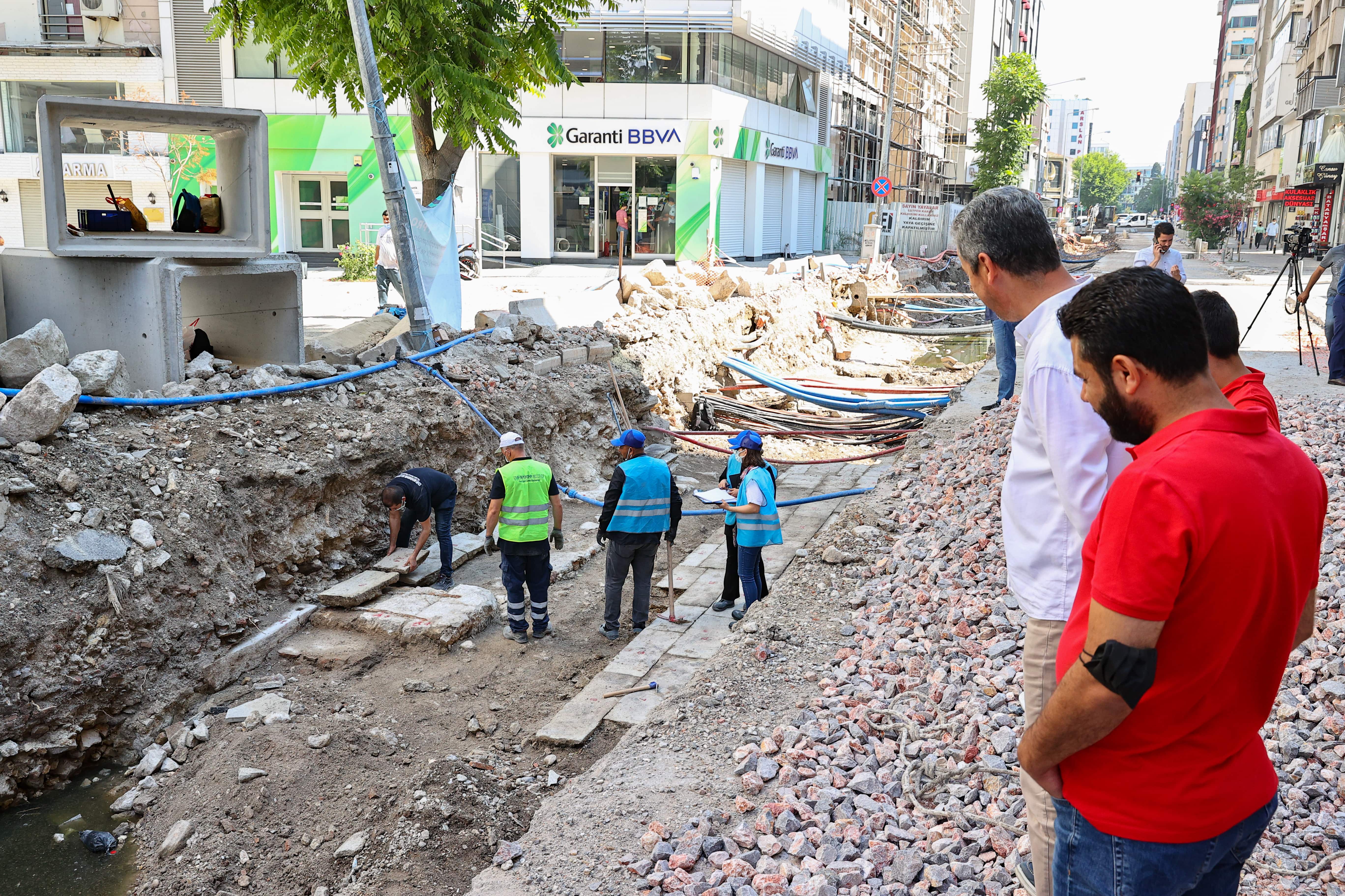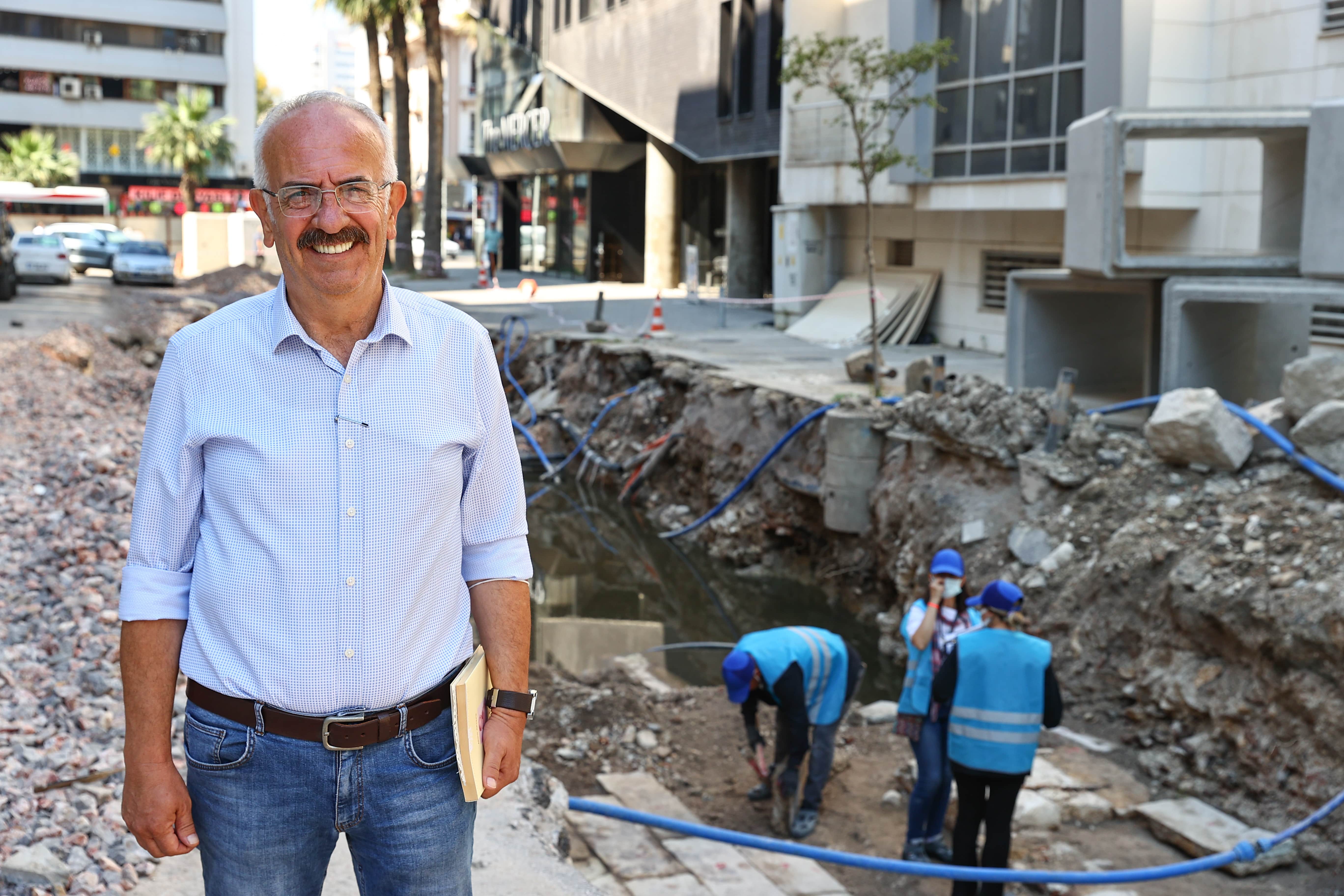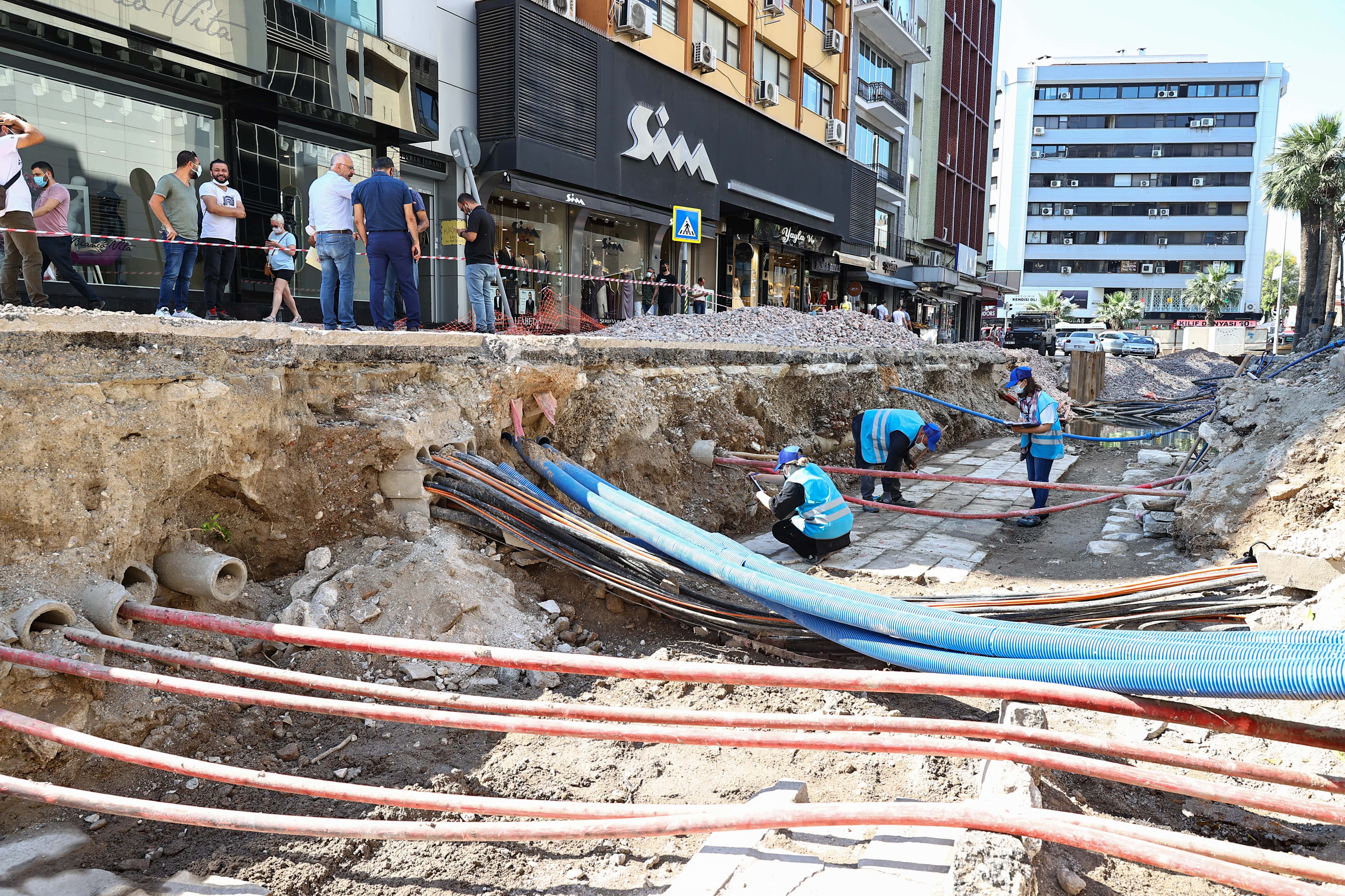 İZSU ekipleri, yaklaşık 1,5 ay önce caddedeki yağmur suyu drenaj ve kanalizasyon hattı döşeme faaliyetleri sırasında tarihi kalıntılara rastlayınca, çalışmaları durdurarak İzmir Arkeoloji Müzesi Müdürlüğüne bilgi verdi.