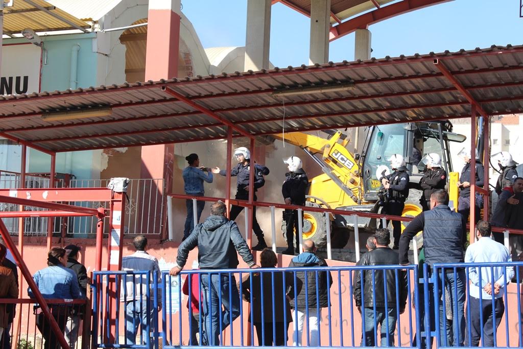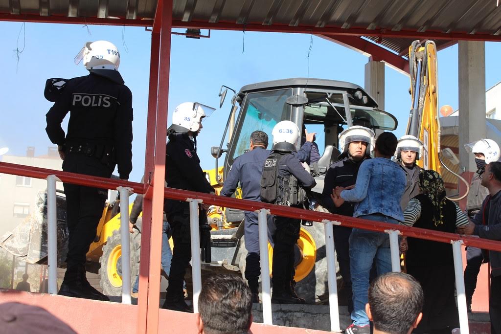 Bayraklı Belediye Başkanı Hasan Karabağ Yamanlar’da yıllardır faaliyette bulunan cemevine ait düğün ve sosyal tesisleri yıktı. İş makinelerine tepki gösteren vatandaşlara TOMA ve gazlı müdahale geldi.