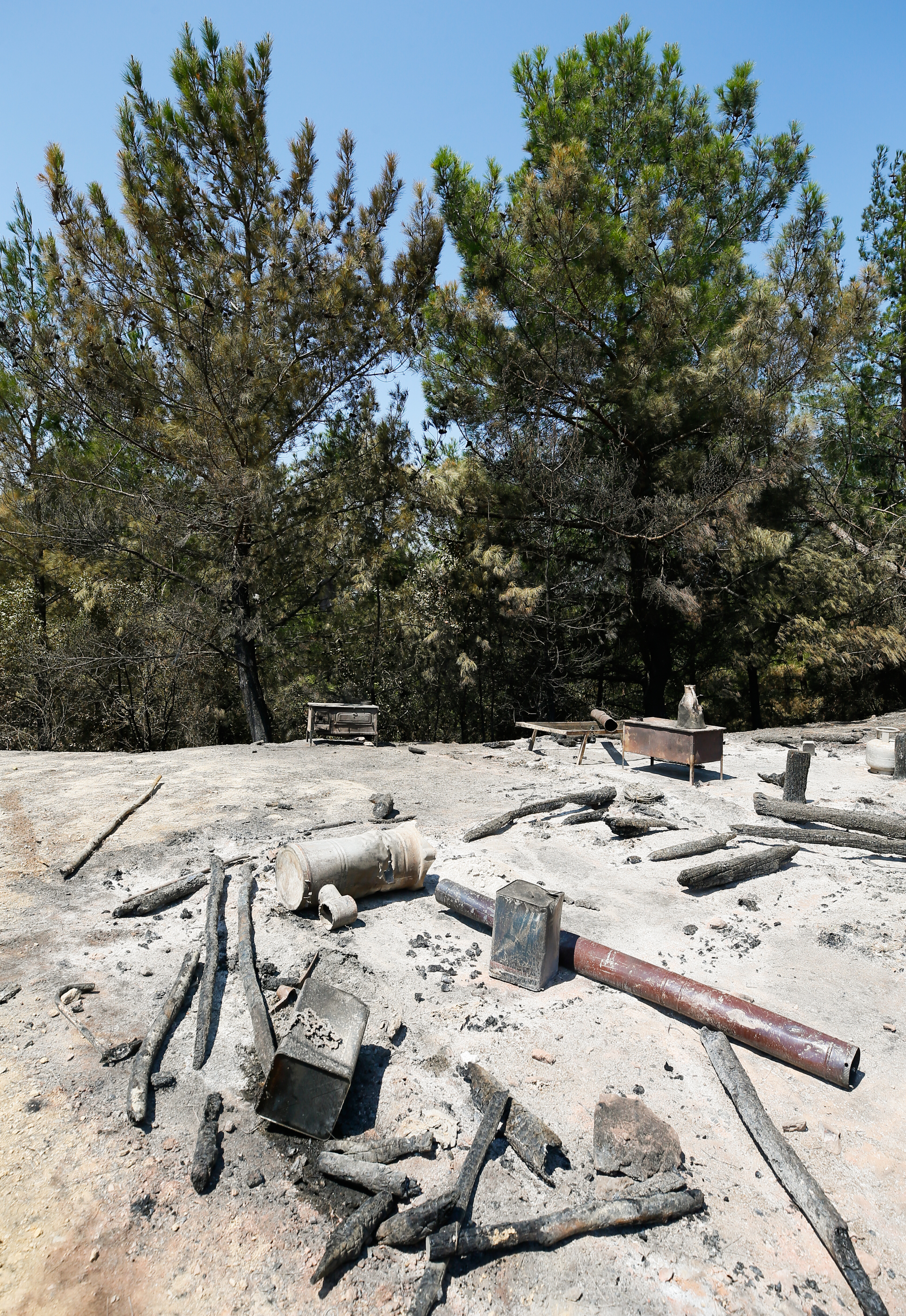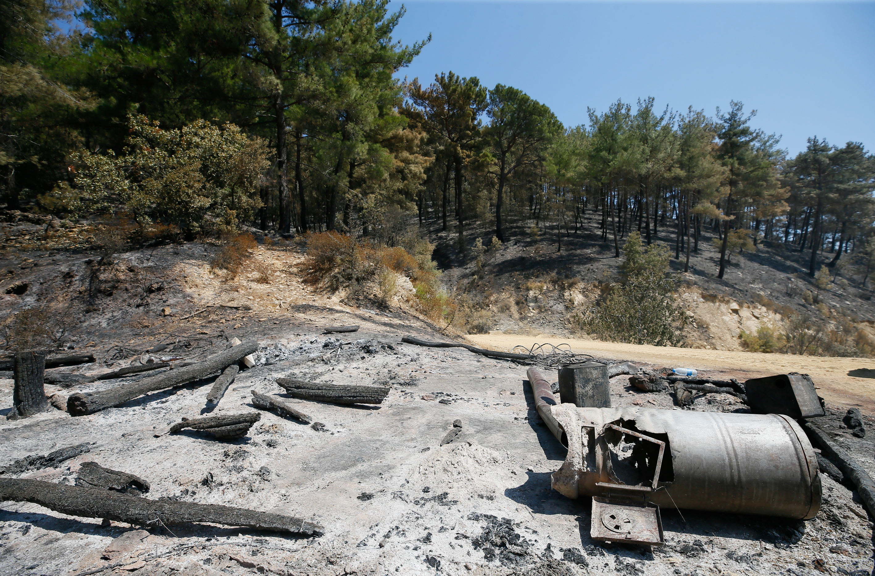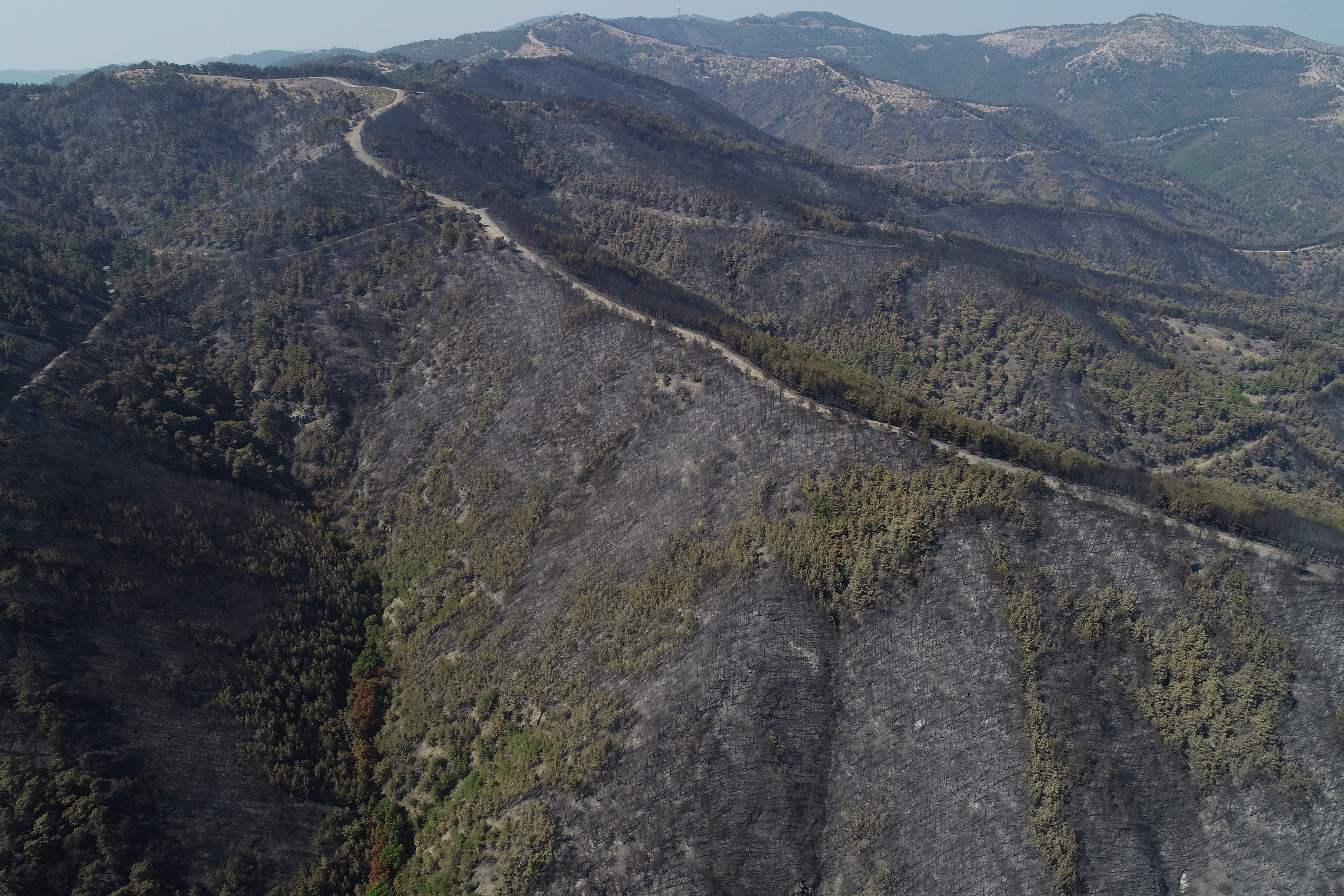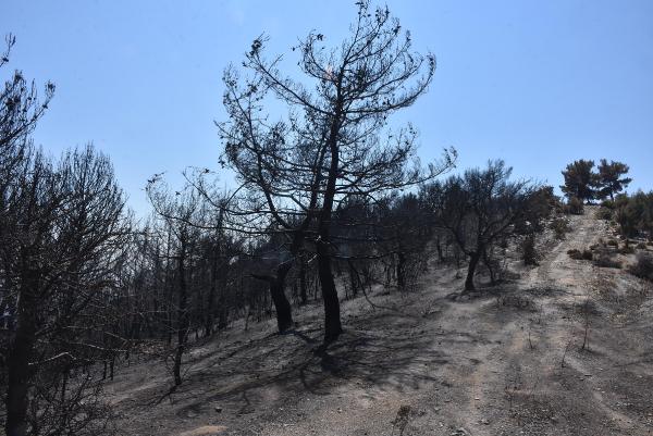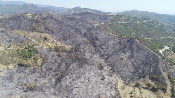 Bu arada 500 hektarlık alanda etkili olan yangında 50 yıllık çam ağaçları tamamen yanarken, geriye ise kapkara, acı bir tablo kaldı. Yanan alandaki yaban hayatı yok olurken, bazı üzüm bağları da zarar gördü. (DHA)