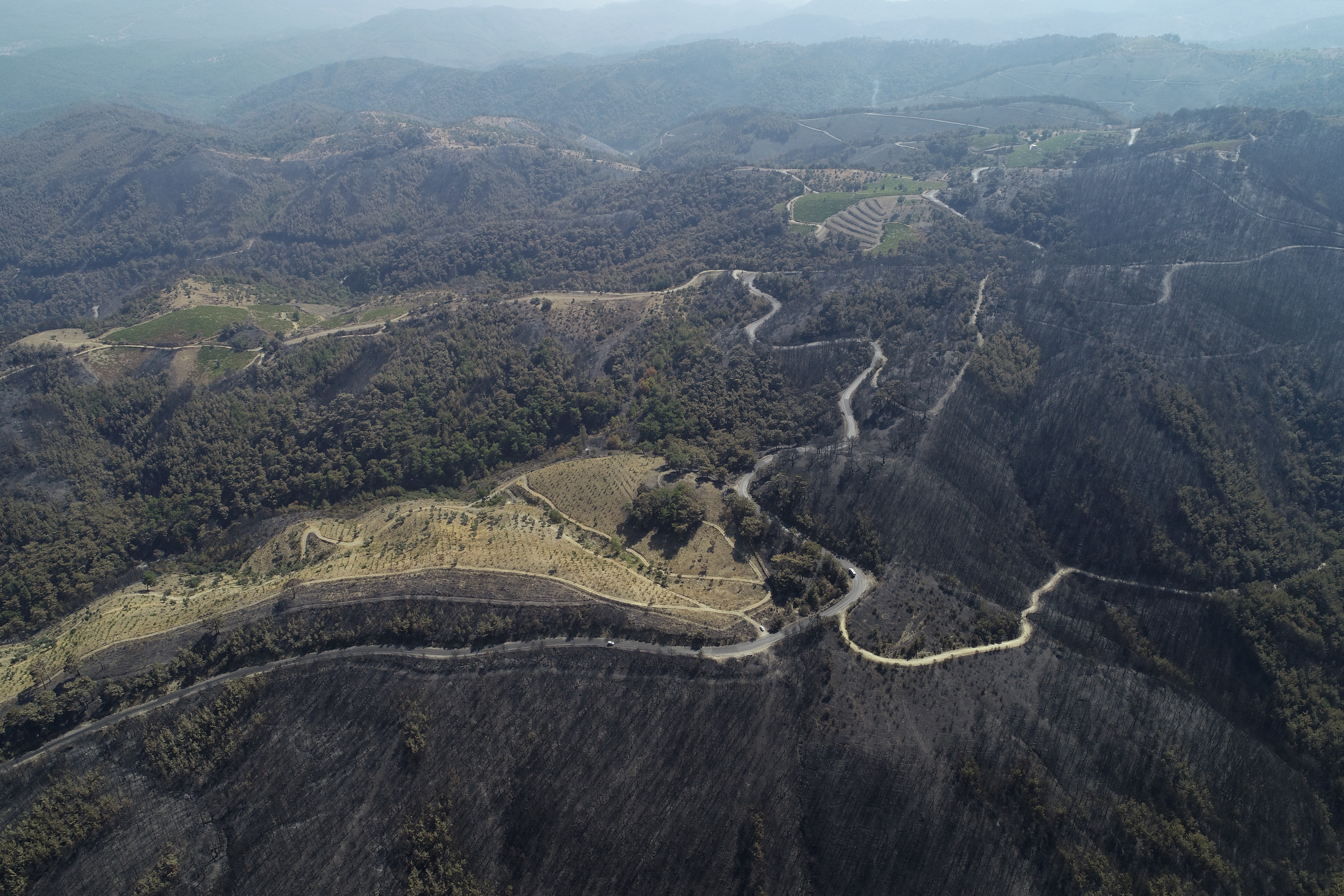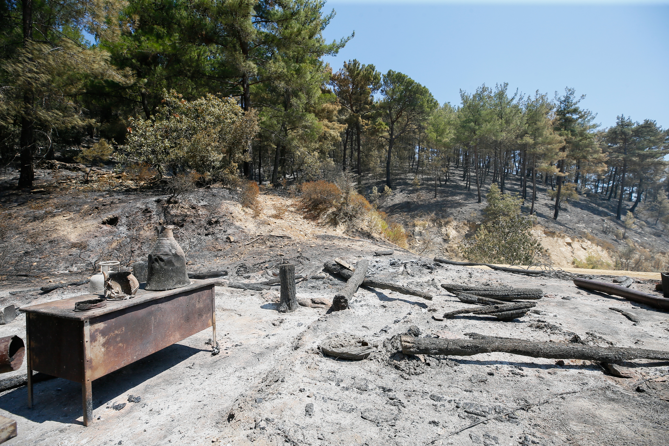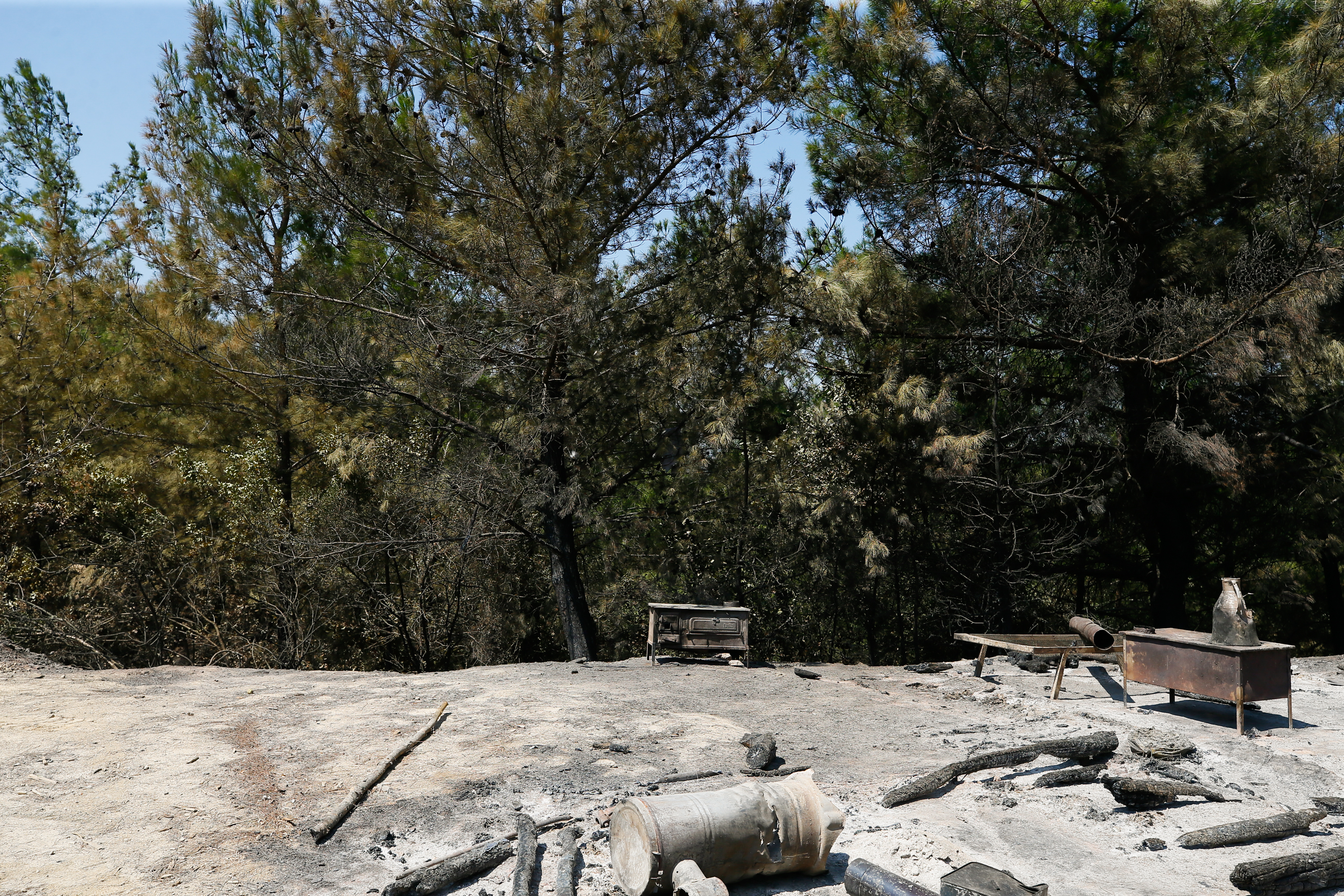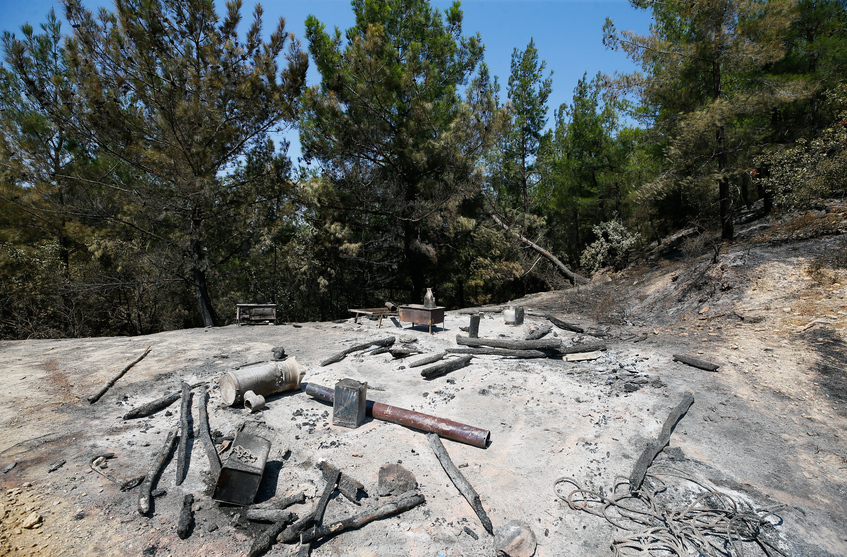 Bu arada 500 hektarlık alanda etkili olan yangında 50 yıllık çam ağaçları tamamen yanarken, geriye ise kapkara, acı bir tablo kaldı. Yanan alandaki yaban hayatı yok olurken, bazı üzüm bağları da zarar gördü. (DHA)