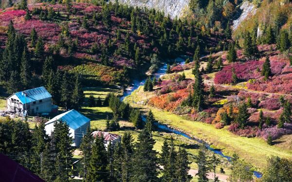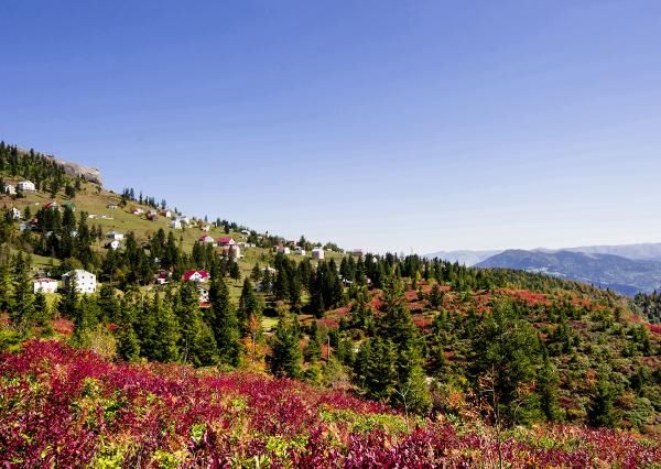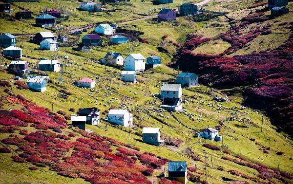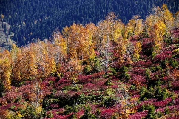 Trabzon'un Şalpazarı ilçesinde deniz seviyesinden 2 bin 100 metre yükseklikteki Sisdağı Yaylası’nda, sonbaharla birlikte yaylalarda ortaya çıkan birbirinden farklı renk tonları, görenleri hayran bırakıyor.