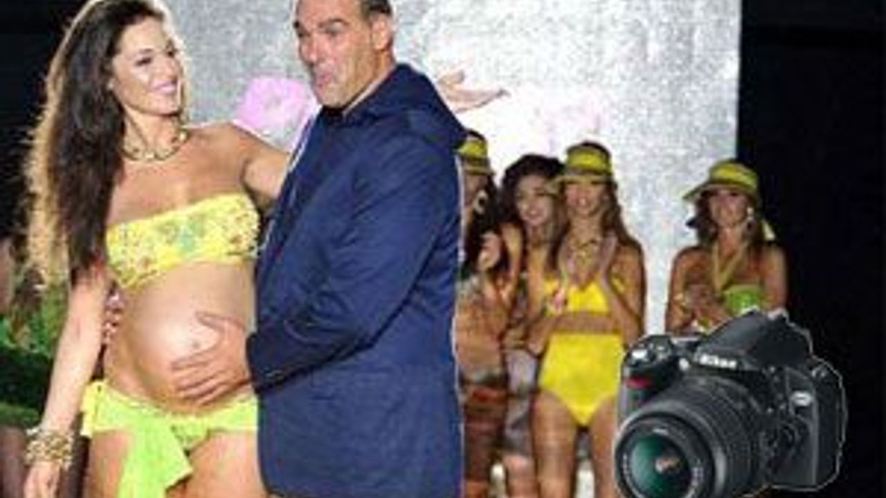 Altı aylık hamile olan Fico yüksek topuklu ayakkabılarının üstünde salına salına yürüyerek tanıtım yüzlerinden biri olduğu firmanın bikinilerini sergiledi.