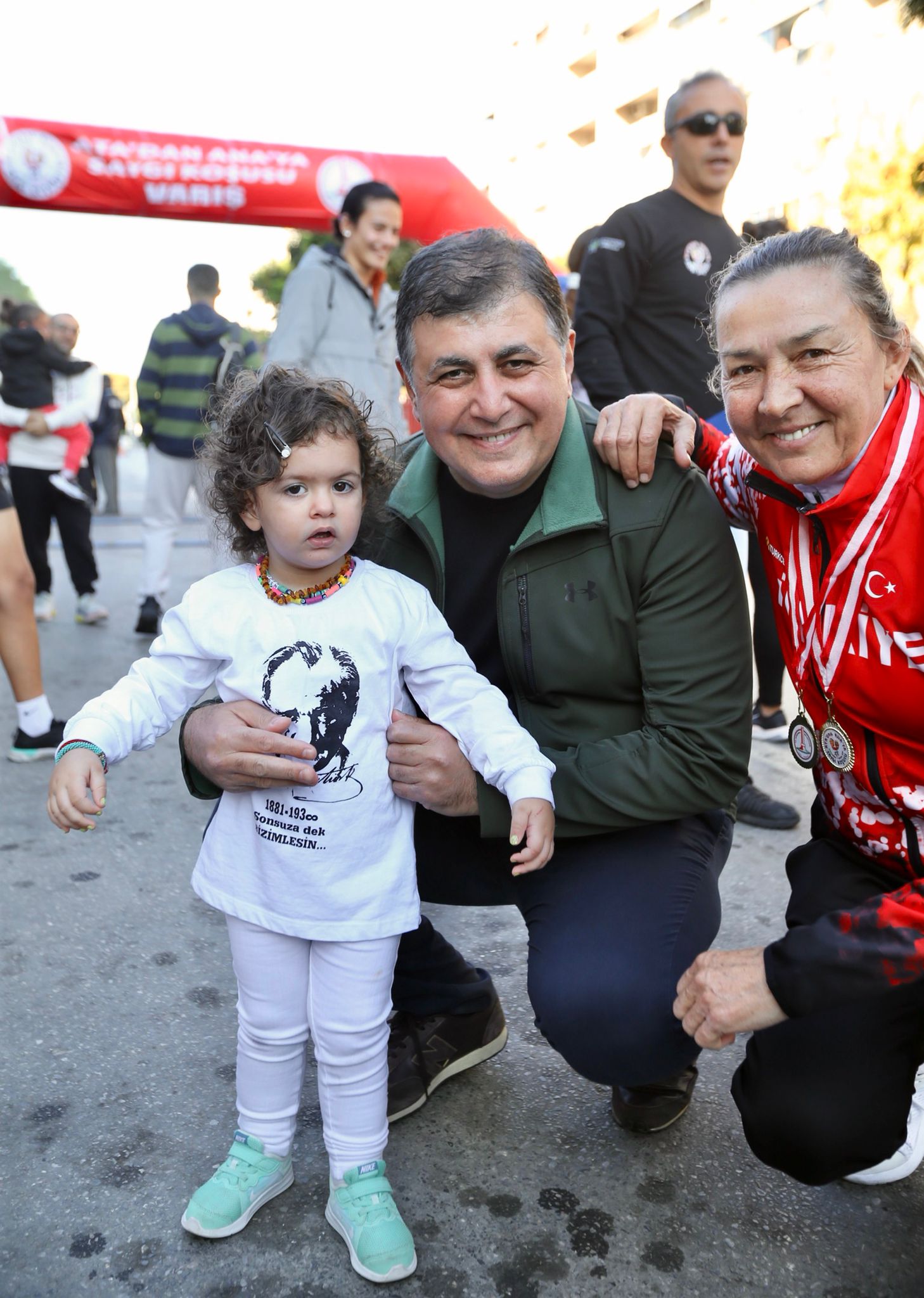 Karşıyaka Belediyesi tarafından, Ulu Önder Gazi Mustafa Kemal Atatürk’ün vefatının 83. yılı dolayısıyla düzenlenen Ata’dan Ana’ya Saygı Koşusu, bu sabah Anayasa Meydanı’ndan başladı. Koşunun startını Karşıyaka Belediye Başkanı Dr. Cemil Tugay, Başkan Yardımcısı Özlem Ceylan ve Hiltown Karşıyaka Alışveriş Merkezi Müdürü Hüseyin Koca verdi. Aralarında farklı kentlerden gelenlerin de bulunduğu, 10 ile 82 yaş arası 1250 kişinin katıldığı koşuda tekerlekli sandalyeli yarışmacılar da yer aldı. Pusetteki bebeğiyle ya da yanında köpeğiyle koşan katılımcılar da renkli görüntüler oluşturdu.