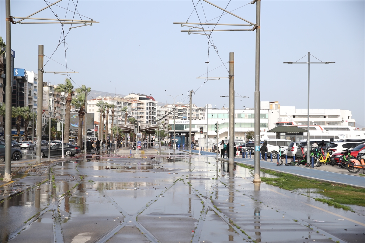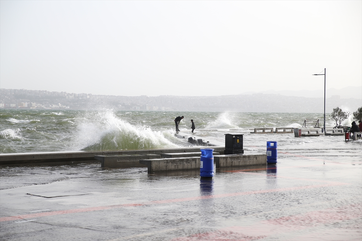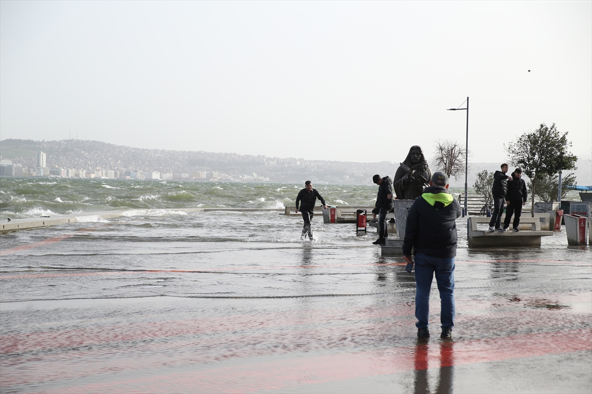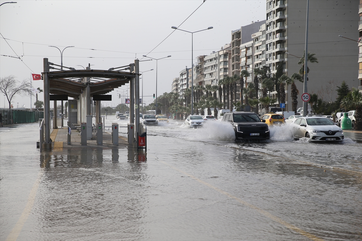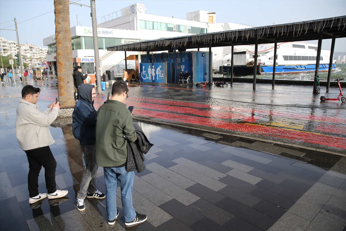 İzmir'in Karşıyaka ve Konak ilçelerinde etkili olan kuvvetli fırtına denizin taşmasına neden olurken, yollar su altında kaldı. Karşıya Vapur İskelesi, Zübeyde Hanım Nikah Sarayı ile Karşıyaka Spor Kulübü Yelken Şube arasındaki bölgede deniz taşması nedeniyle araçlar yolda ilerlemekte güçlük çekti.