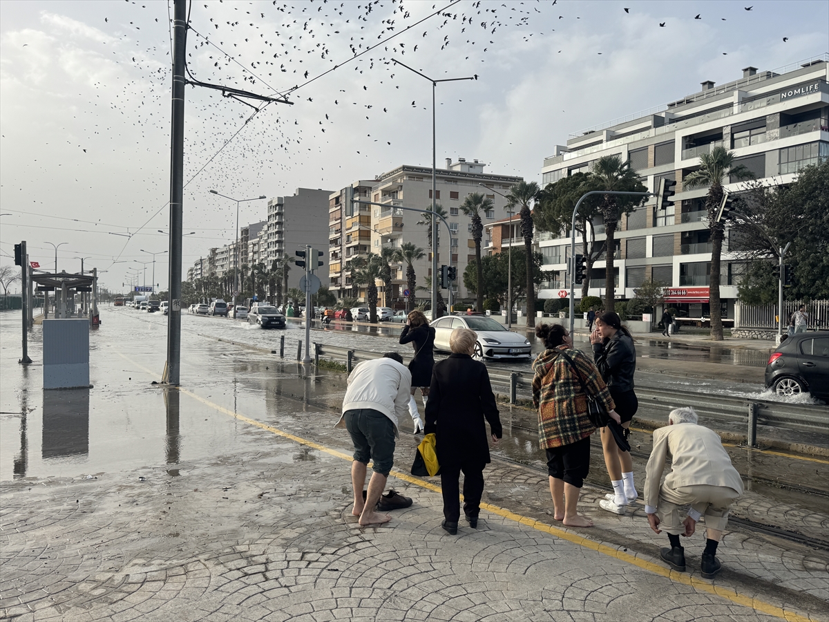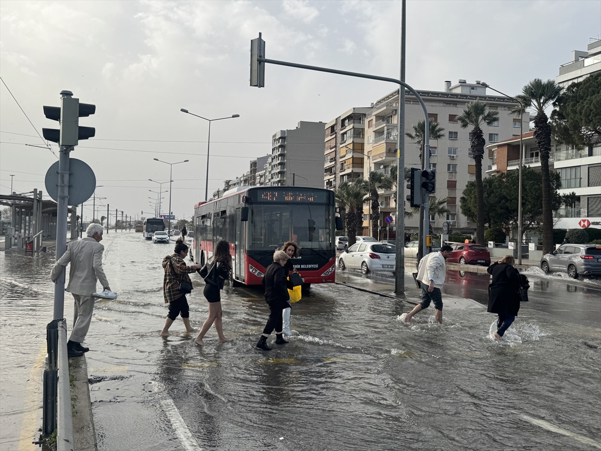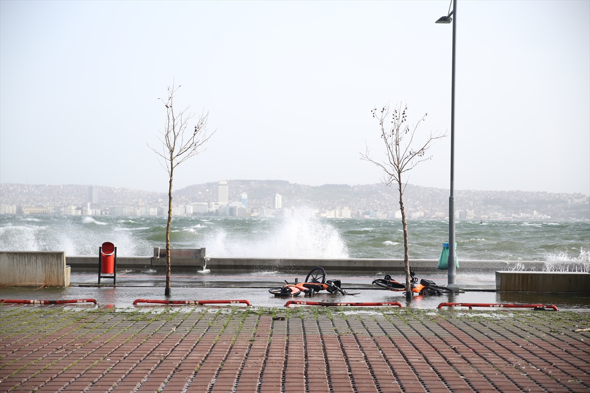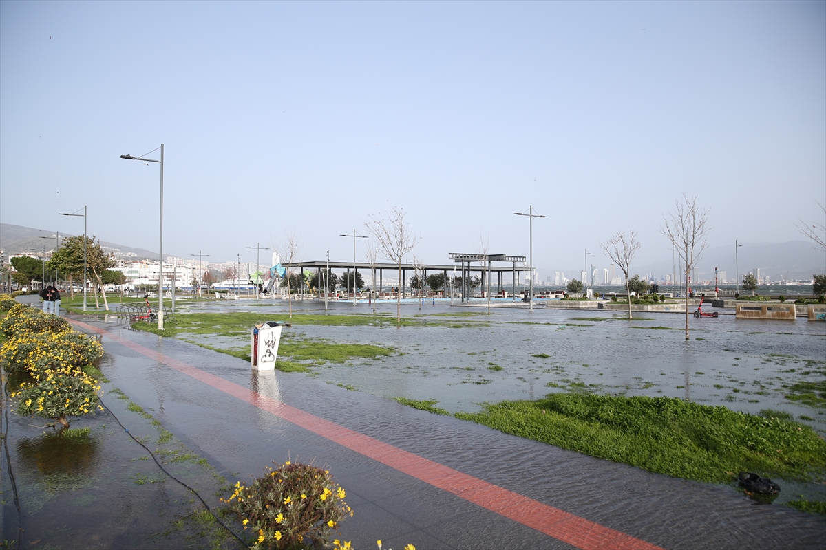 İzmir'in Karşıyaka ve Konak ilçelerinde etkili olan kuvvetli fırtına denizin taşmasına neden olurken, yollar su altında kaldı. Karşıya Vapur İskelesi, Zübeyde Hanım Nikah Sarayı ile Karşıyaka Spor Kulübü Yelken Şube arasındaki bölgede deniz taşması nedeniyle araçlar yolda ilerlemekte güçlük çekti.