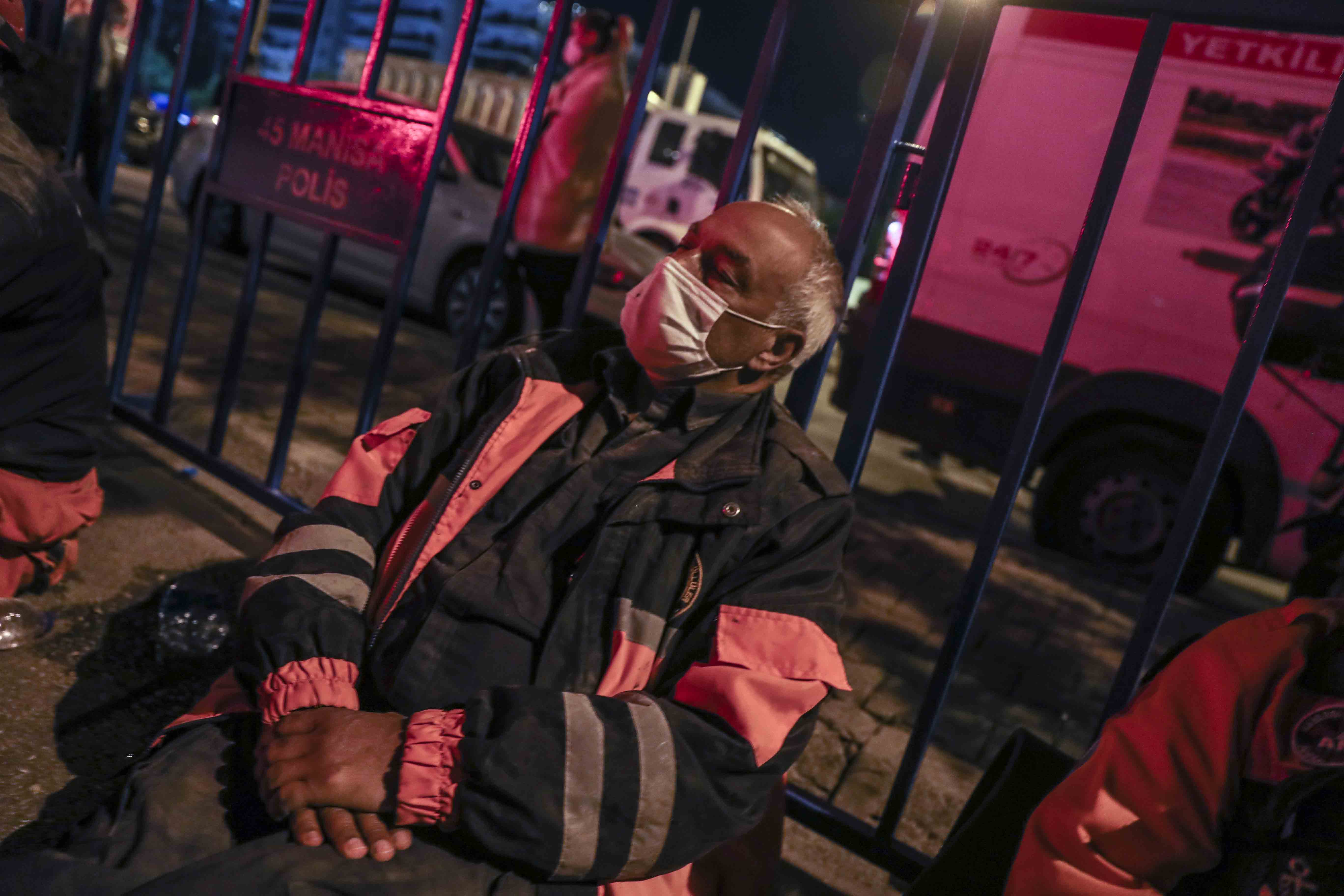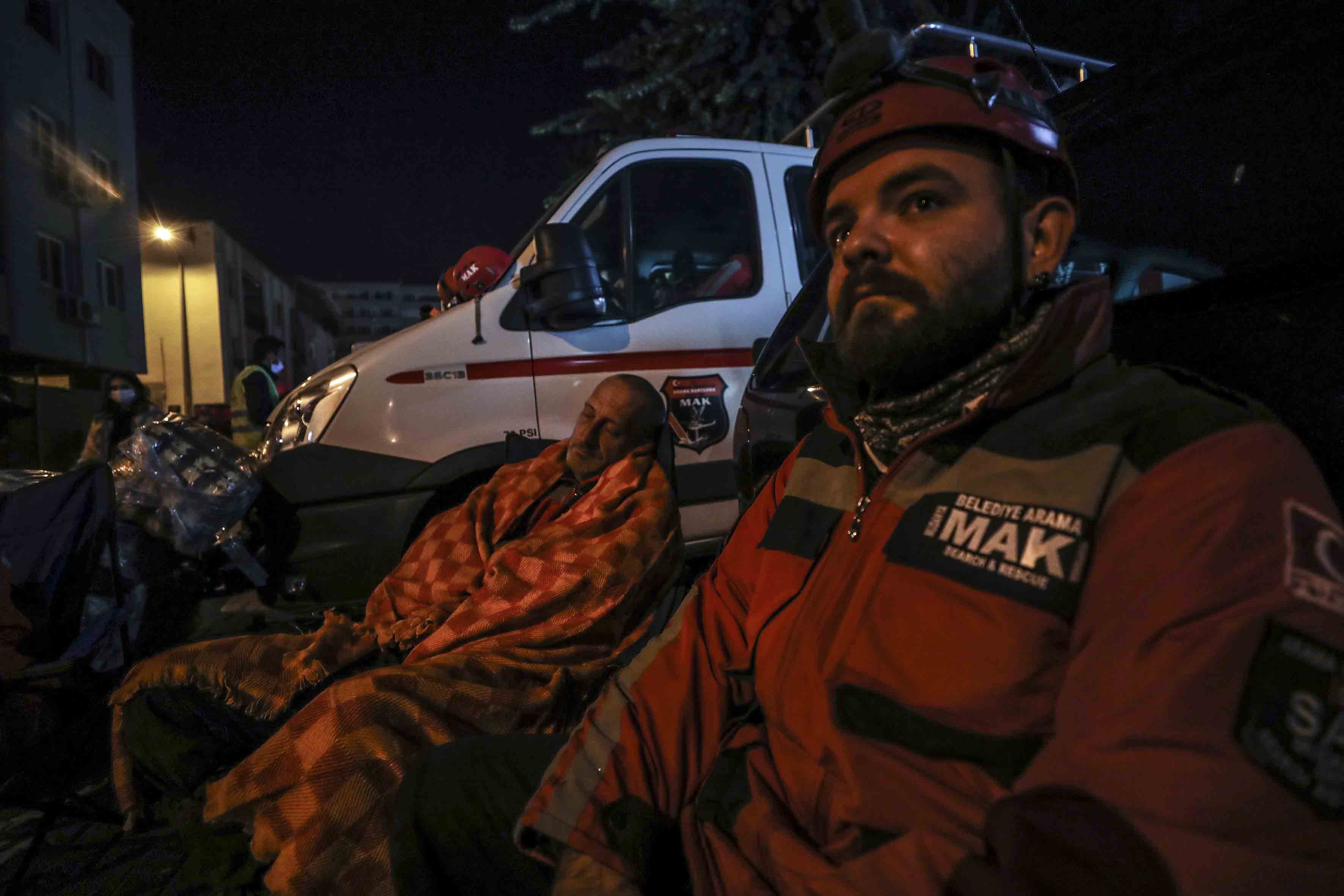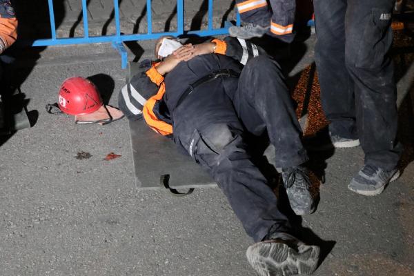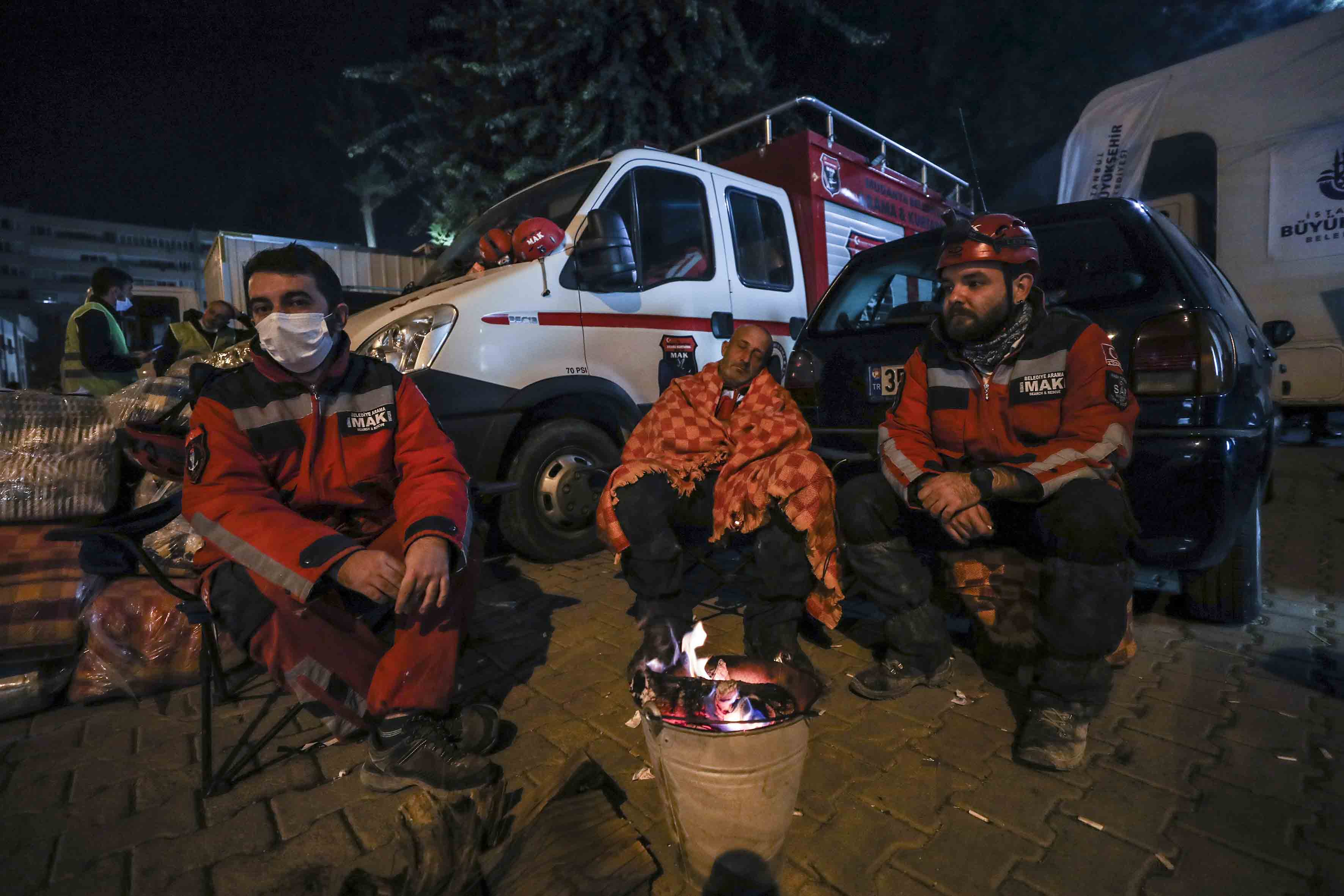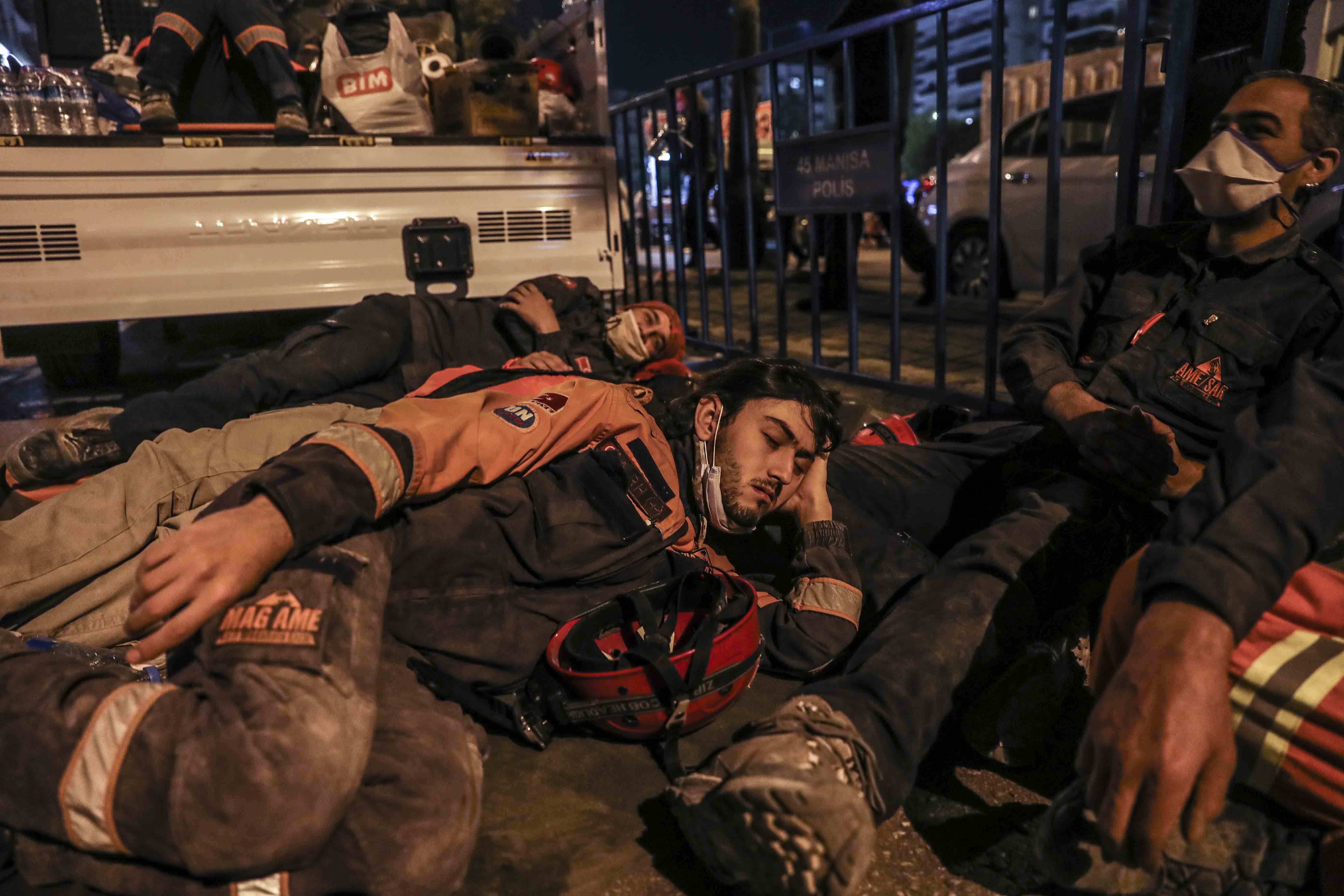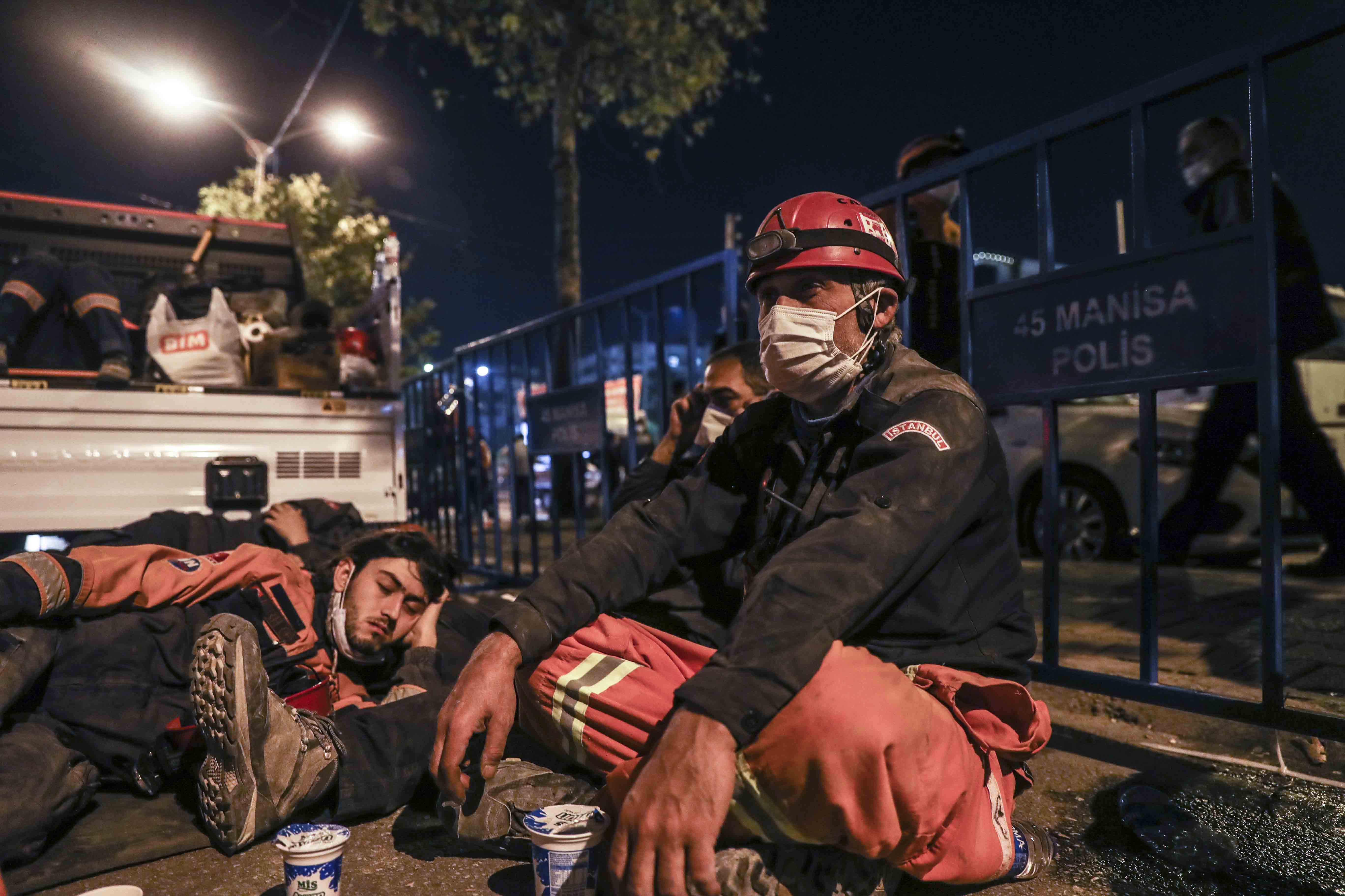 Dönüşümlü olarak çalışan ekipler, arama kurtarma faaliyetlerinin sürdüğü alanda dinlenmeye çalışıyor.