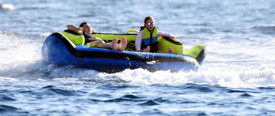 İbragimov, eşiyle botla cennet koyları dolaşırken; çocukları ise denizin ortasında kurulan su parkında eğlendi.