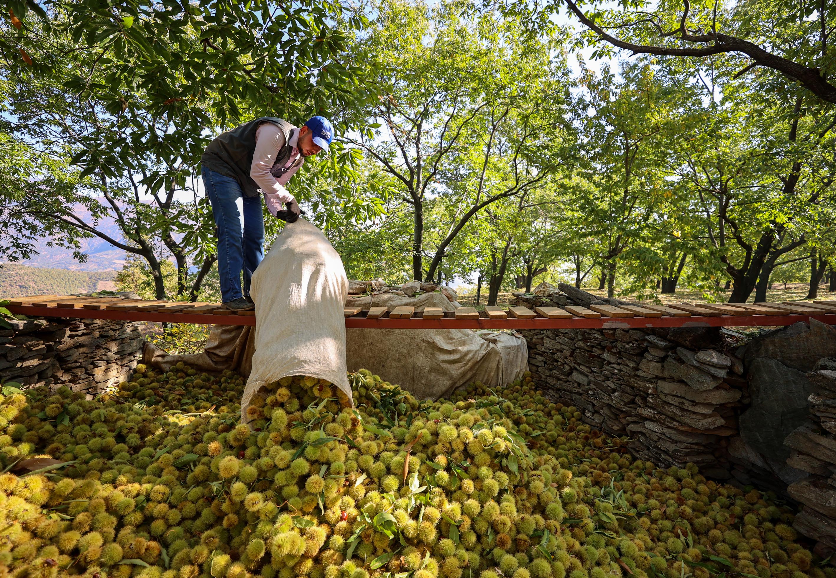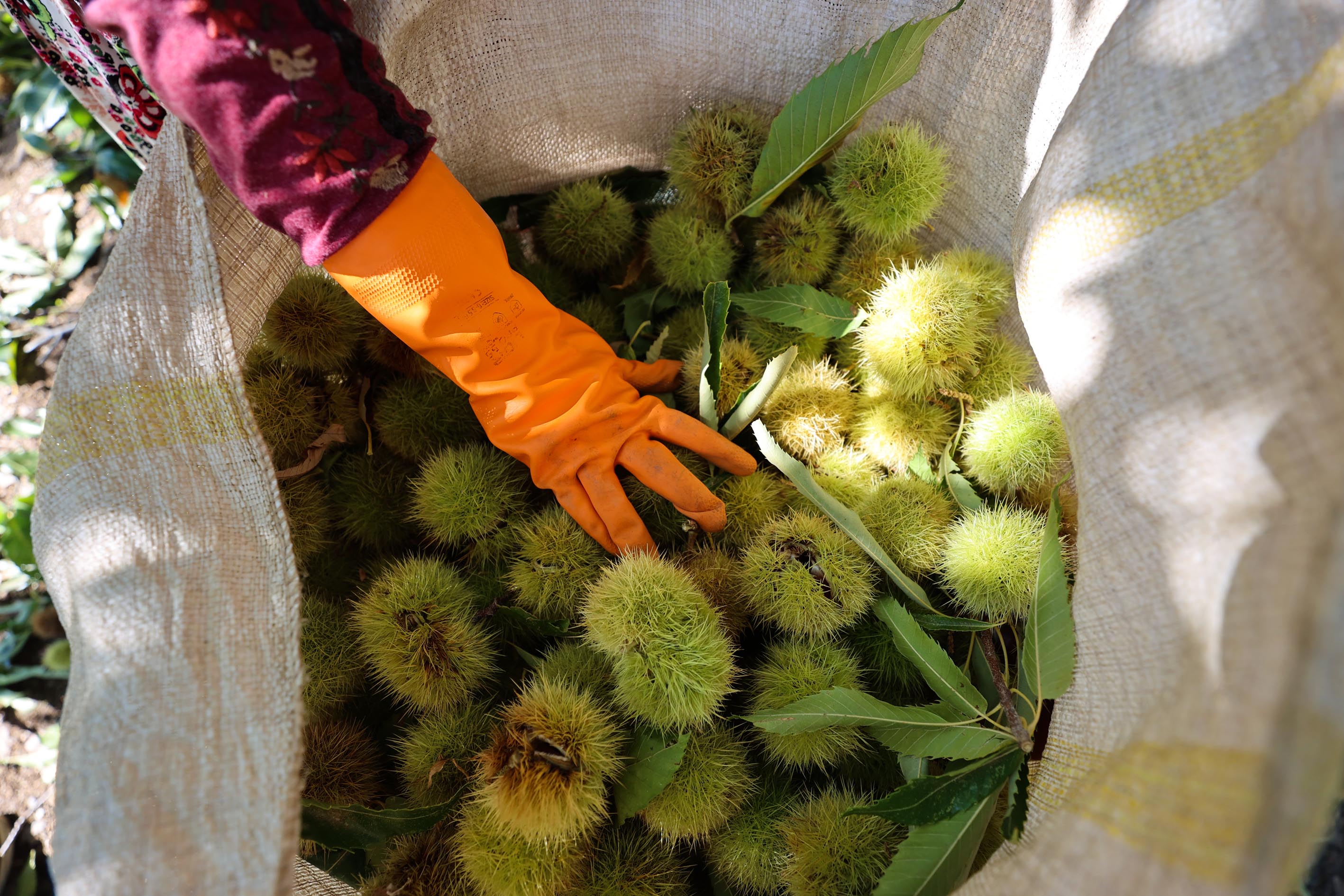 "Hasatların en zoru ve ağırı kestanedir. Ağaçtan düşüp beli kırılanlar, dikenli kestanenin gözüne gelmesinden dolayı kör olanlar bile var. Hatta ölümlere kadar yol açan bir mahsul. Kuraklıktan dolayı etkilendik ama son zamanlardaki yağıştan dolayı toparladık. Rekolte bir miktar düşük ama kalitesinde herhangi bir sorun yok."