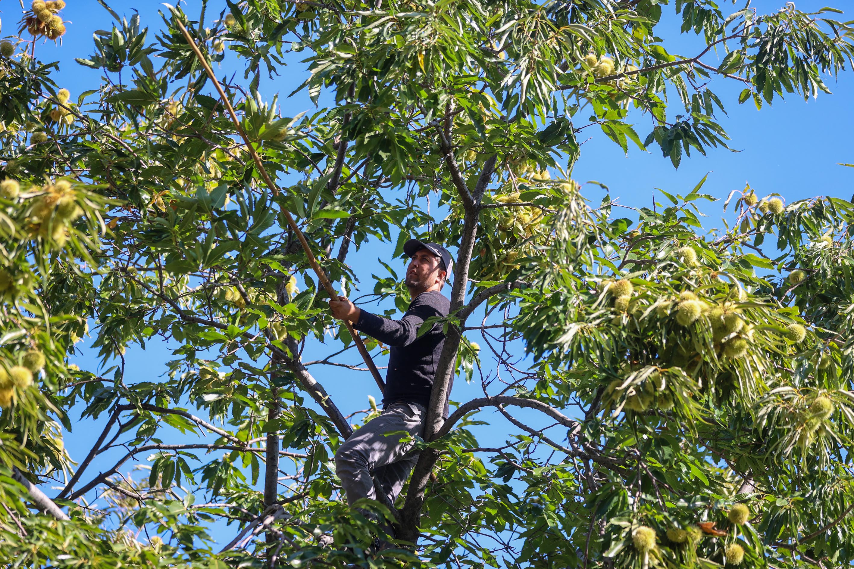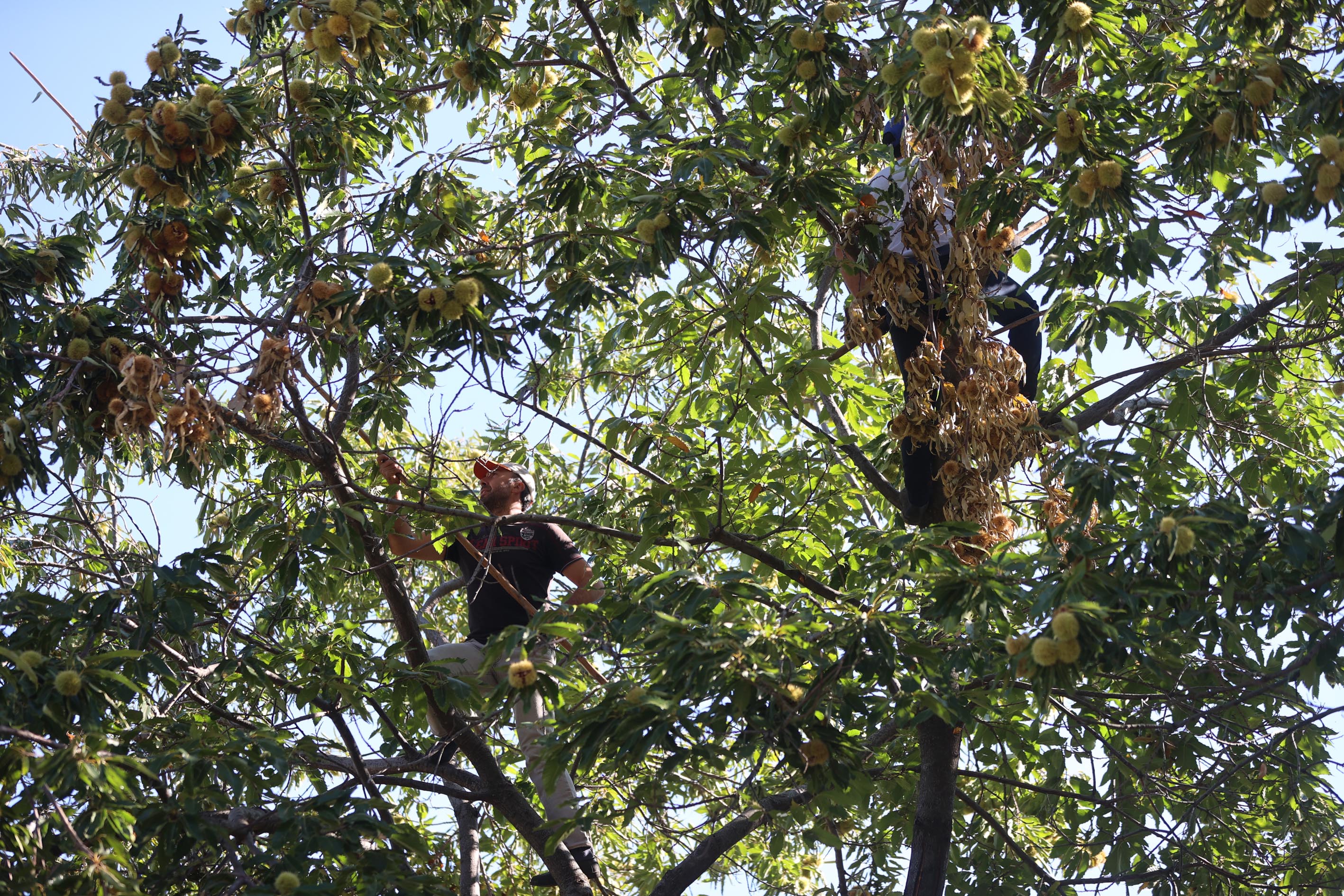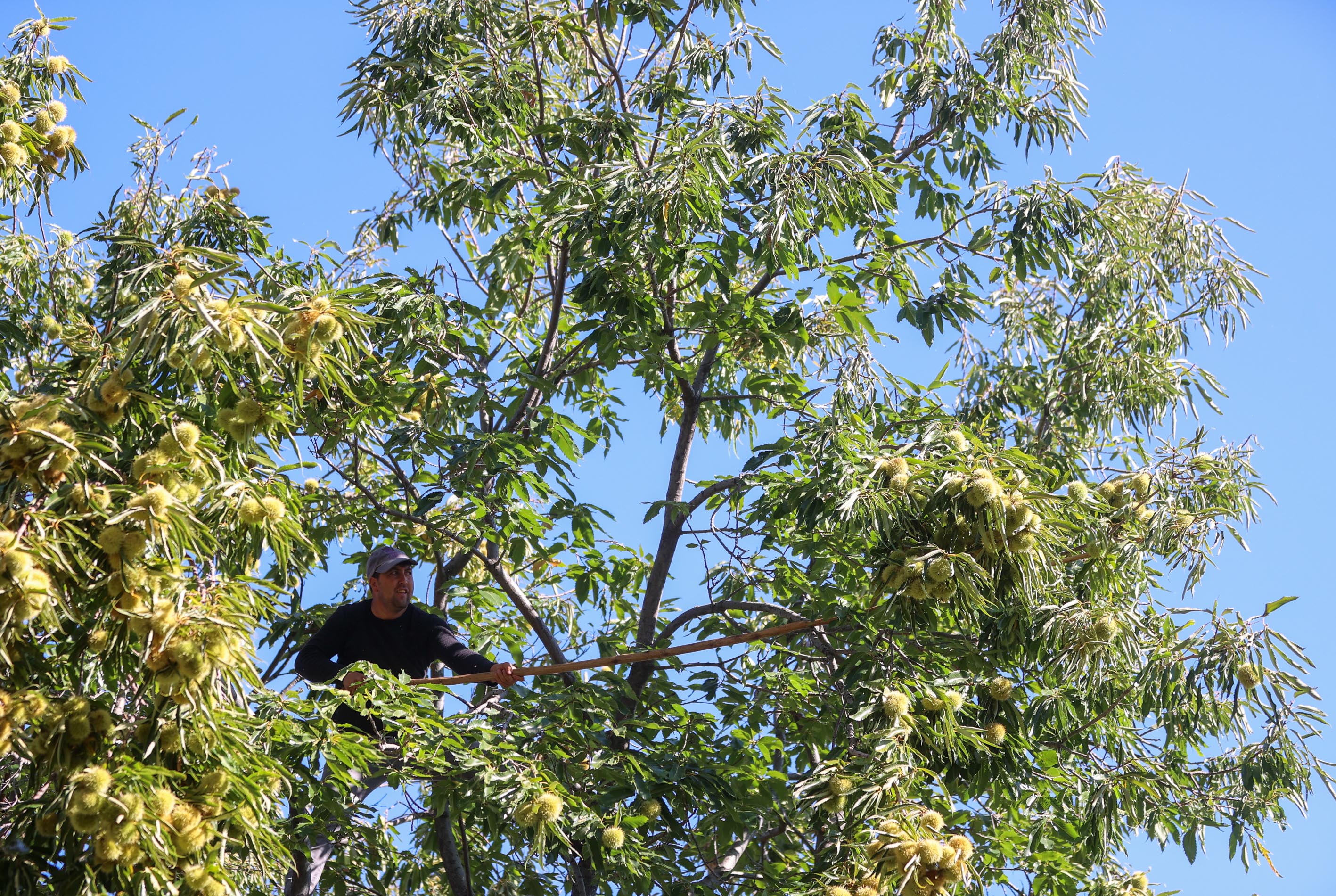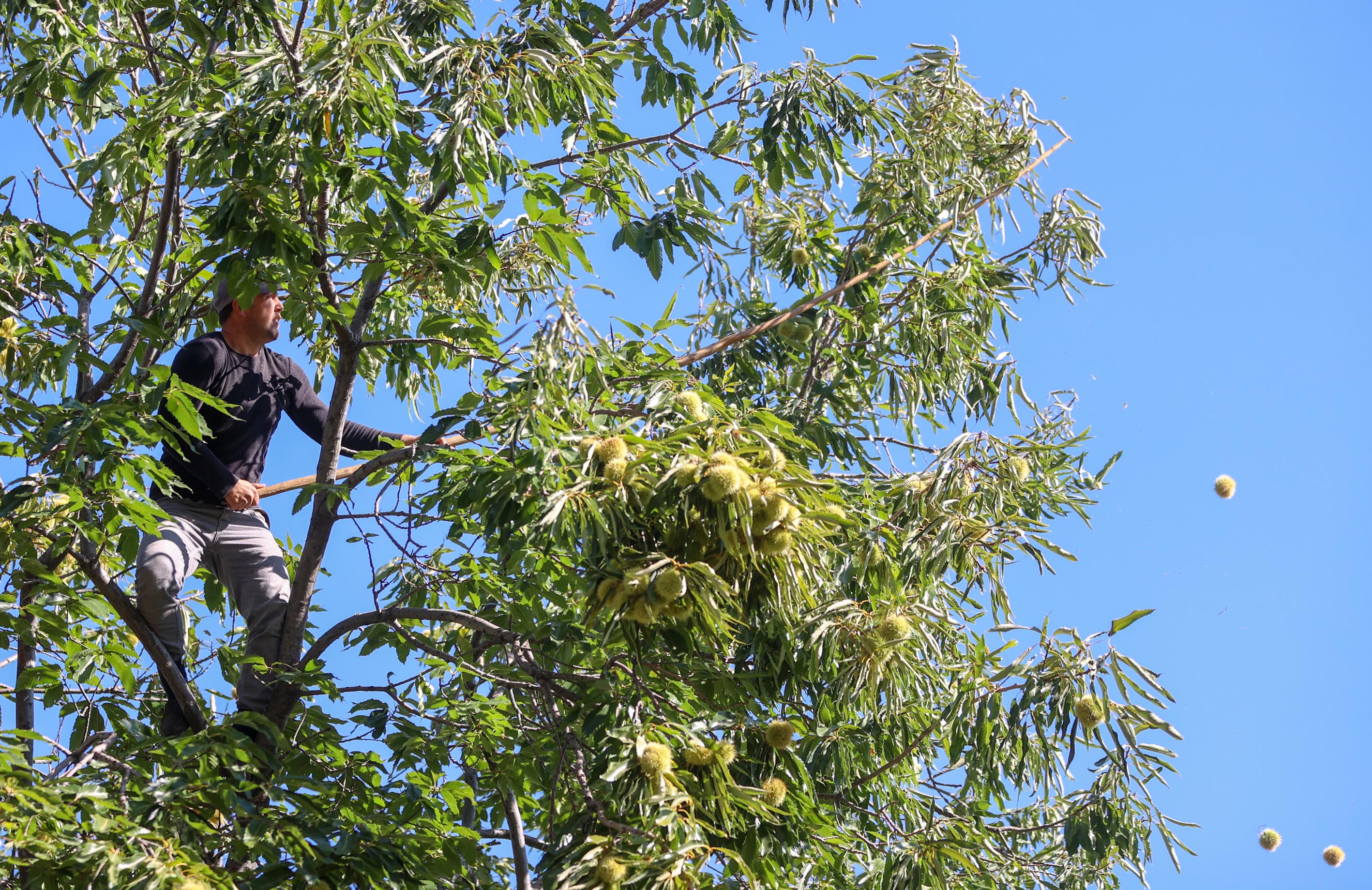 Coğrafi işaret tesciliyle korunan Aydın kestanesinde hasat, zorluğu ve tehlikeleriyle dikkati çekiyor.