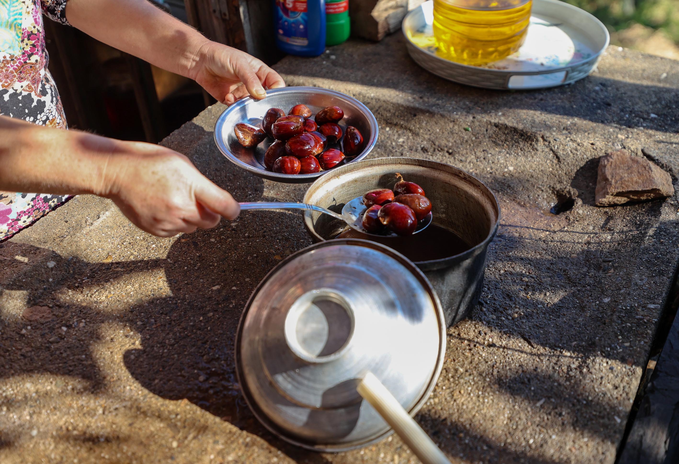 Kadınların 50 kilogramlık çuvallara doldurduğu kestaneler daha sonra erkek işçiler tarafından kuyulara boşaltılıyor. Dikenlerinin çürümesi için yaklaşık 1 ay kuyuda bekletilen kestaneler, makineyle ayıklanıp sofralara hazır hale getiriliyor.