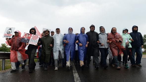 Adalet yürüyüşüne katılanların ayaklarında yürüyüş sırasında yaralar oluştu.