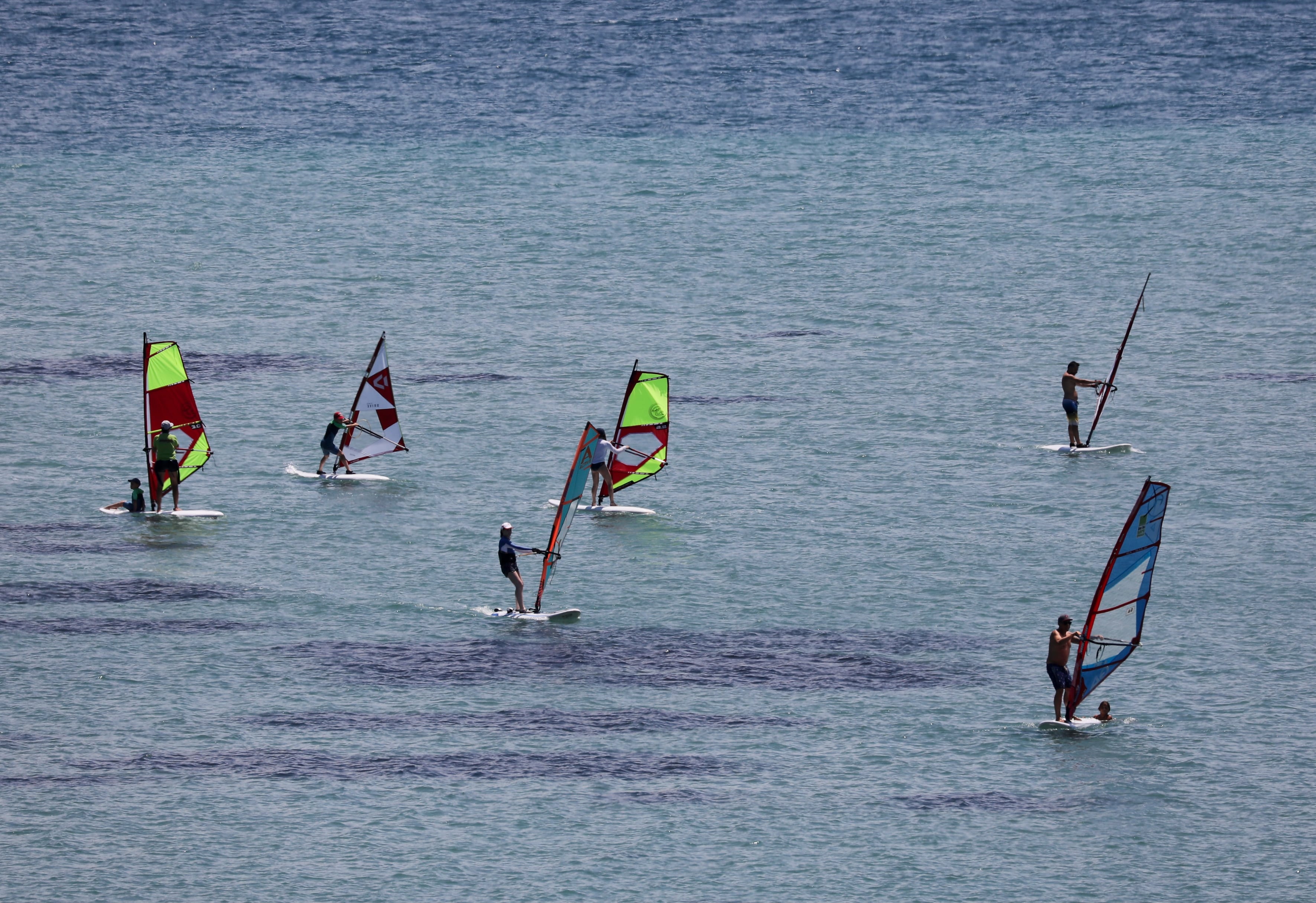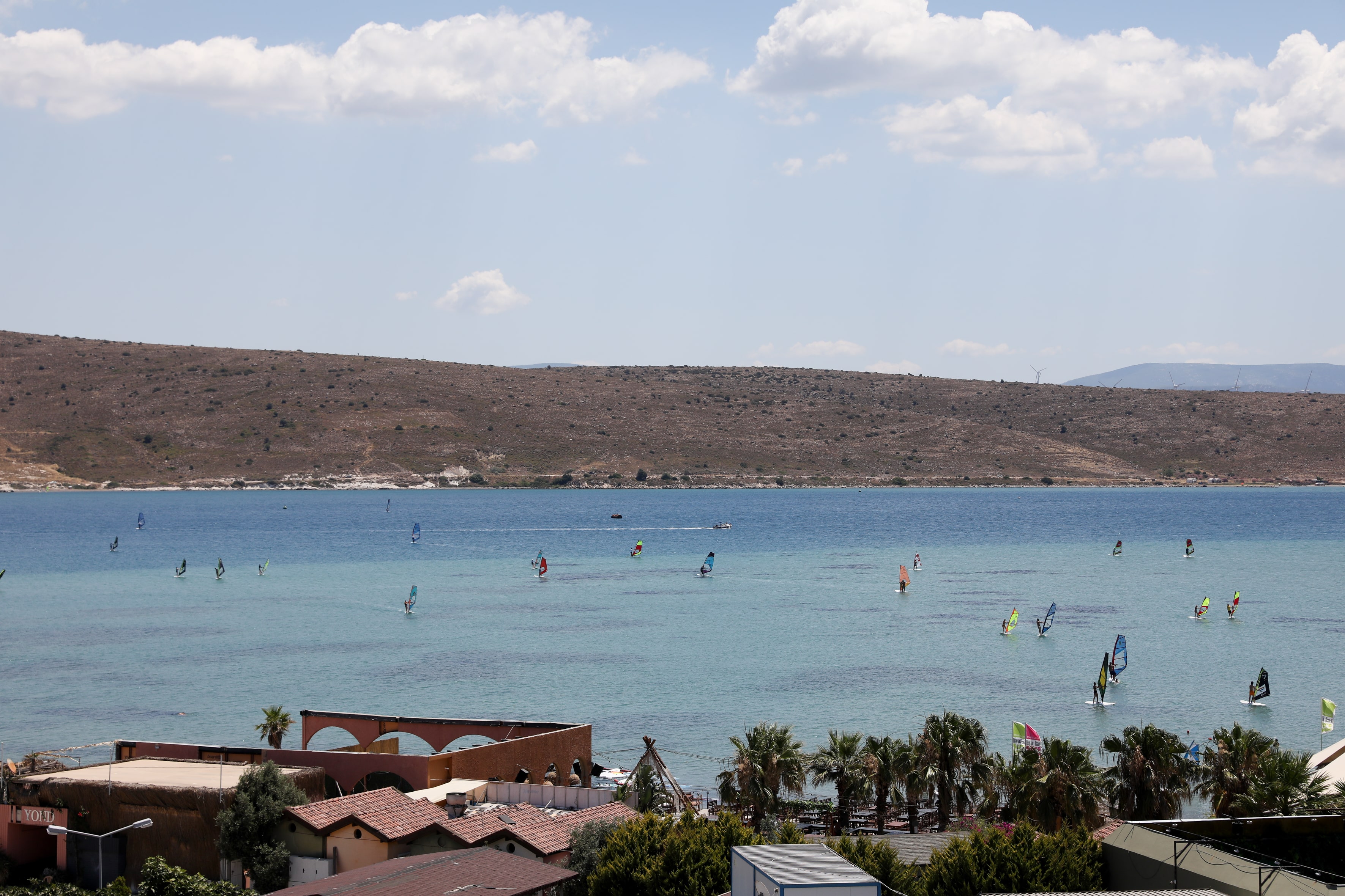 Öte yandan Kovid-19 sürecinde deniz ve rüzgardan uzak kalan sörf tutkunları Alaçatı'da sörfün tadını yaşadı.