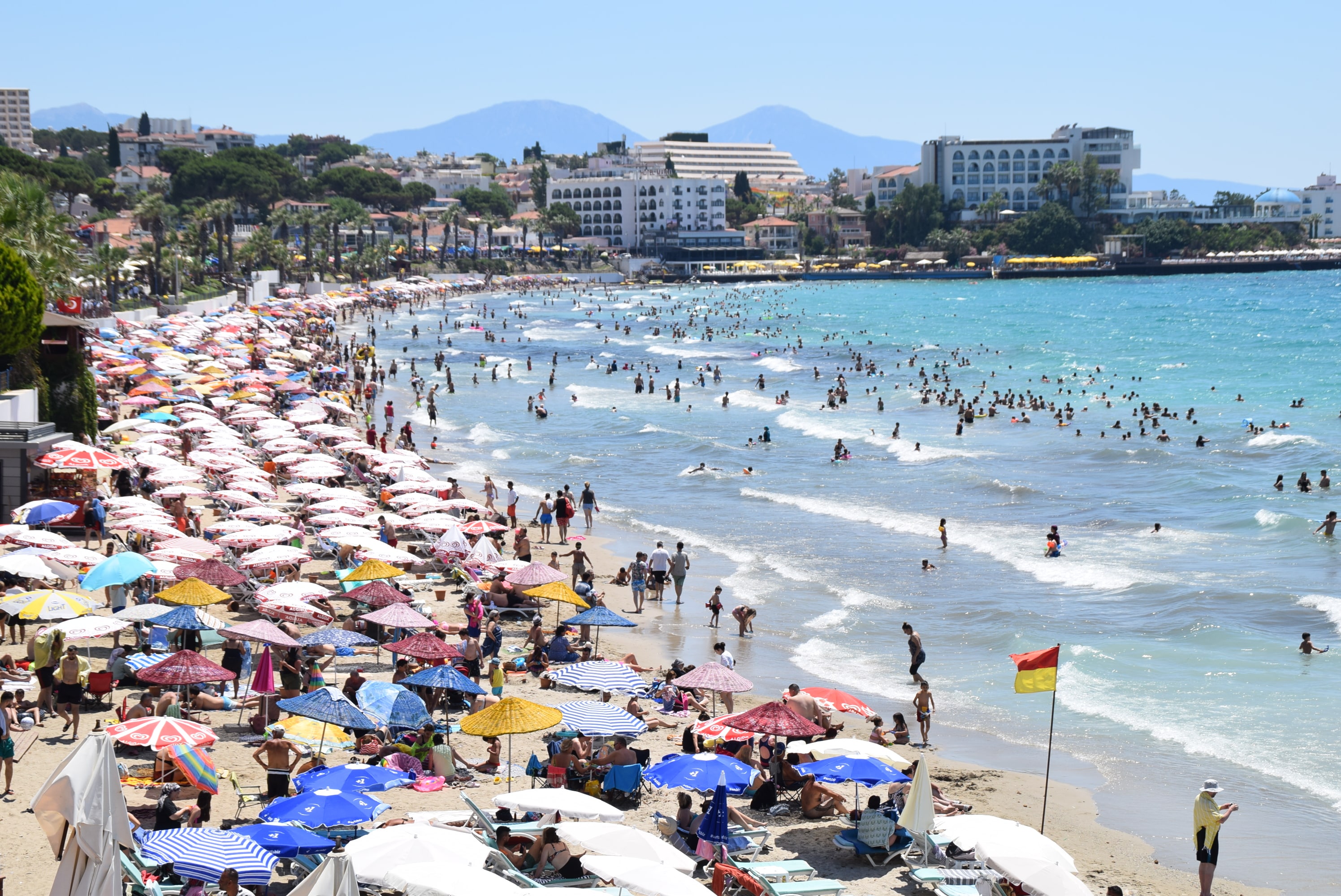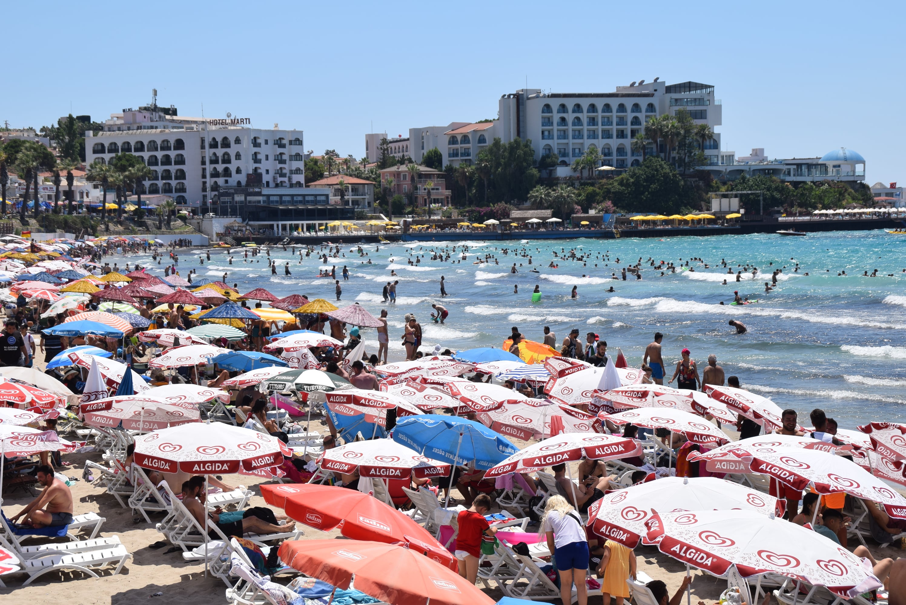 Plajların önemli ölçüde dolduğu ilçede araç trafiğindeki yoğunluk da dikkati çekti.