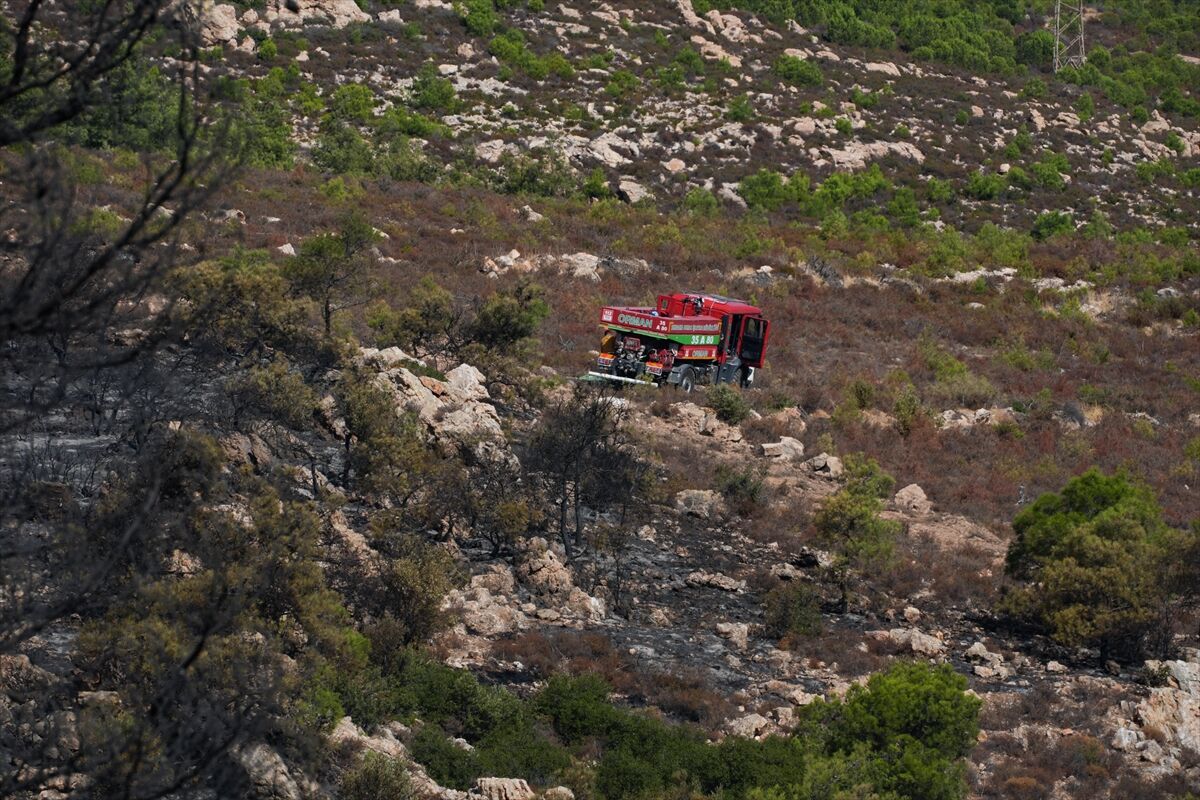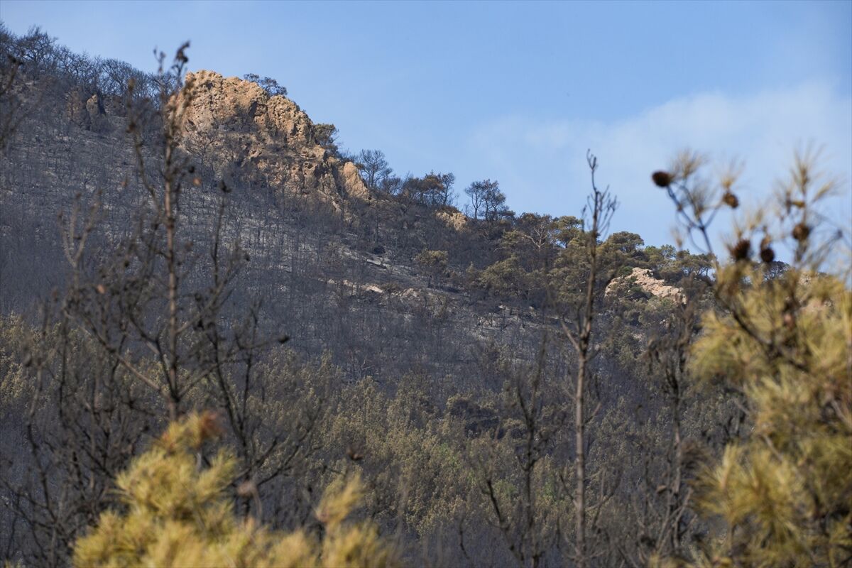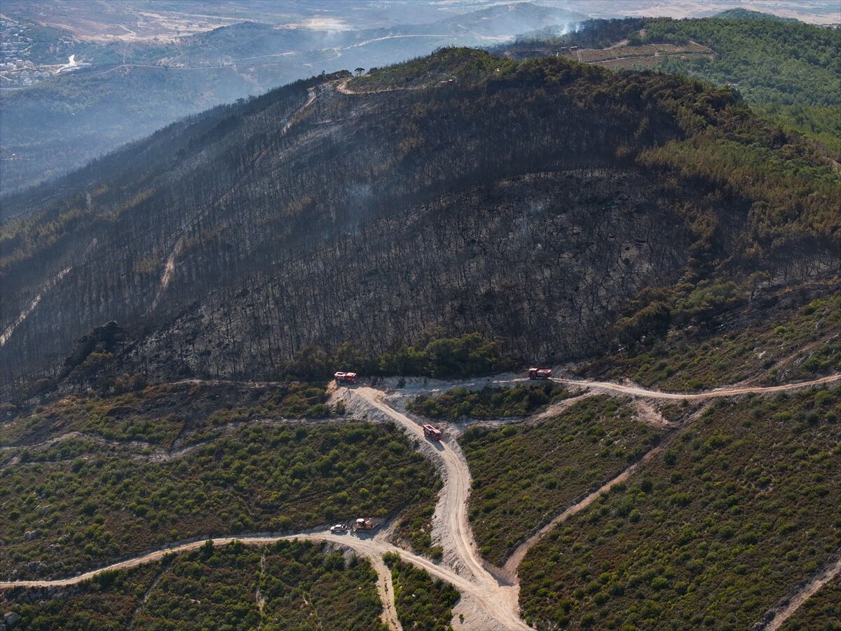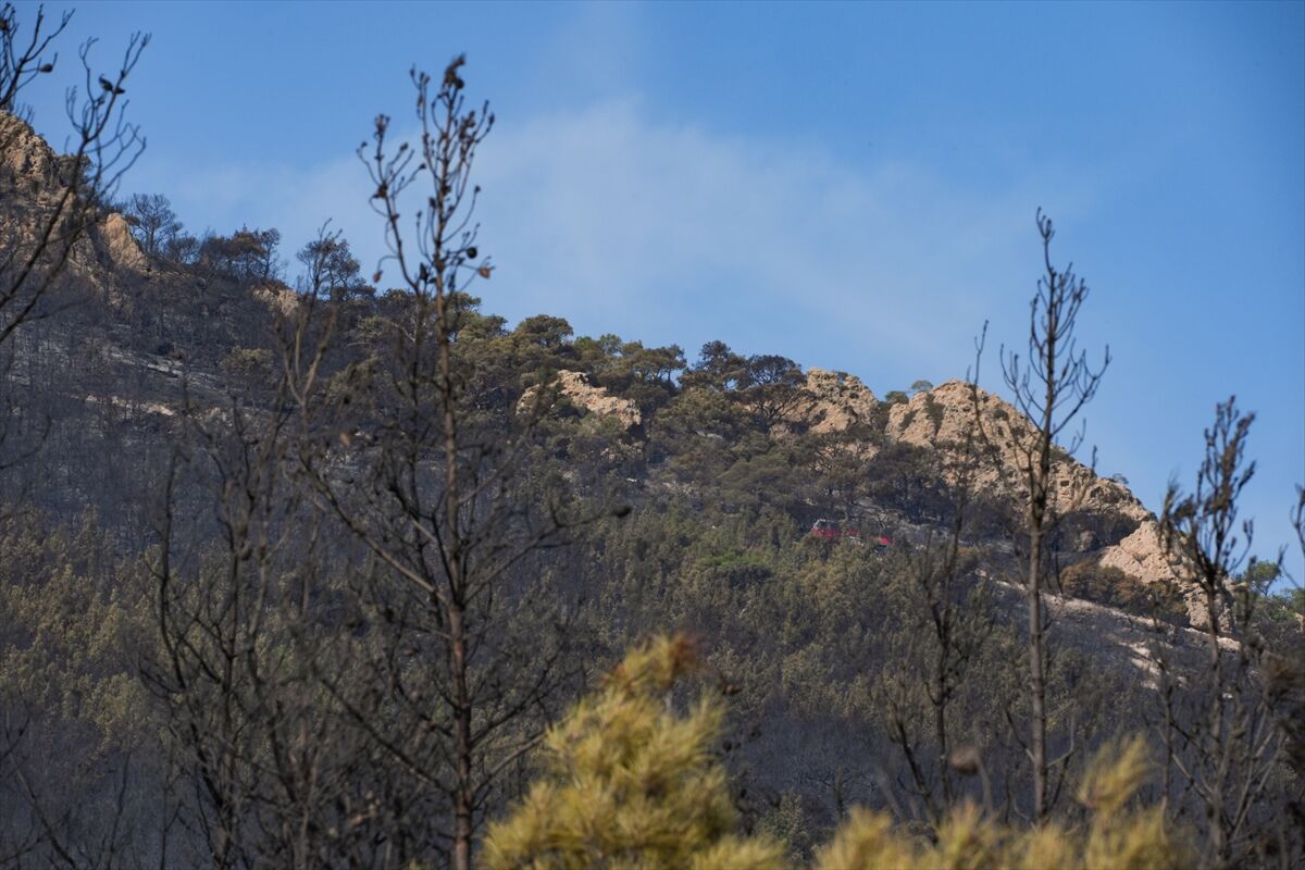 Orman Bölge Müdürlüğü ve İzmir İtfaiyesi ekiplerinin soğutma çalışmalarını sürdürdüğü yangında yaklaşık 340 hektar arazinin hasar gördüğü belirlendi.