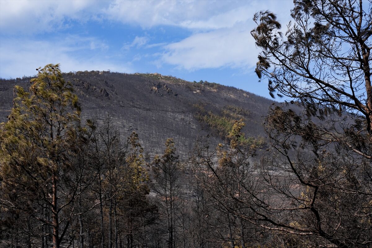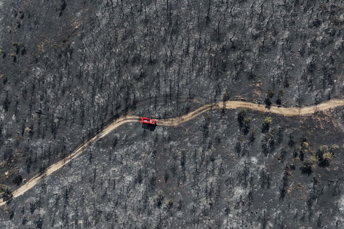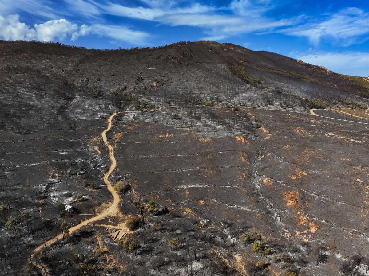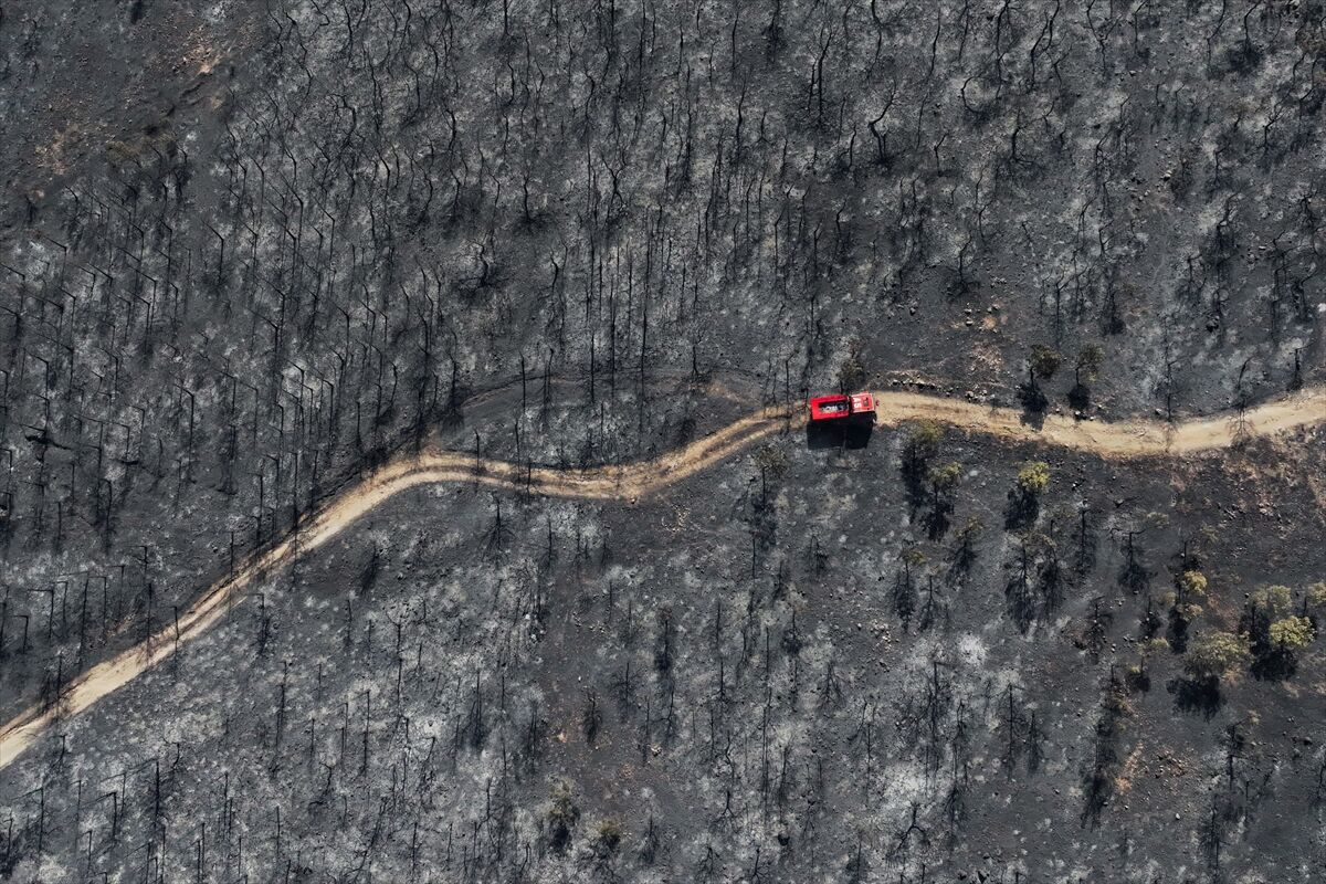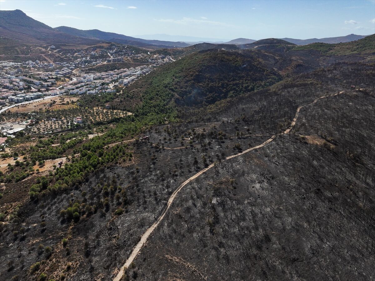 İzmir'in Foça ilçesinde dün çöplükte başlayarak ormana sıçrayan, yoğun müdahale ile kontrol altına alınan yangında büyük bölümü kızılçam ormanı olan 340 hektar arazi, siyah ve gri tonlarına büründü.