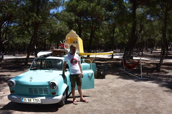 İzmirli oto elektrik ustası Mehmet Ardil (35), Doğu Almanya üretimi klasik otomobilden çekme karavan yaptı. Öndeki çekici otomobili de aynı araç olan karavan ilgi gördü. Ardil, koronavirüs salgını döneminde karavanıyla izole tatil yapmanın rahatlığını yaşadığını söyledi.