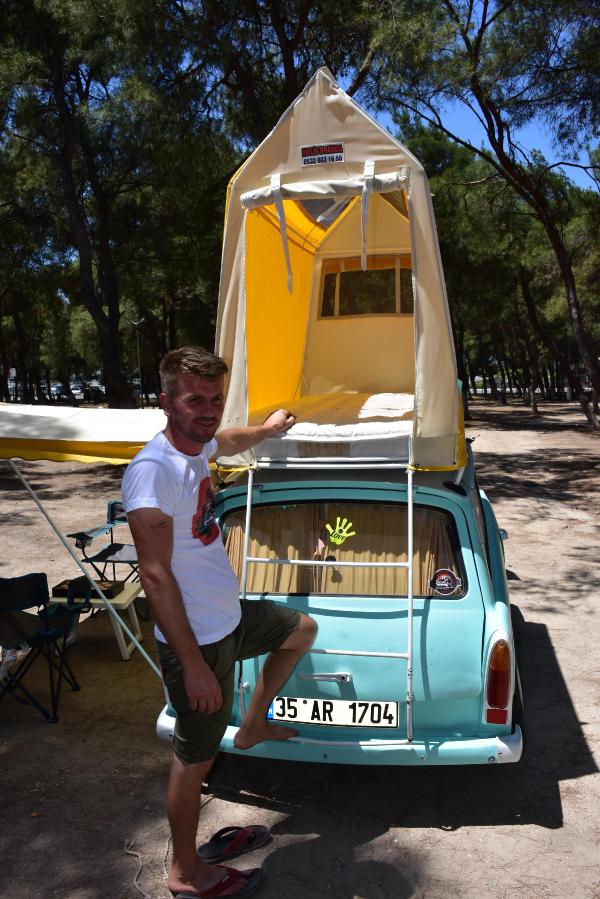 Oto elektrik ustası Mehmet Ardil'in yaptığı karavan, ilgi çekti. Ardil, çok sevdiği klasik otomobili hem çekici hem de arkasına taktığı çekme karavanda kullandı. Karavanın ayrıca üstüne yerleştirdiği çadırla, ek yatak alanı daha ekledi. Araziye kurulduğunda ev rahatlığı veren karavan, beğeni gördü. Ardil, şunları söyledi: