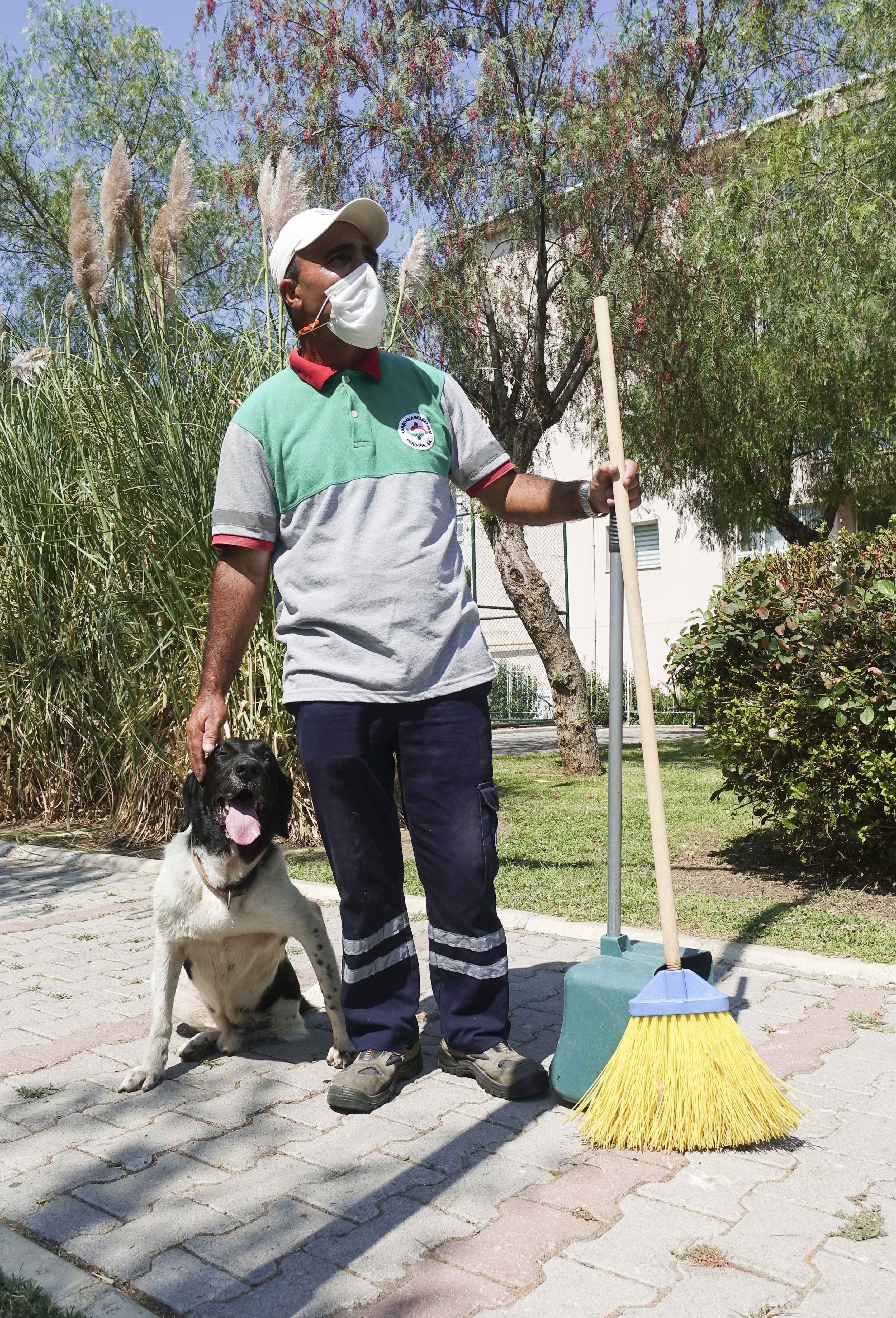 Karşıyaka Belediyesi yetkilileri de sokak köpeği ve temizlik işçisinin dostluğunun, bölgede yaşayanların sevgi ve saygısını kazandığını aktardı. (AA)